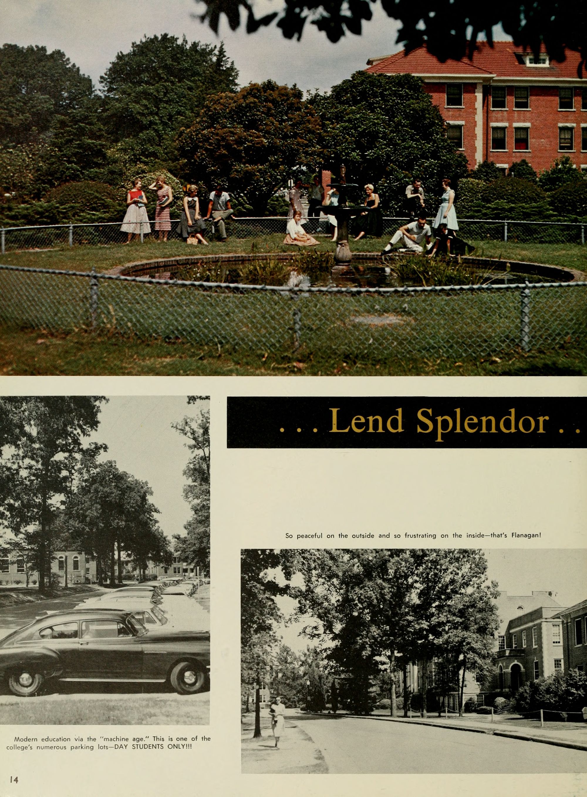 Modern education via the "machine age." This is one of the college's numerous parking lots-DAY STUDENTS ONLY!!!