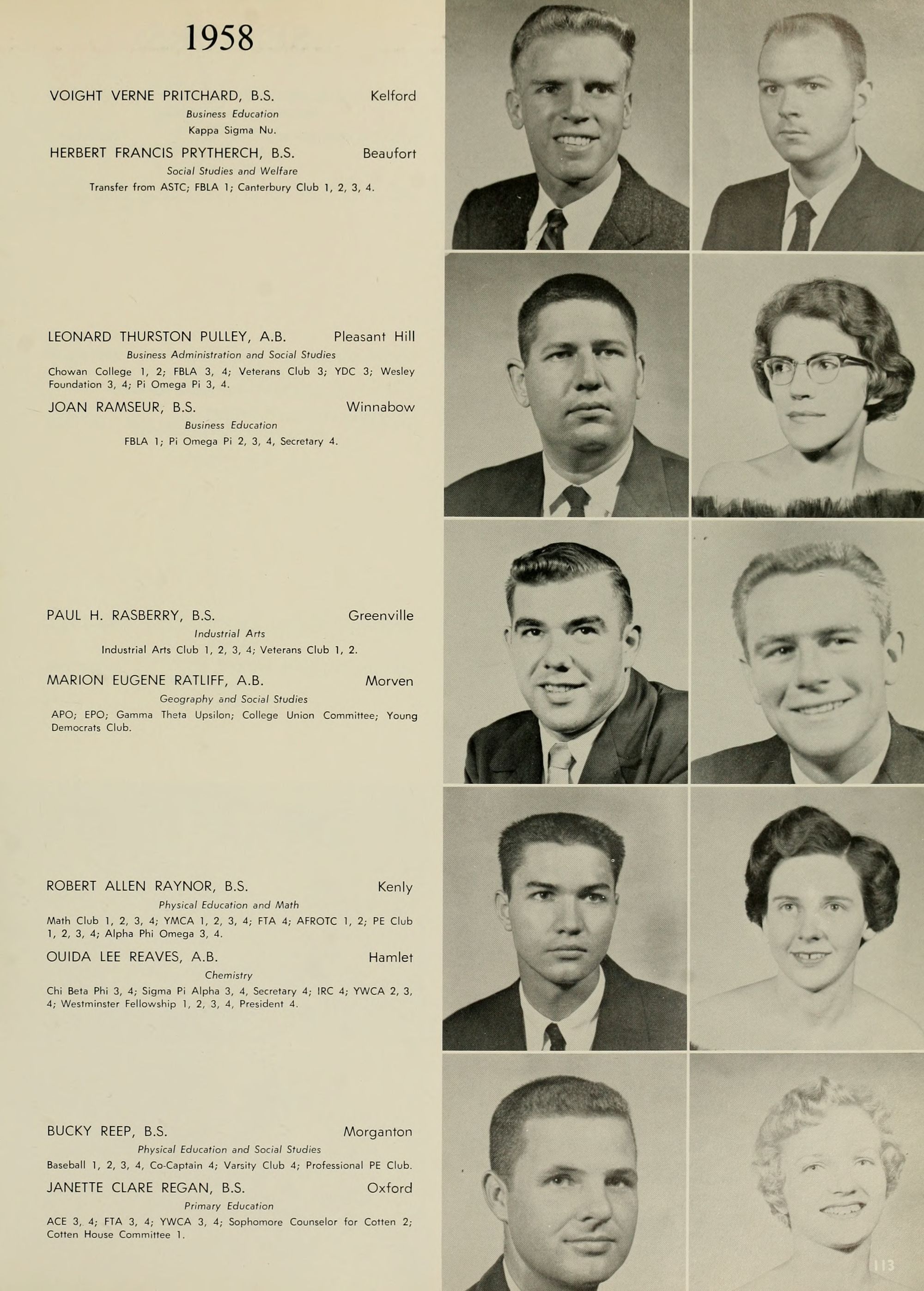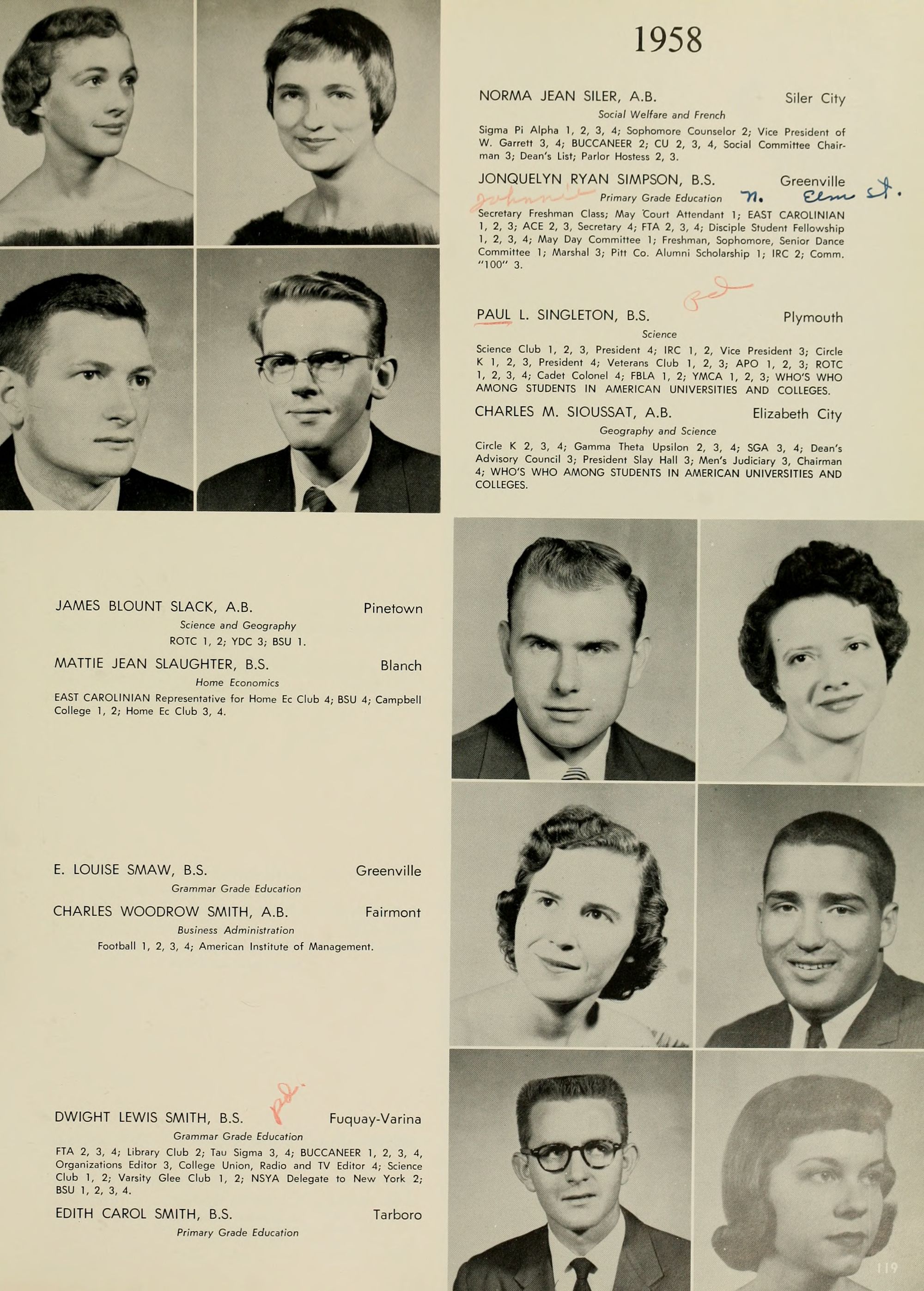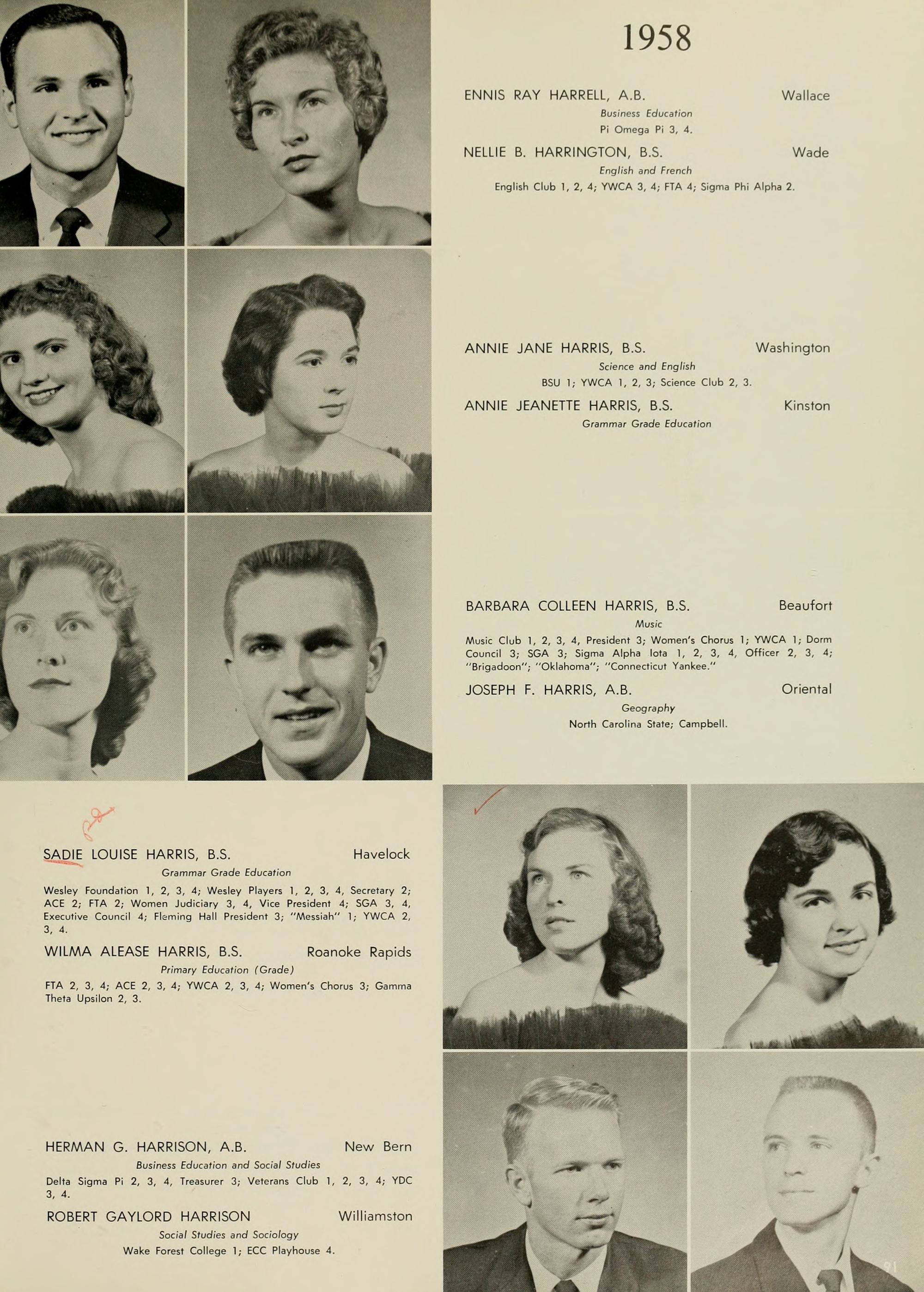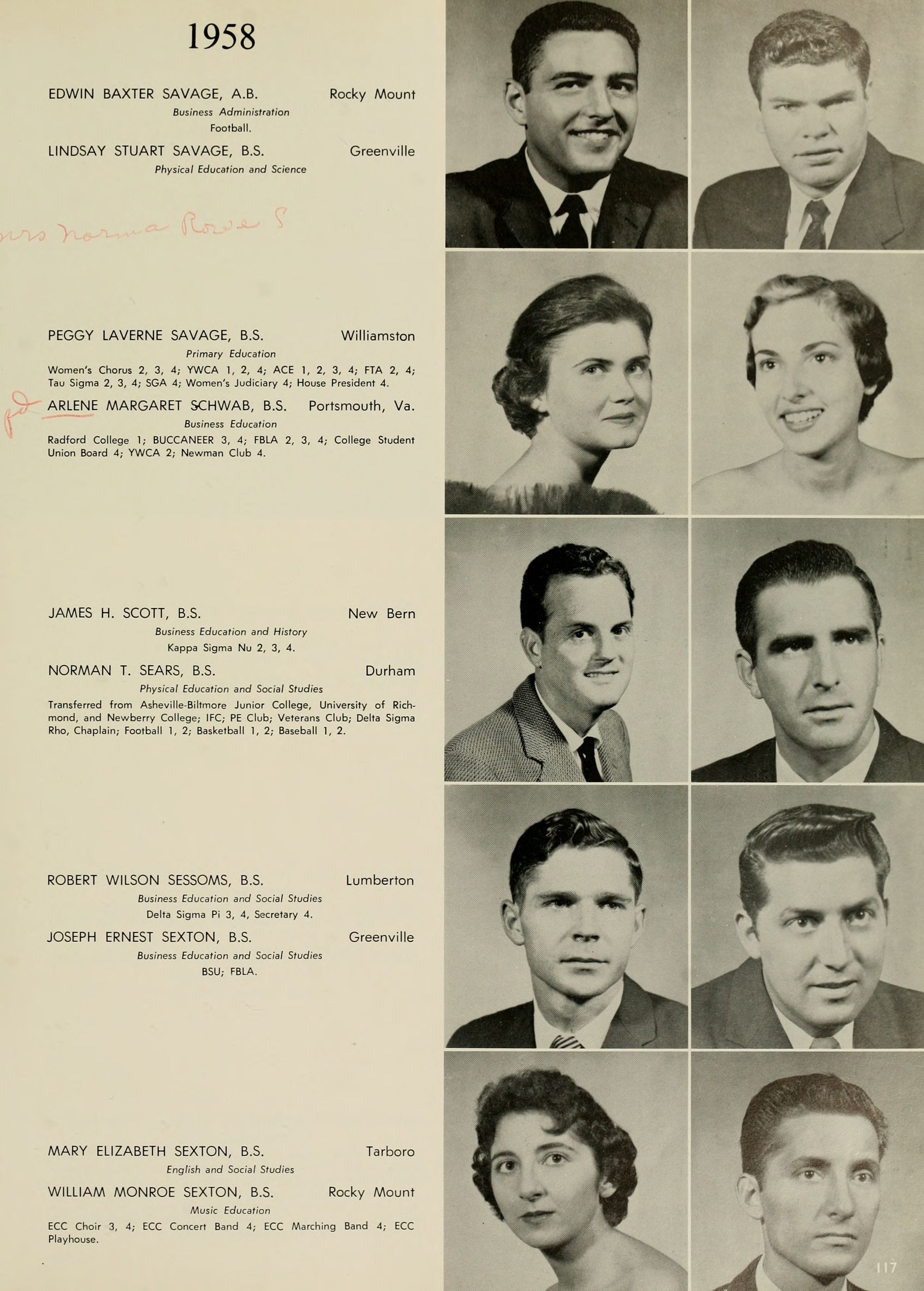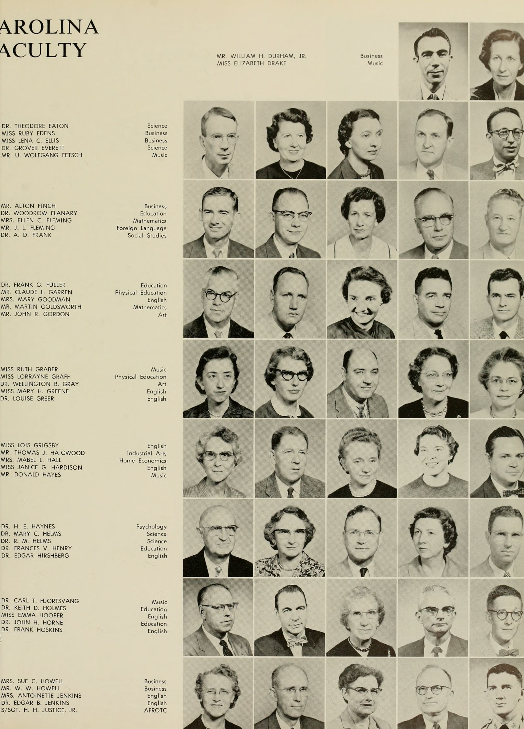 Pictured top row, left to right: Kate W. Lewis, Art; W. H. Rags- dale, Education; Birdie McKinney, Latin; Sallie Joyner Davis, History; Maria D. Graham, Mathematics; Mamie E. Jenkins, English; C. W. Wilson, Education; Mrs. Jennie M. Ogiden, Home Economics; Fannie Bishop, Piano; Herbert E. Austin, Science; Robert H. Wright, President.