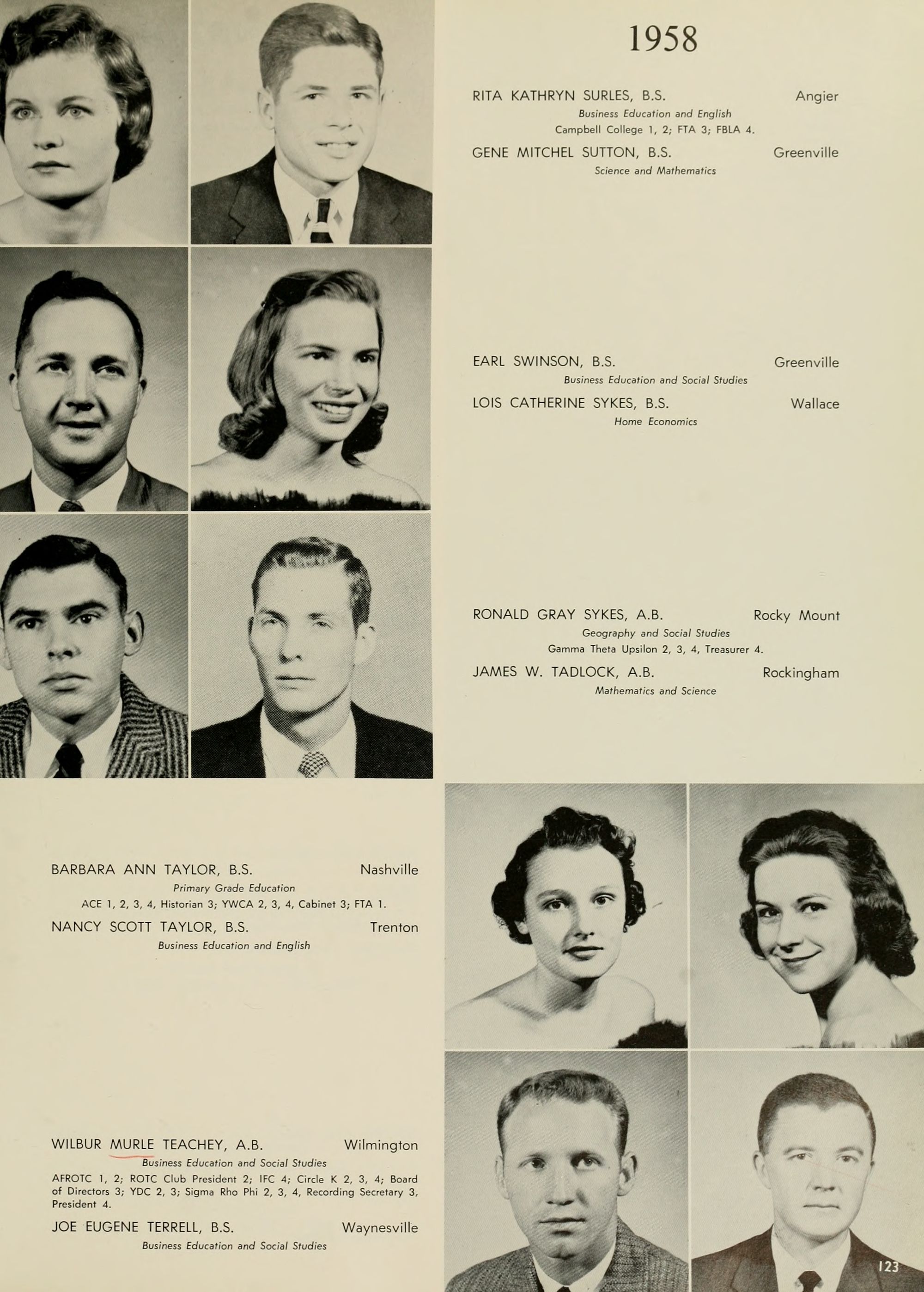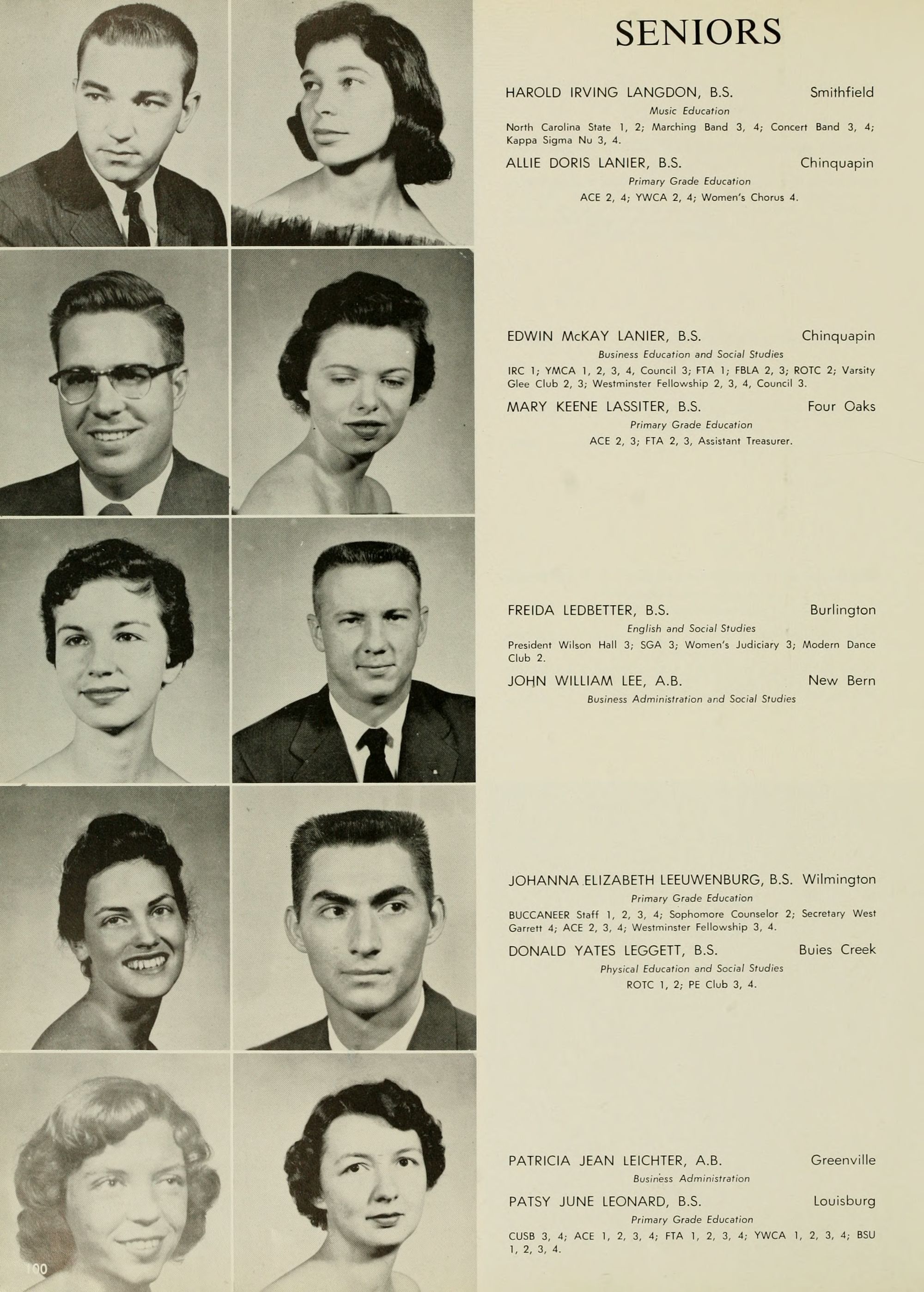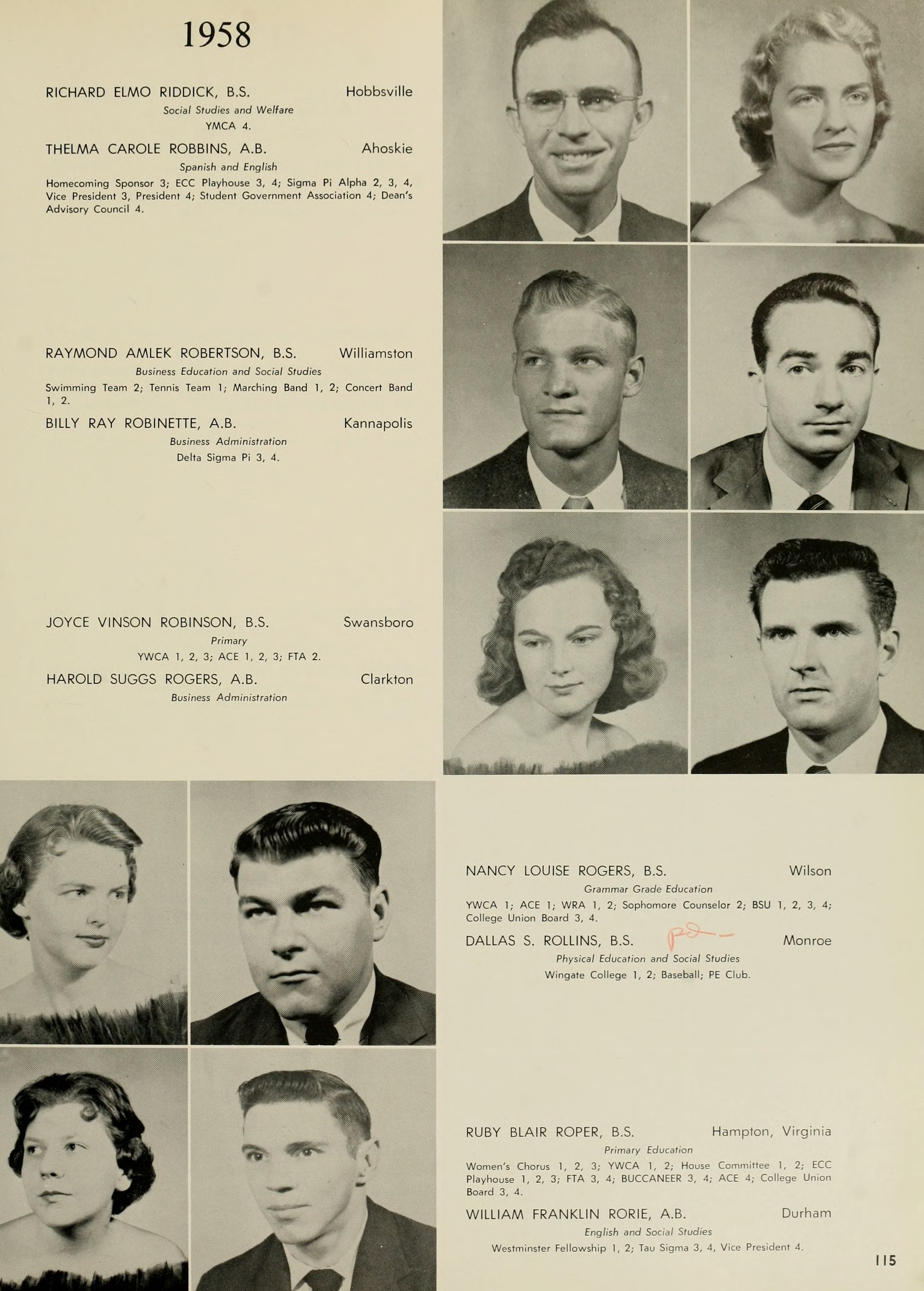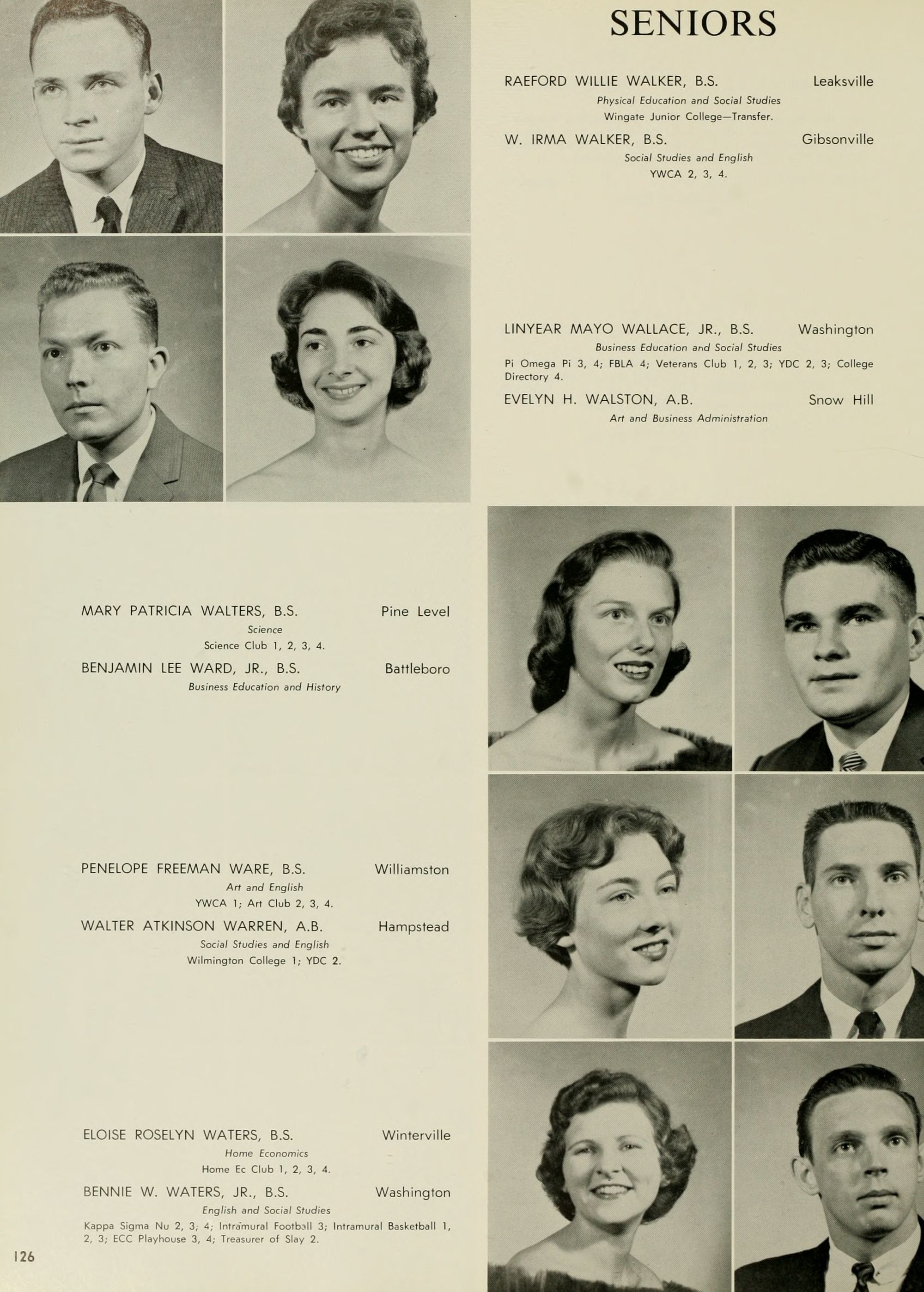 Pictured top row, left to right: Kate W. Lewis, Art; W. H. Rags- dale, Education; Birdie McKinney, Latin; Sallie Joyner Davis, History; Maria D. Graham, Mathematics; Mamie E. Jenkins, English; C. W. Wilson, Education; Mrs. Jennie M. Ogiden, Home Economics; Fannie Bishop, Piano; Herbert E. Austin, Science; Robert H. Wright, President.