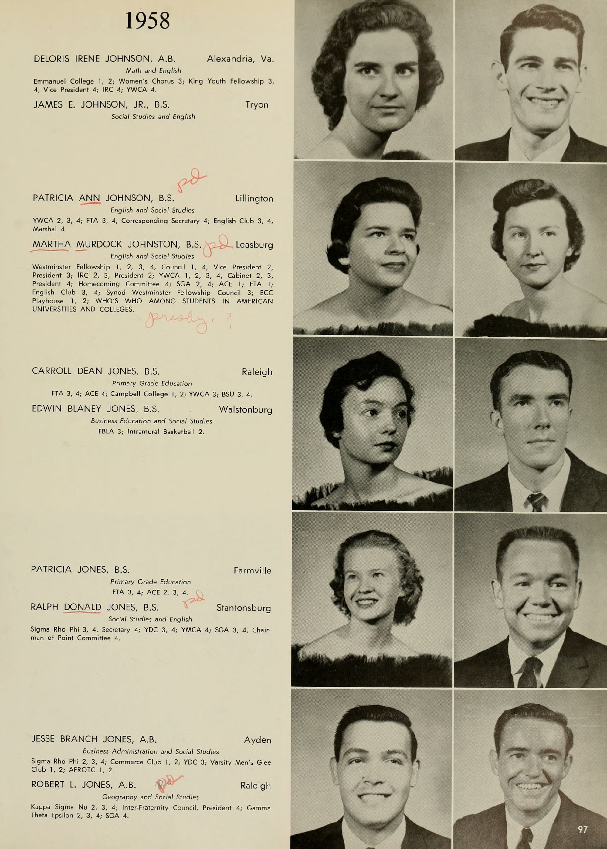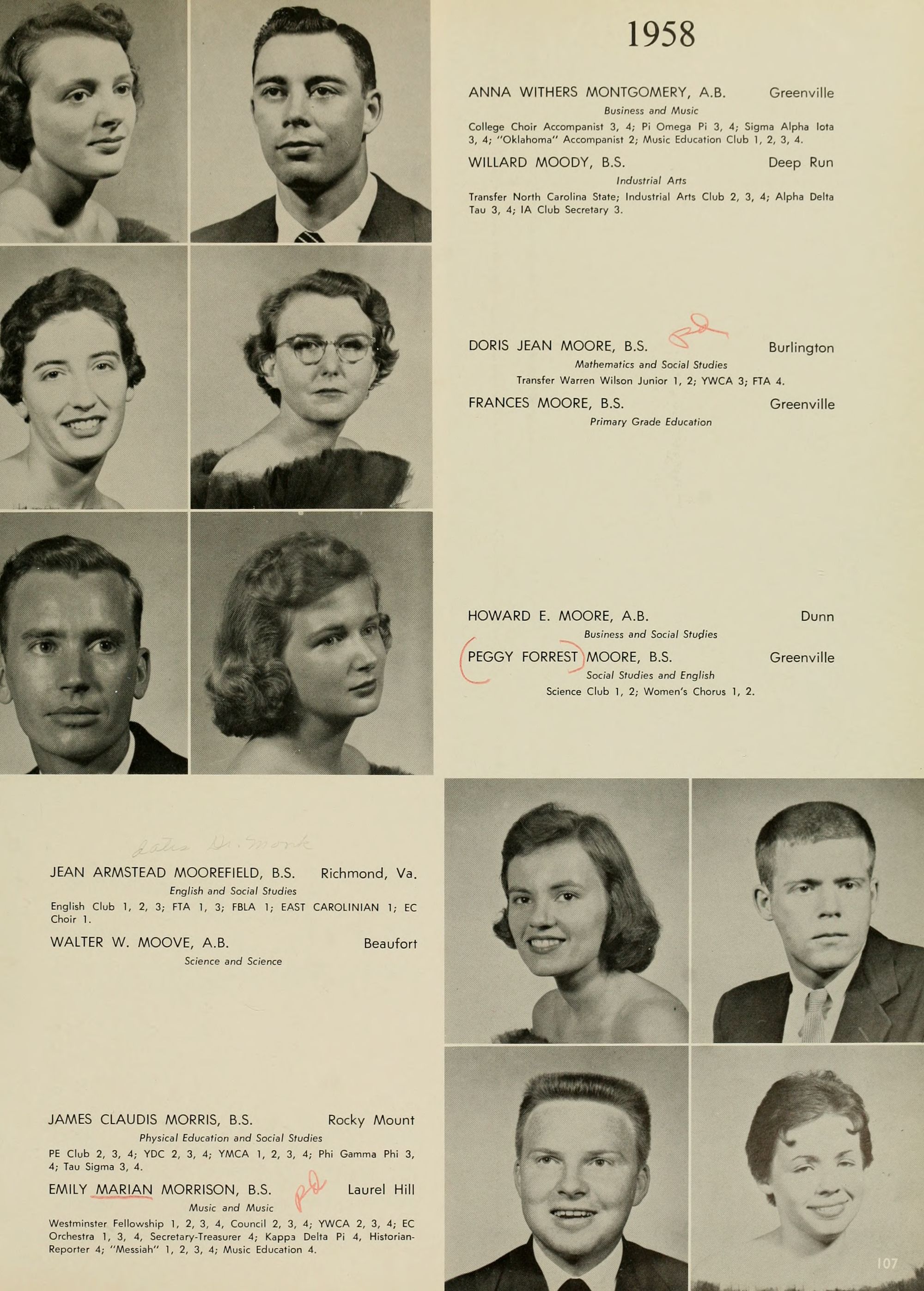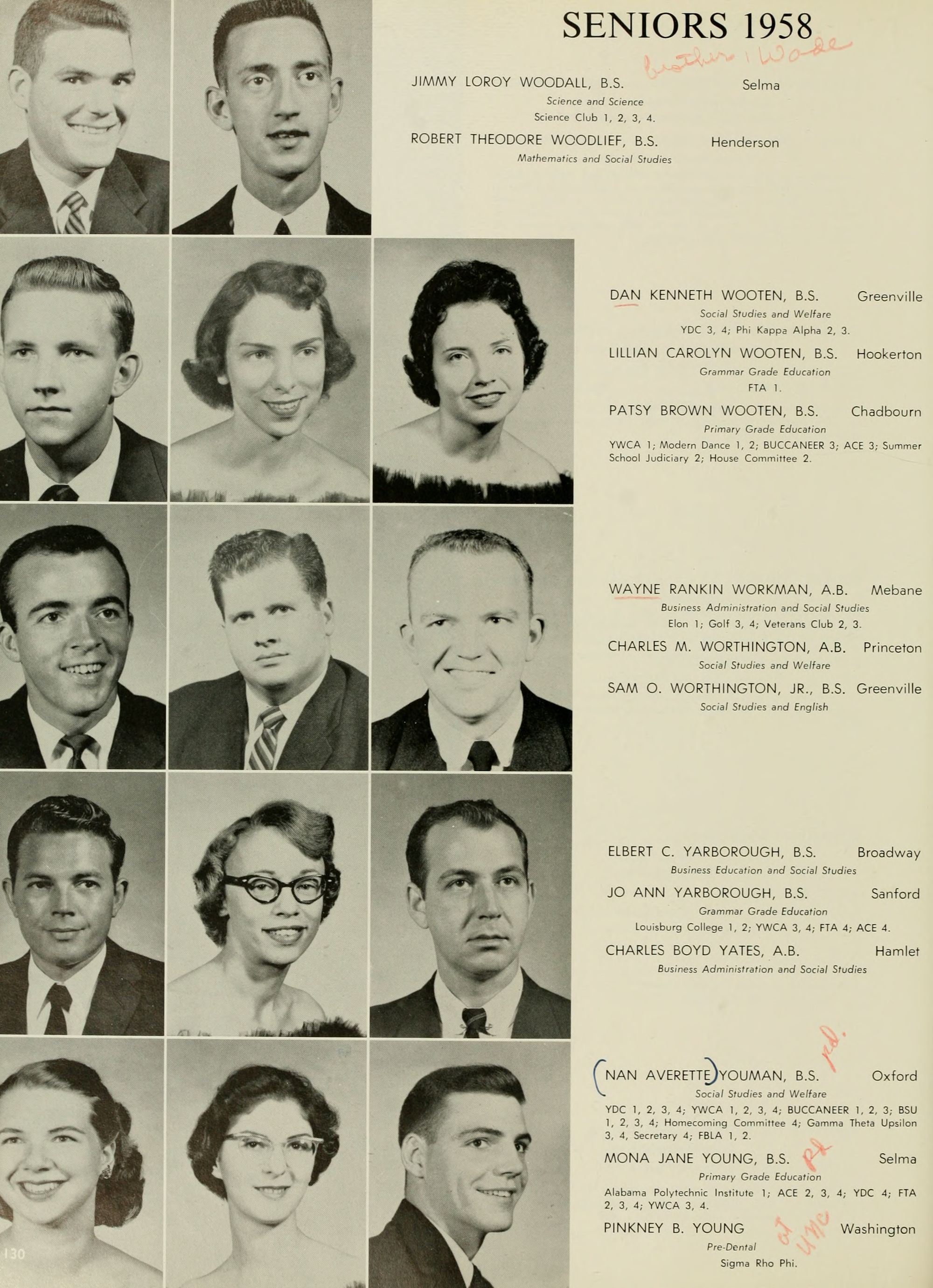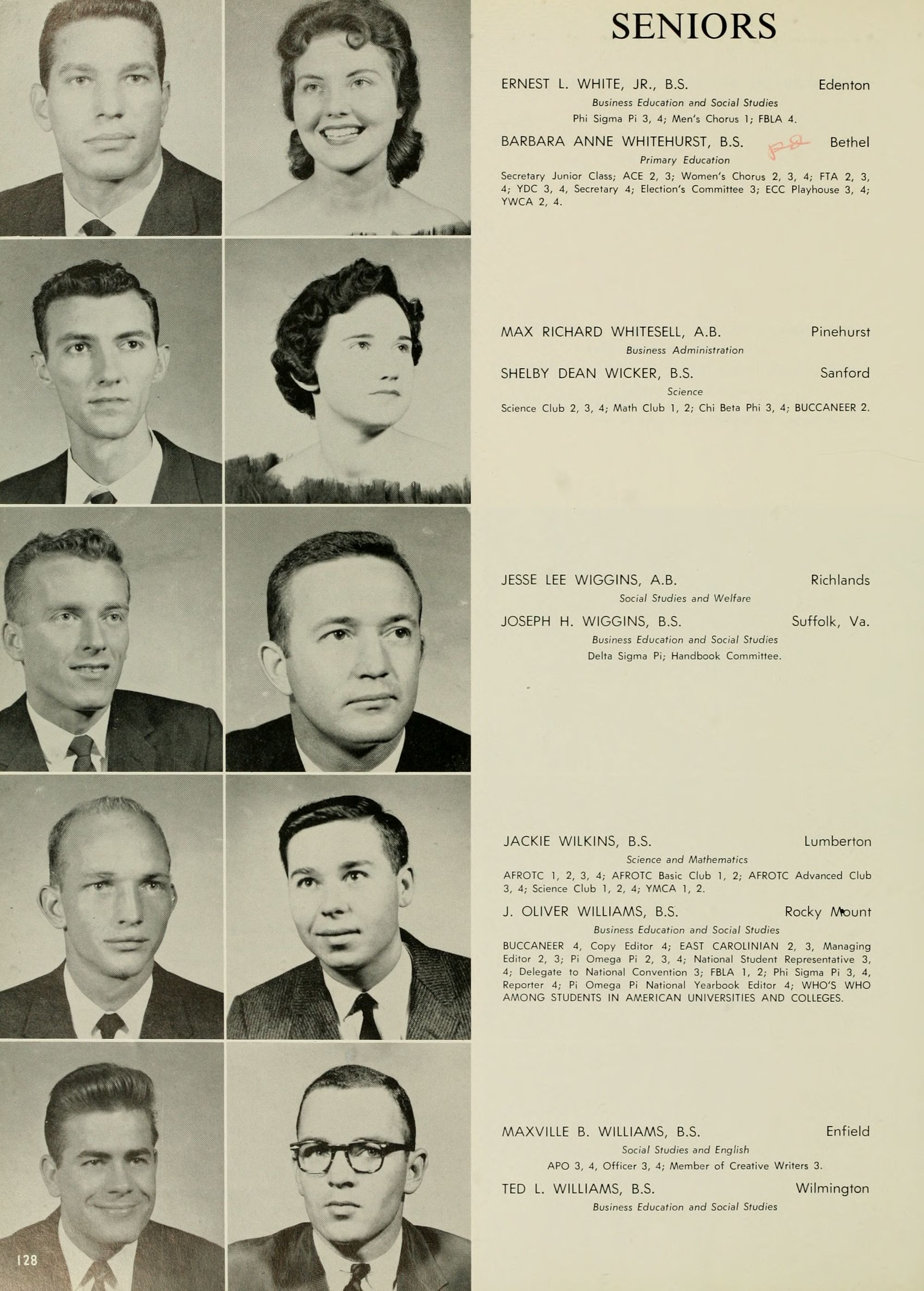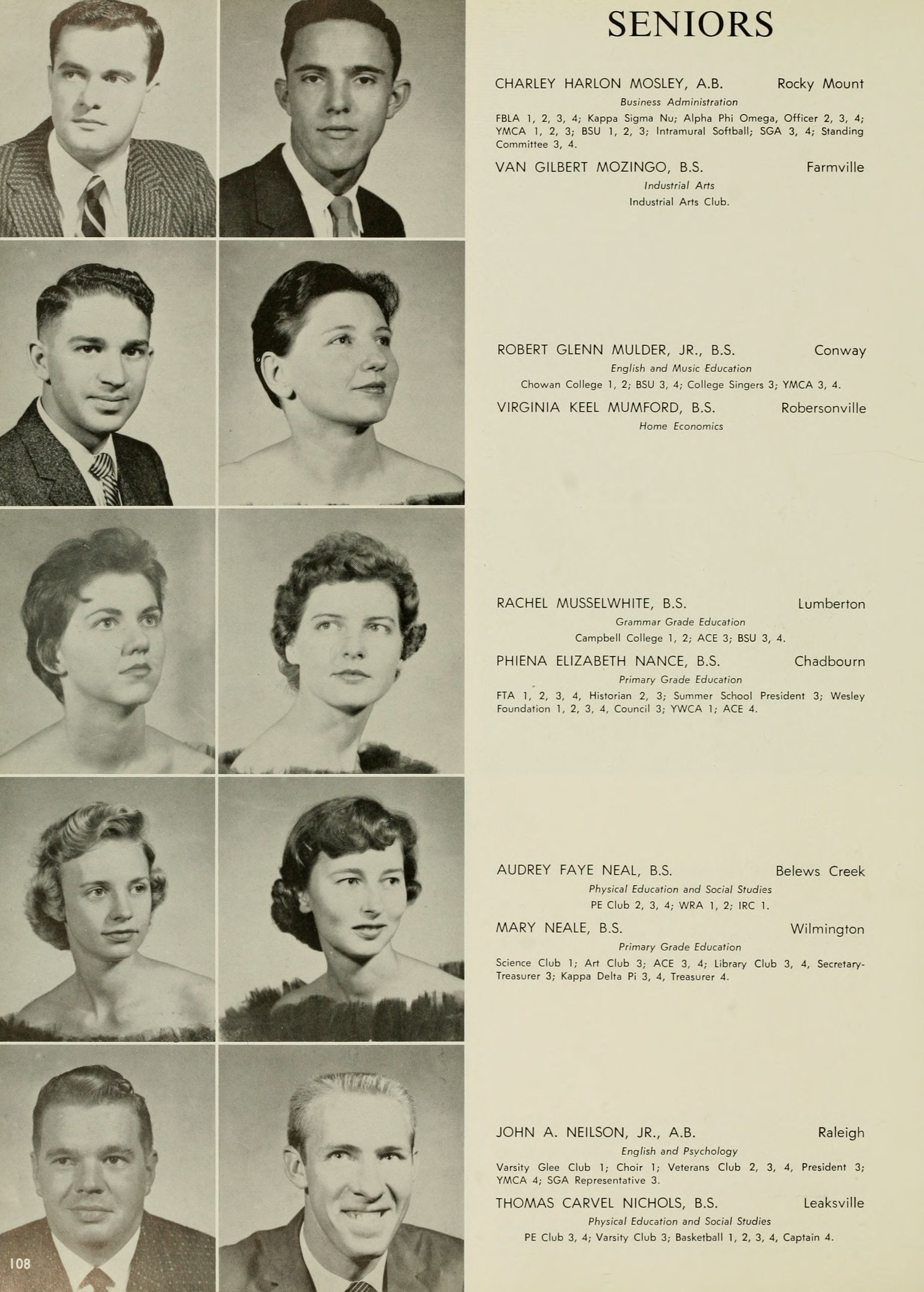 Pictured top row, left to right: Kate W. Lewis, Art; W. H. Rags- dale, Education; Birdie McKinney, Latin; Sallie Joyner Davis, History; Maria D. Graham, Mathematics; Mamie E. Jenkins, English; C. W. Wilson, Education; Mrs. Jennie M. Ogiden, Home Economics; Fannie Bishop, Piano; Herbert E. Austin, Science; Robert H. Wright, President.