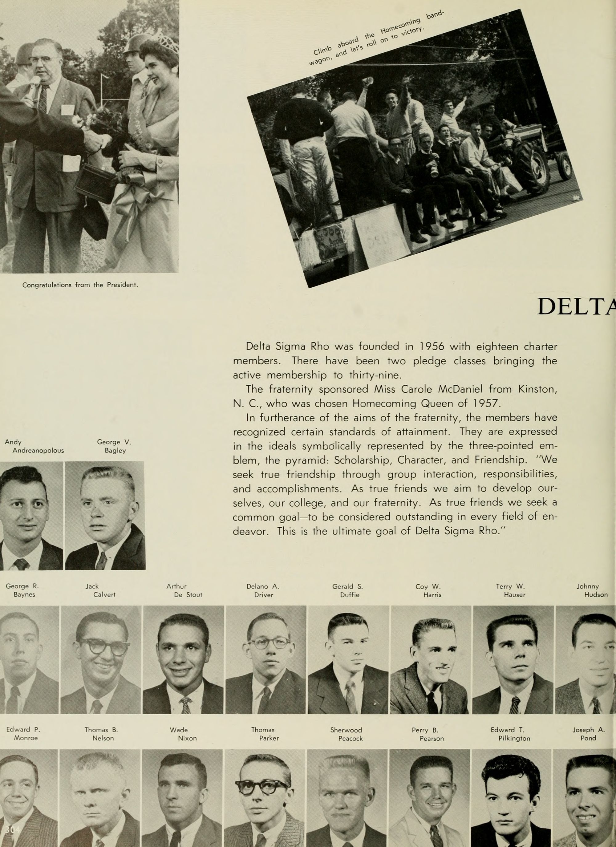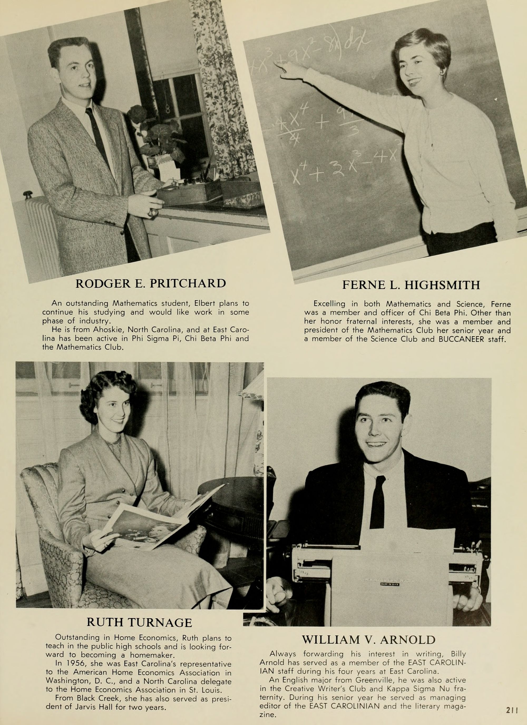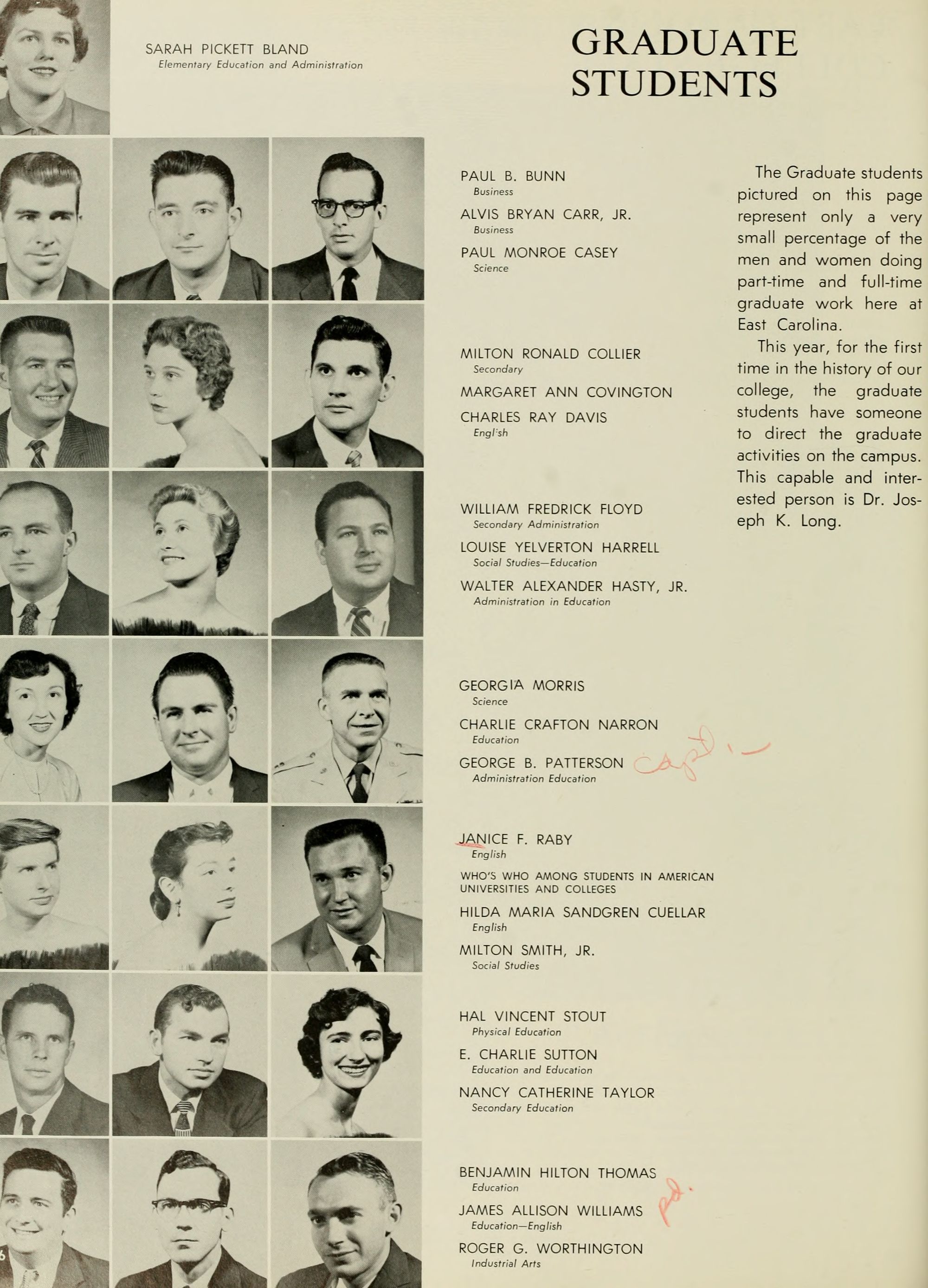 The Editor's right hand is always his Associate Editor, and my right hand has certainly been skill- fully and continuously at work this year. Credit unlimited goes to Adolphus Spain, my Associate Editor; Joyce Hardison, Business Manager,- Worth McKeel, Assistant Business Manager; Joyce and Janice Pierce, whose tireless efforts have kept progress rolling,- Eddie Dennis, A. C. Hinton, Euclid Armstrong, Council Jarman, Oliver Williams, Ann McKay, June Miller, Dwight Smith, Pat' Dunn, Beverly Durham, Johonna Leeuwenberg, Peggy Hewett, Arlene Schwab, Betty Ann Davis, Mike Williamson, Emily "Grunt" Gunter, Charlotte "Shorty" Strickland, Joe Kelly, Margaret Conyer's, Jim- my Trice, Mike Katsias, and last but certainly not least, my other hand, Betty Freeman ( ).