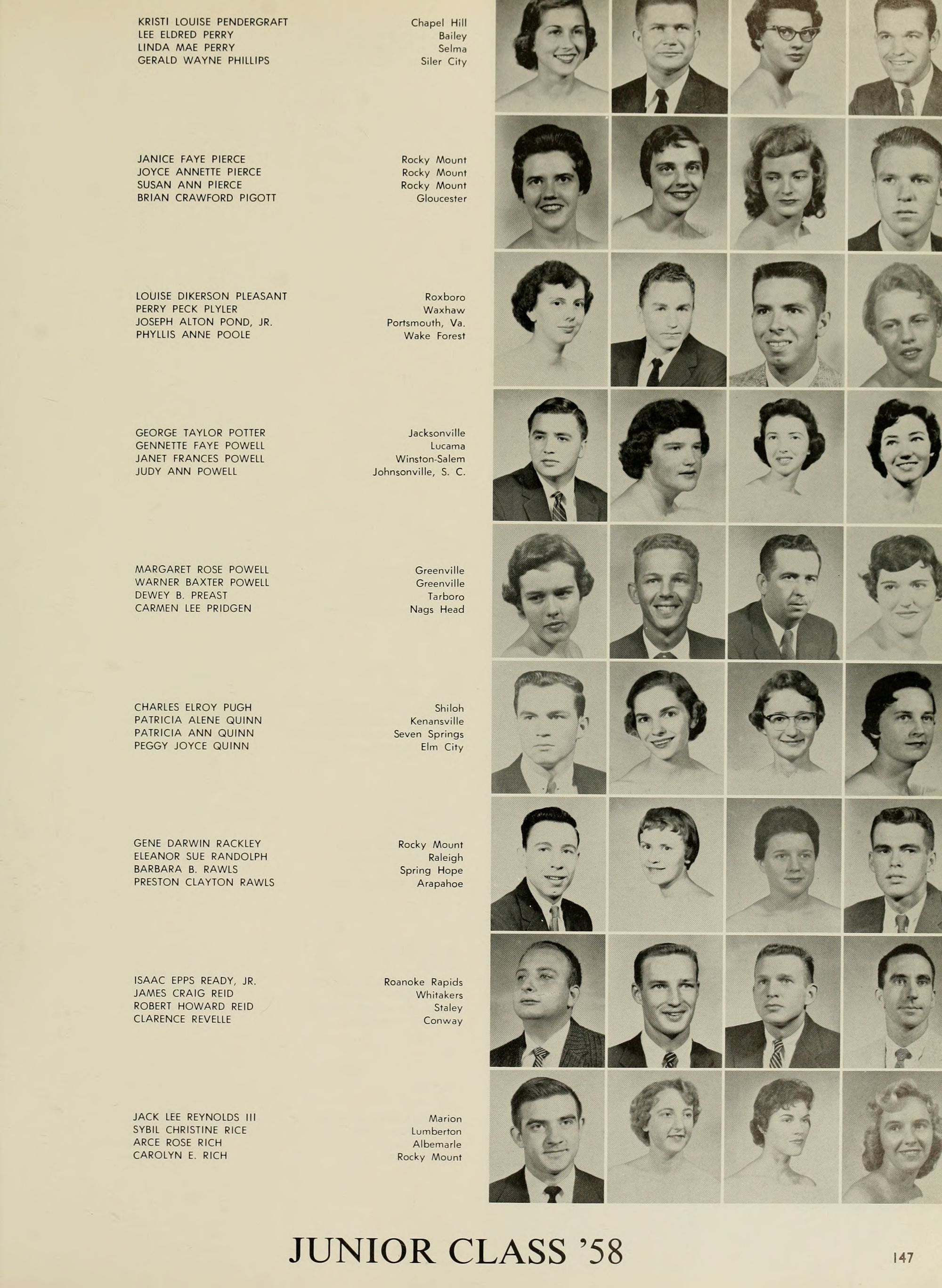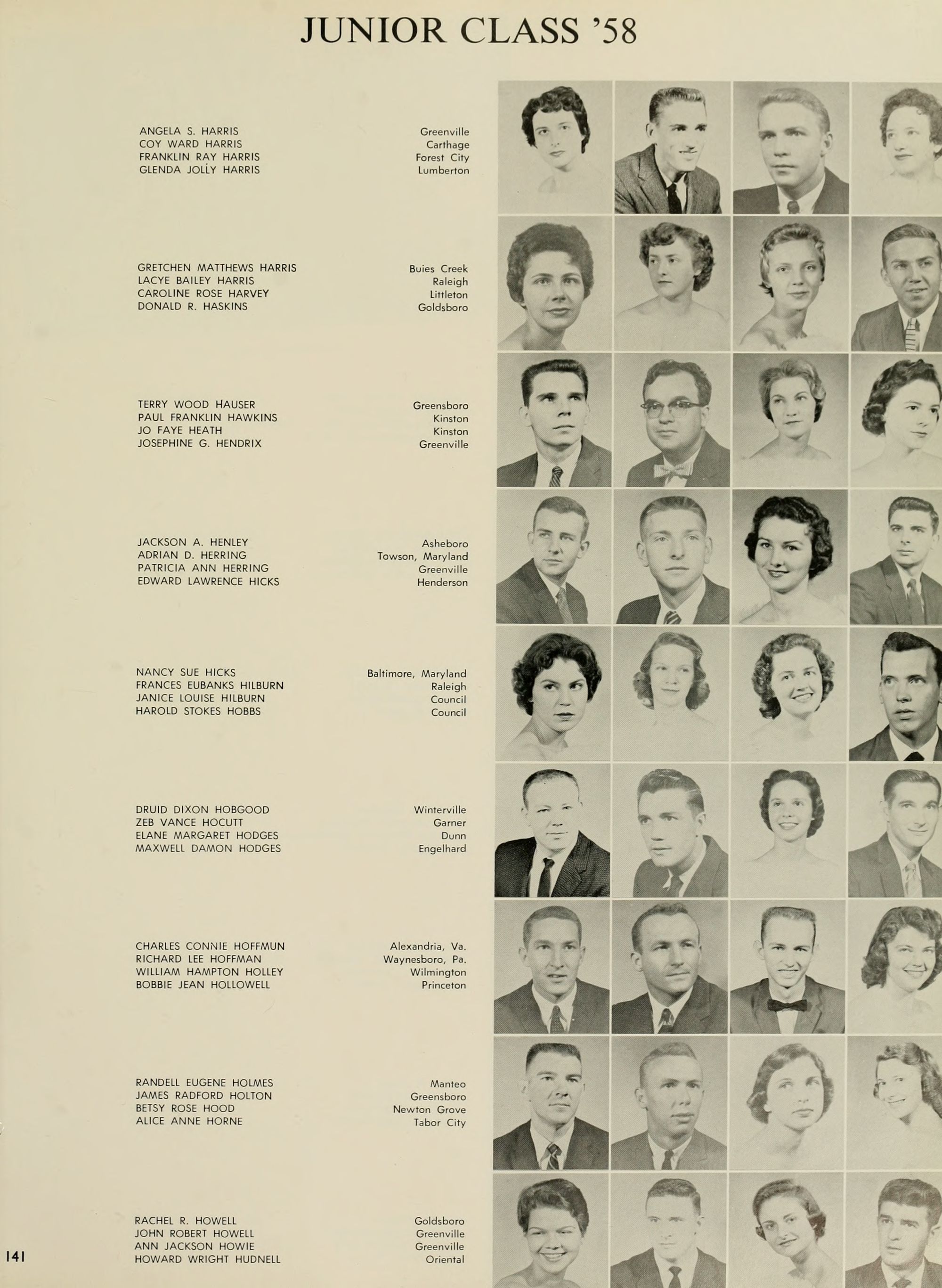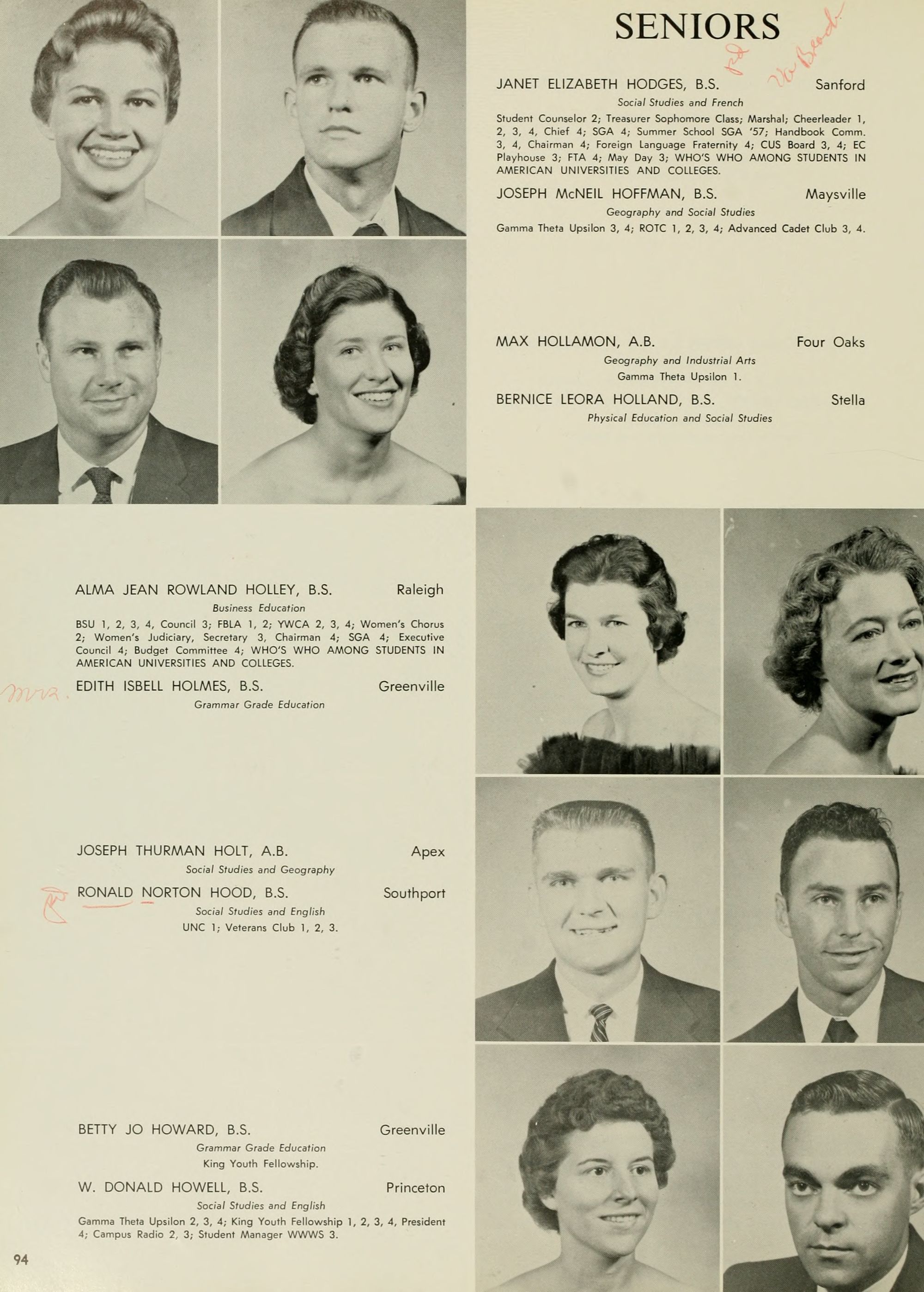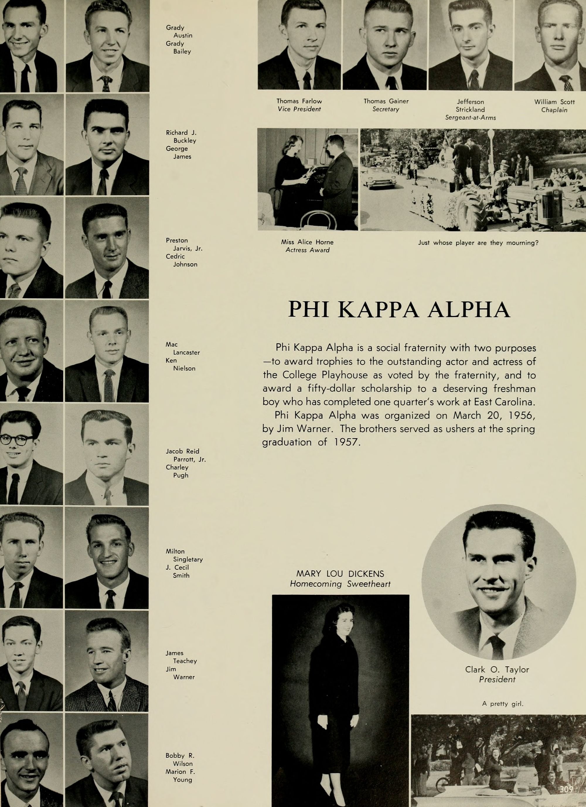 The Editor's right hand is always his Associate Editor, and my right hand has certainly been skill- fully and continuously at work this year. Credit unlimited goes to Adolphus Spain, my Associate Editor; Joyce Hardison, Business Manager,- Worth McKeel, Assistant Business Manager; Joyce and Janice Pierce, whose tireless efforts have kept progress rolling,- Eddie Dennis, A. C. Hinton, Euclid Armstrong, Council Jarman, Oliver Williams, Ann McKay, June Miller, Dwight Smith, Pat' Dunn, Beverly Durham, Johonna Leeuwenberg, Peggy Hewett, Arlene Schwab, Betty Ann Davis, Mike Williamson, Emily "Grunt" Gunter, Charlotte "Shorty" Strickland, Joe Kelly, Margaret Conyer's, Jim- my Trice, Mike Katsias, and last but certainly not least, my other hand, Betty Freeman ( ).
