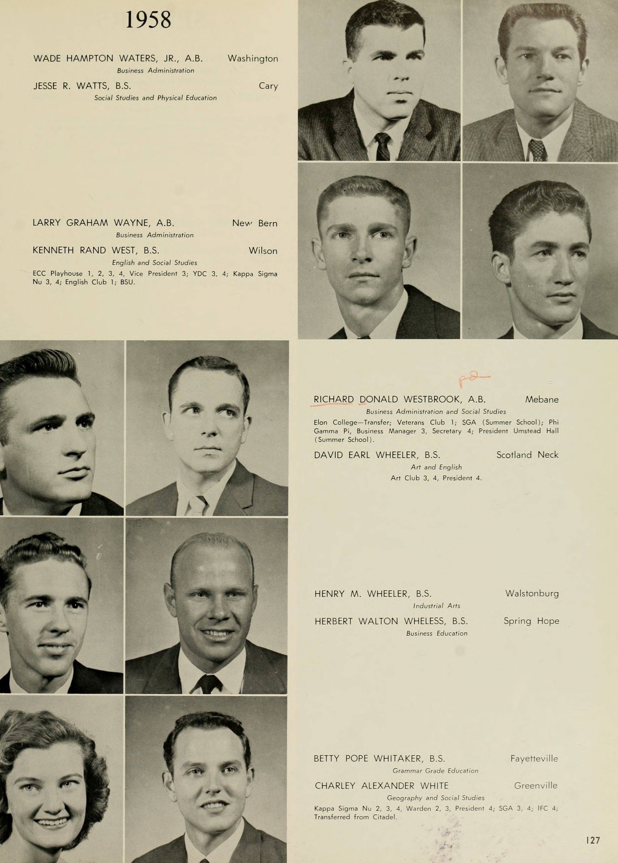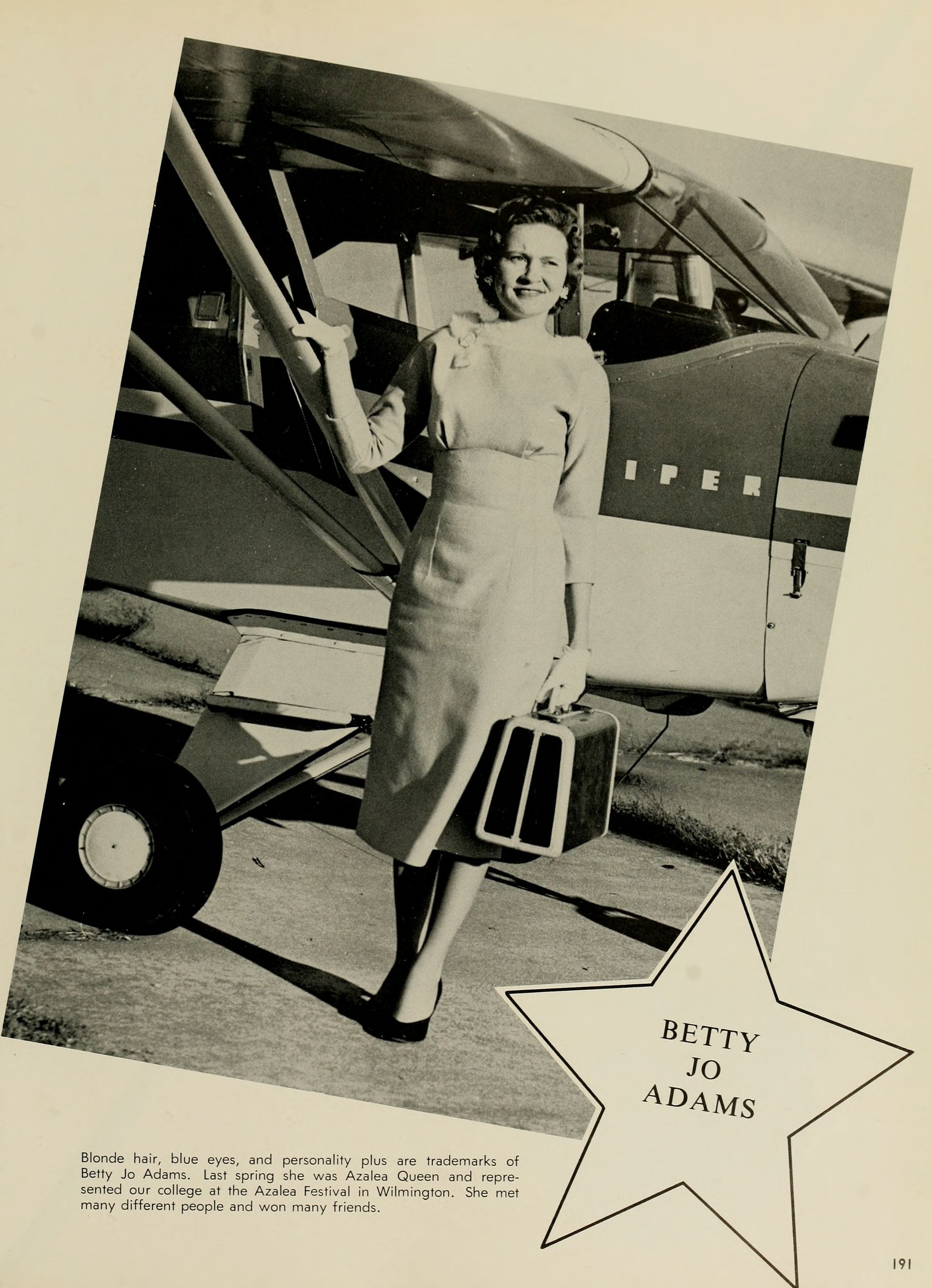 Mr. J. Herbert Waldrop, Jr., one of Greenville's leading citizens, who was a freshman here in 1910 and is currently serving his second term as a trustee of our college, is back getting a new im- pression of East Carolina. He finds his tour en- livened by the sparkling personality of Elizabeth Cox, a very lovely, first quarter freshman coed from Raleigh.