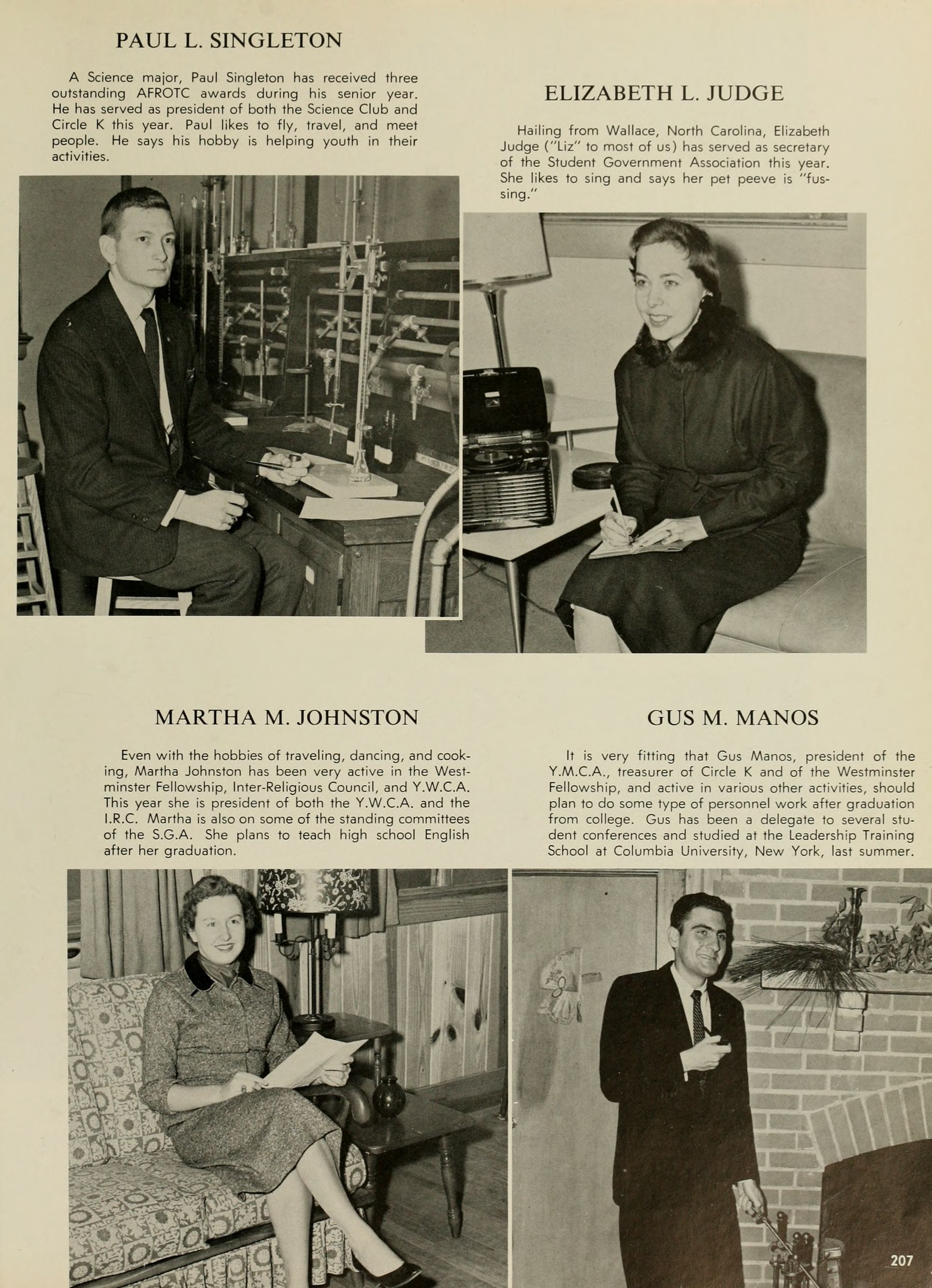 Liz is rather amused to learn that two college girls made a daily trip uptown to procure the student's mail during Mr. Waldrop's years here as a student.