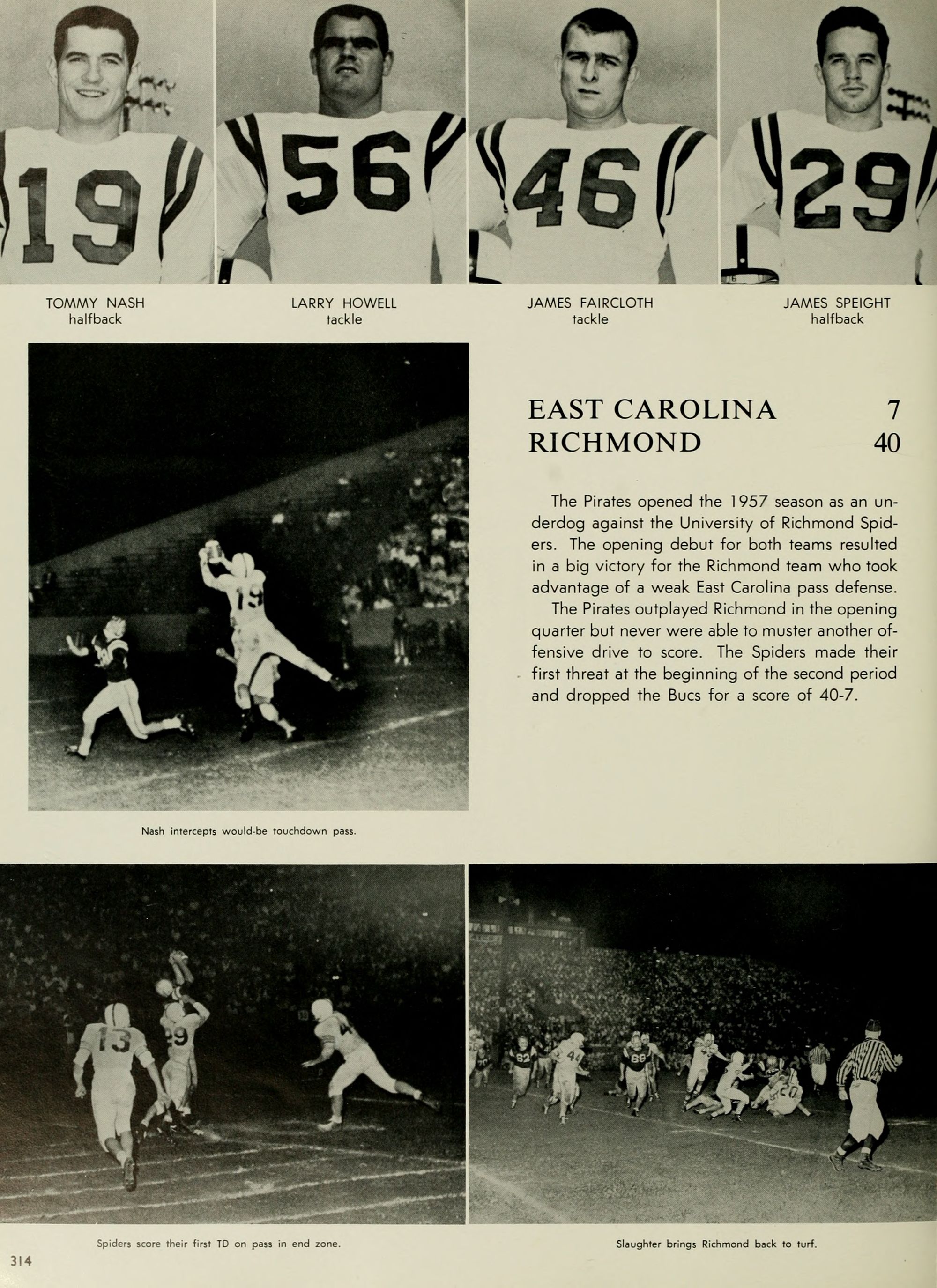 As is evident in this volume, special attention is given to the fifty years' duration of East Carolina College. Coverage of the founding of our school and the events that marked the Golden Anni- versary celebrations are dominant features. Other new additions to the '58 Volume include college departmental coverage, graduate school, and a more complete student life section. The book this year is the largest in the history of the school. This is not said boastingly-merely to say that the staff felt that the additional 48 pages were needed to adequately cover the college and its activities. We are extremely proud, and justly we hope, of the content of our book. Organization of the con- tent is slightly changed from last year's. Student life appears at the front of the book where the stu- dents can more easily see it. Other changes were made for the over-all improvement of the book. Special attention was devoted to fraternities and athletics, both having a better pictorial and com- position coverage. Speaking of being proud, as I previously have, what do you think of the book cover?