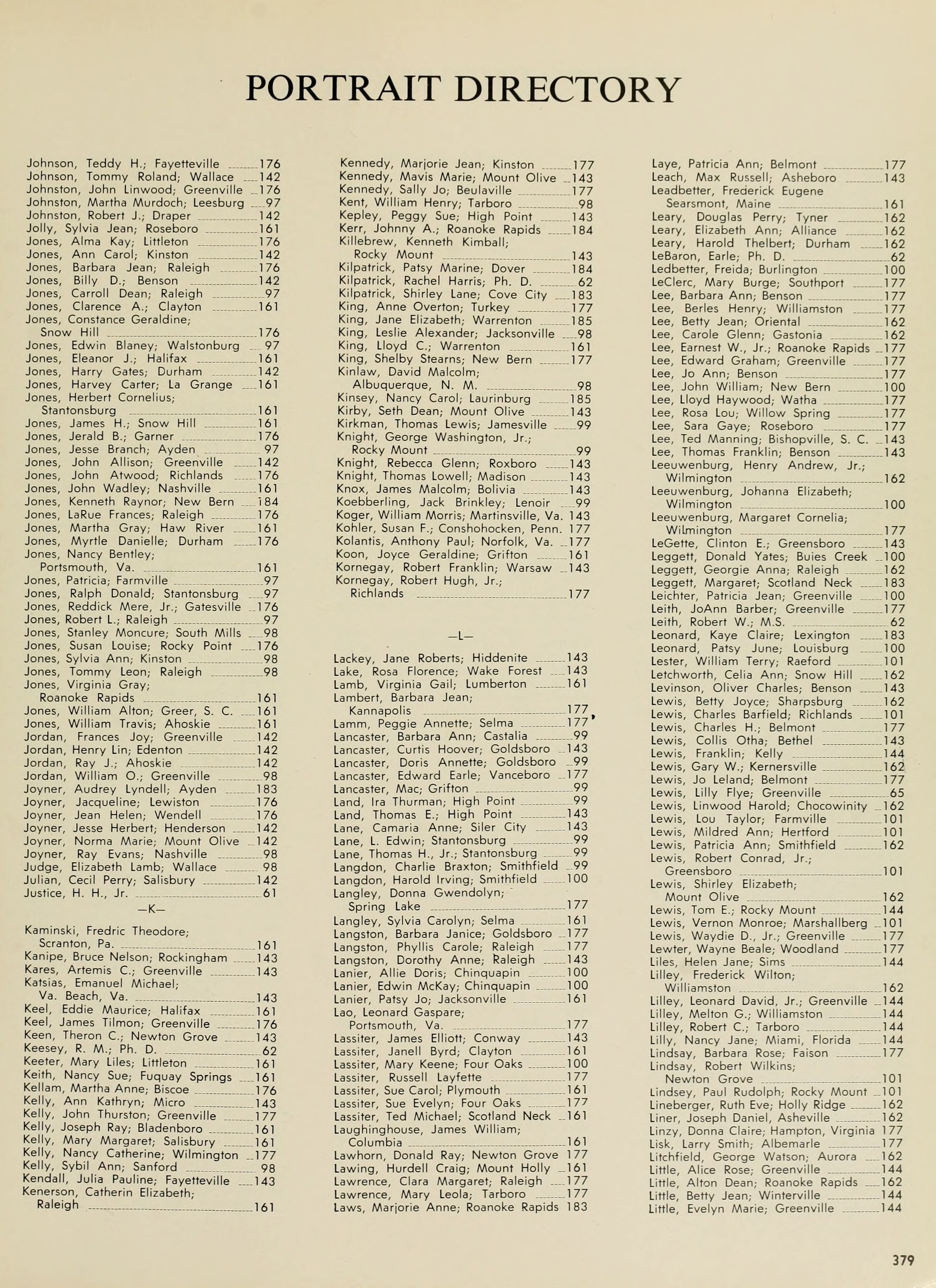 Porter, June S.; Secretary Placement Office . 65