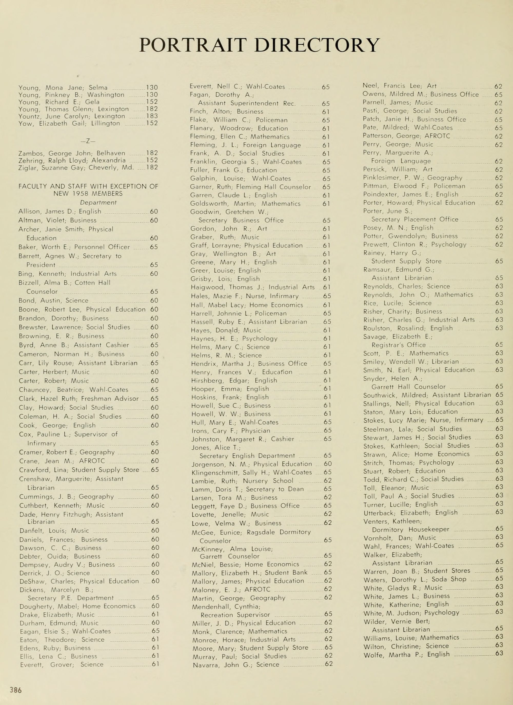 Wilder, Vernie Bert; Assistant Librarian 65