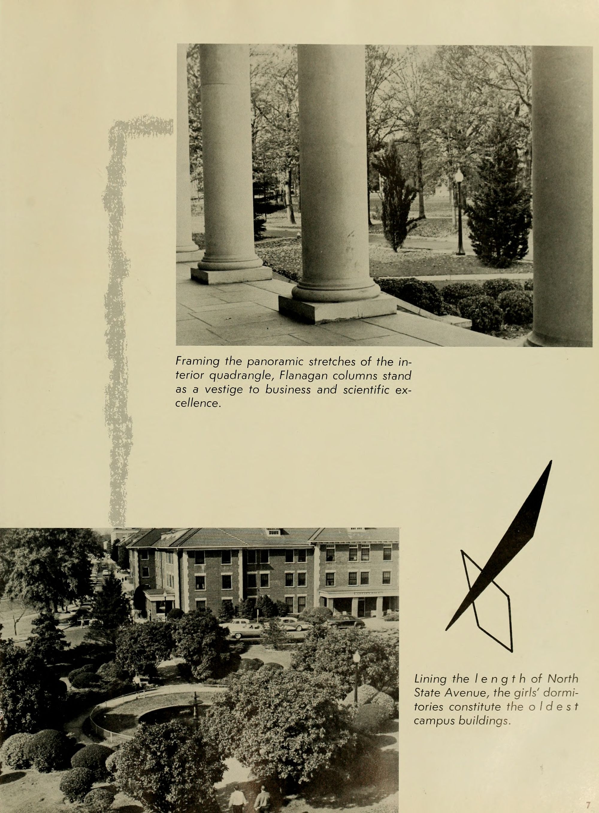 Lining the length of North State Avenue, the girls' dormitories constitute the oldest campus buildings.