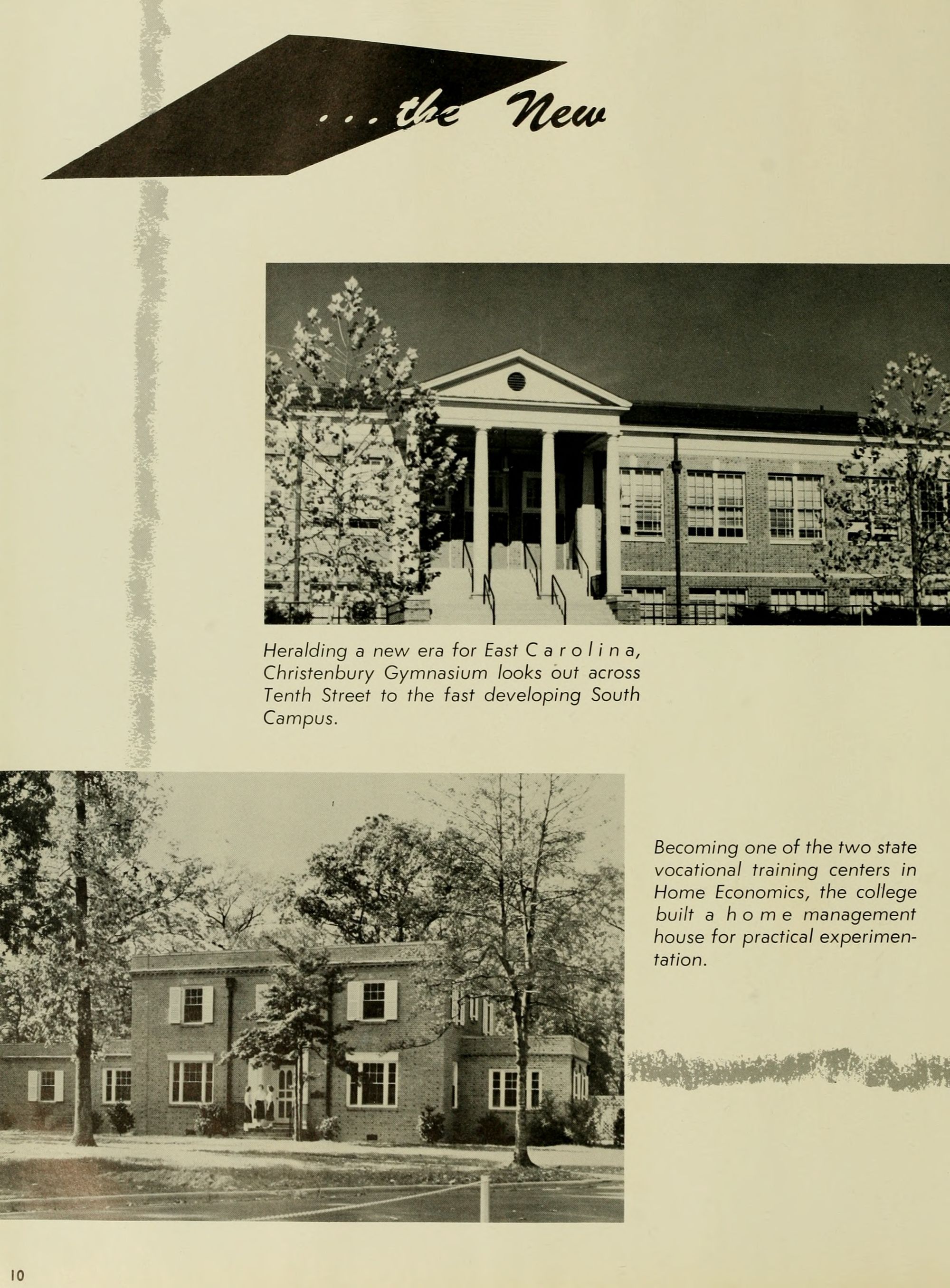 Heralding a new era for East Carolina, Christenbury Gymnasium looks out across Tenth Street to the fast developing South Campus.