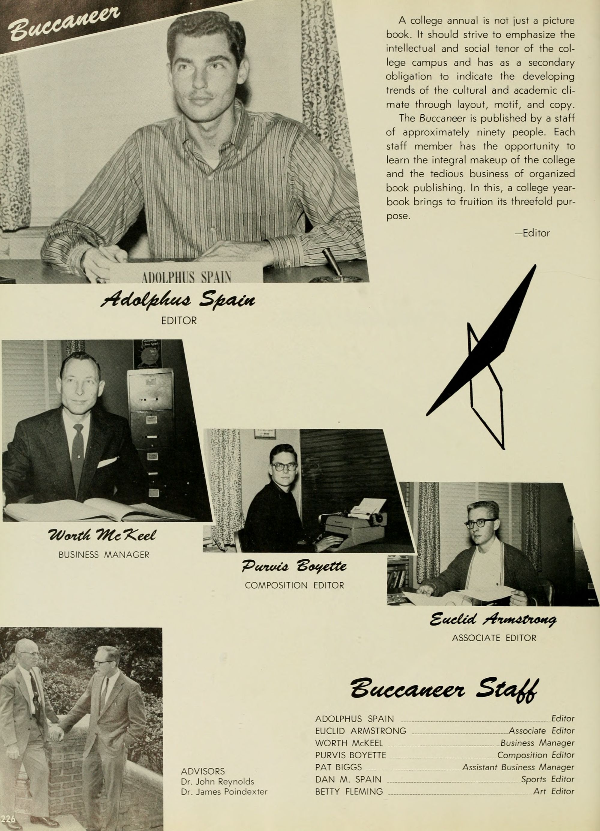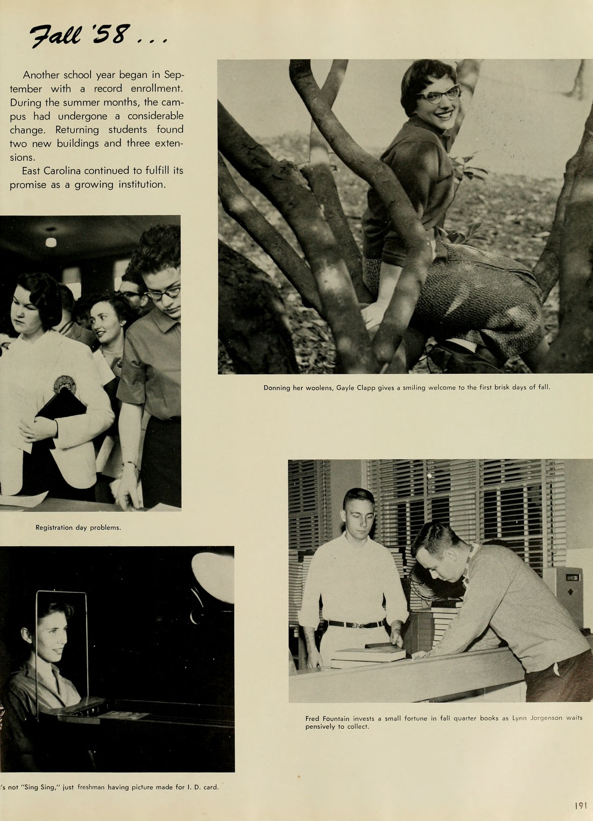 And it is for the hallmark of posterity and to the multiplicity of East Carolina College as it begins its second fifty years of service that the 1959 Buccaneer is dedicated.