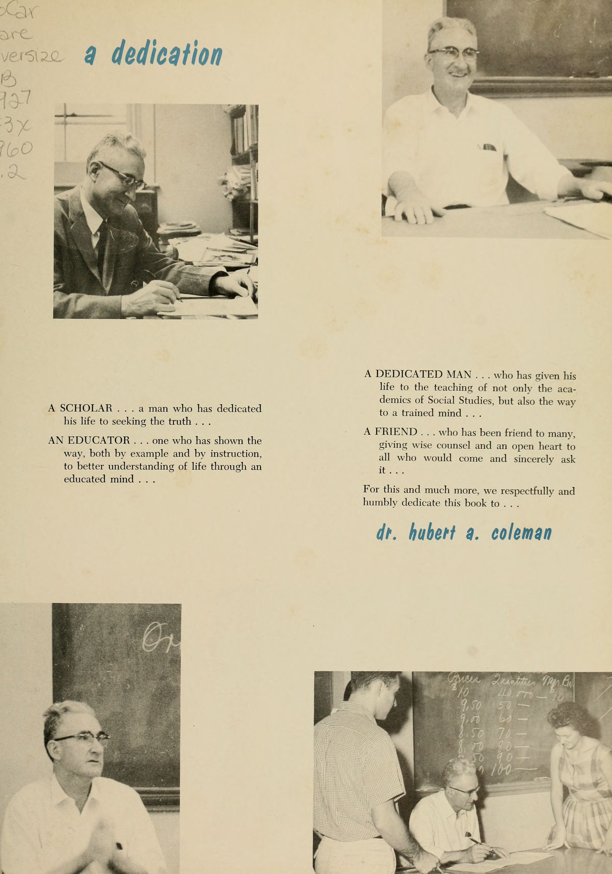 A DEDICATED MAN . . . who has given his life to the teaching of not only the aca- demics of Social Studies, but also the way to a trained mind . . .