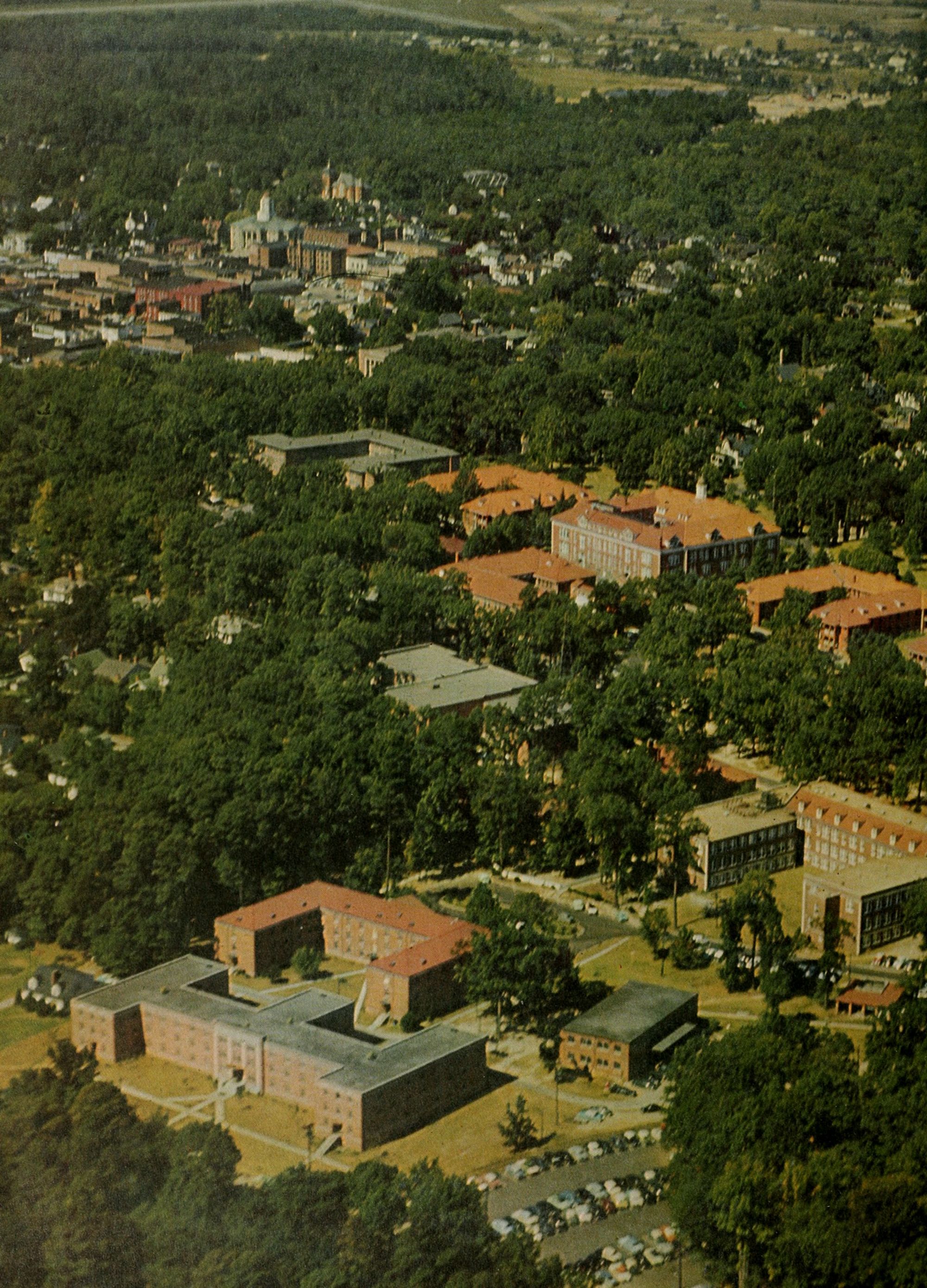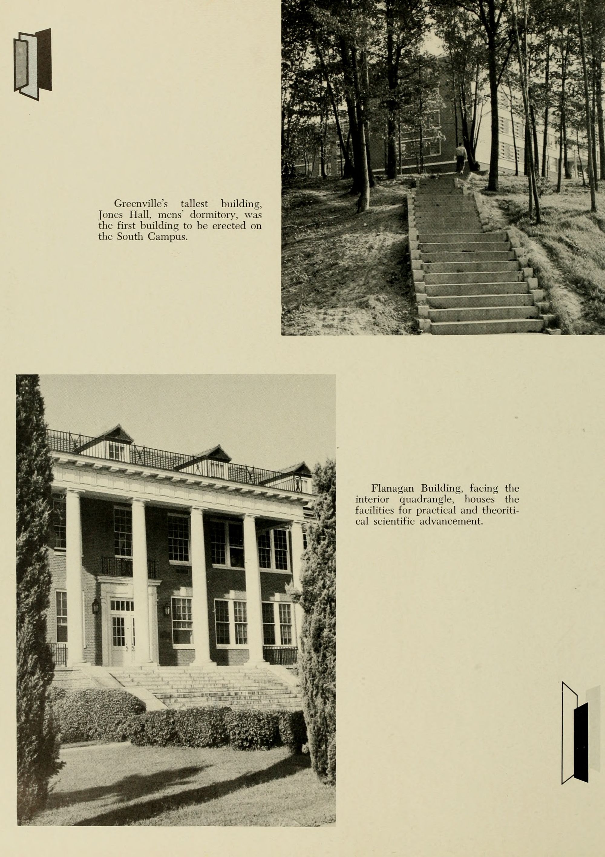 Greenville's tallest building, Jones Hall, mens' dormitory, was the first building to be erected on the South Campus.