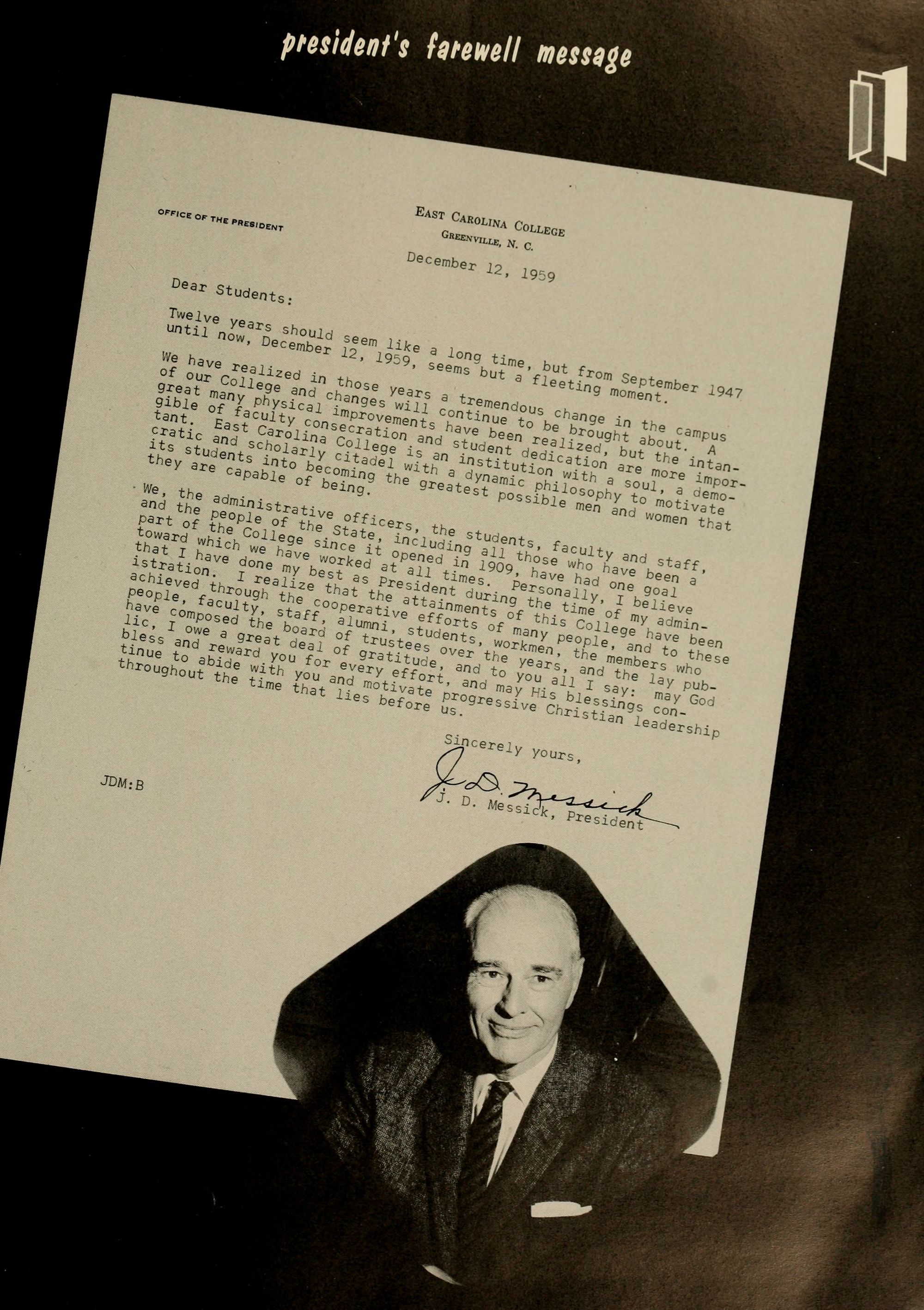 The following section is a brief glimpse of the personnel, progress, and future outlook of East Carolina College.