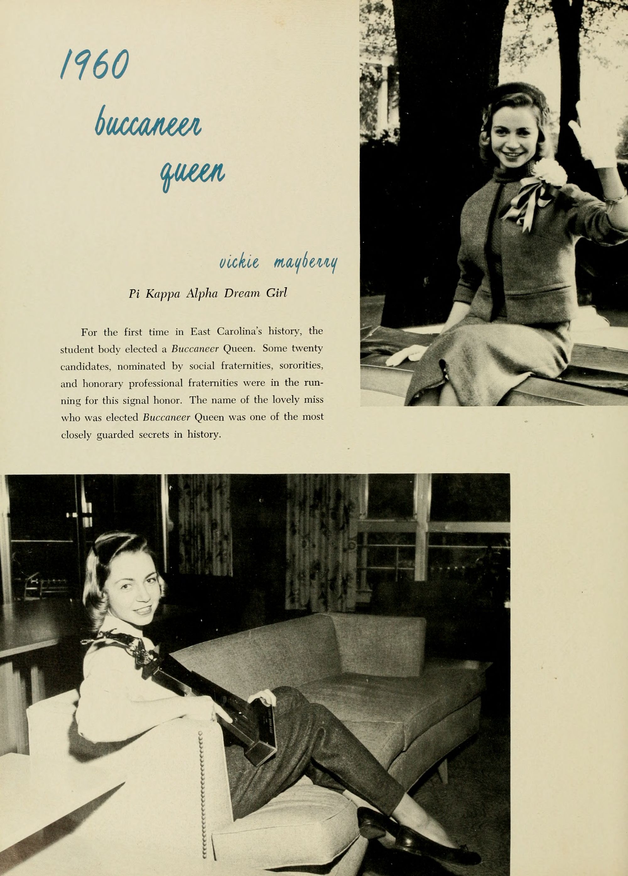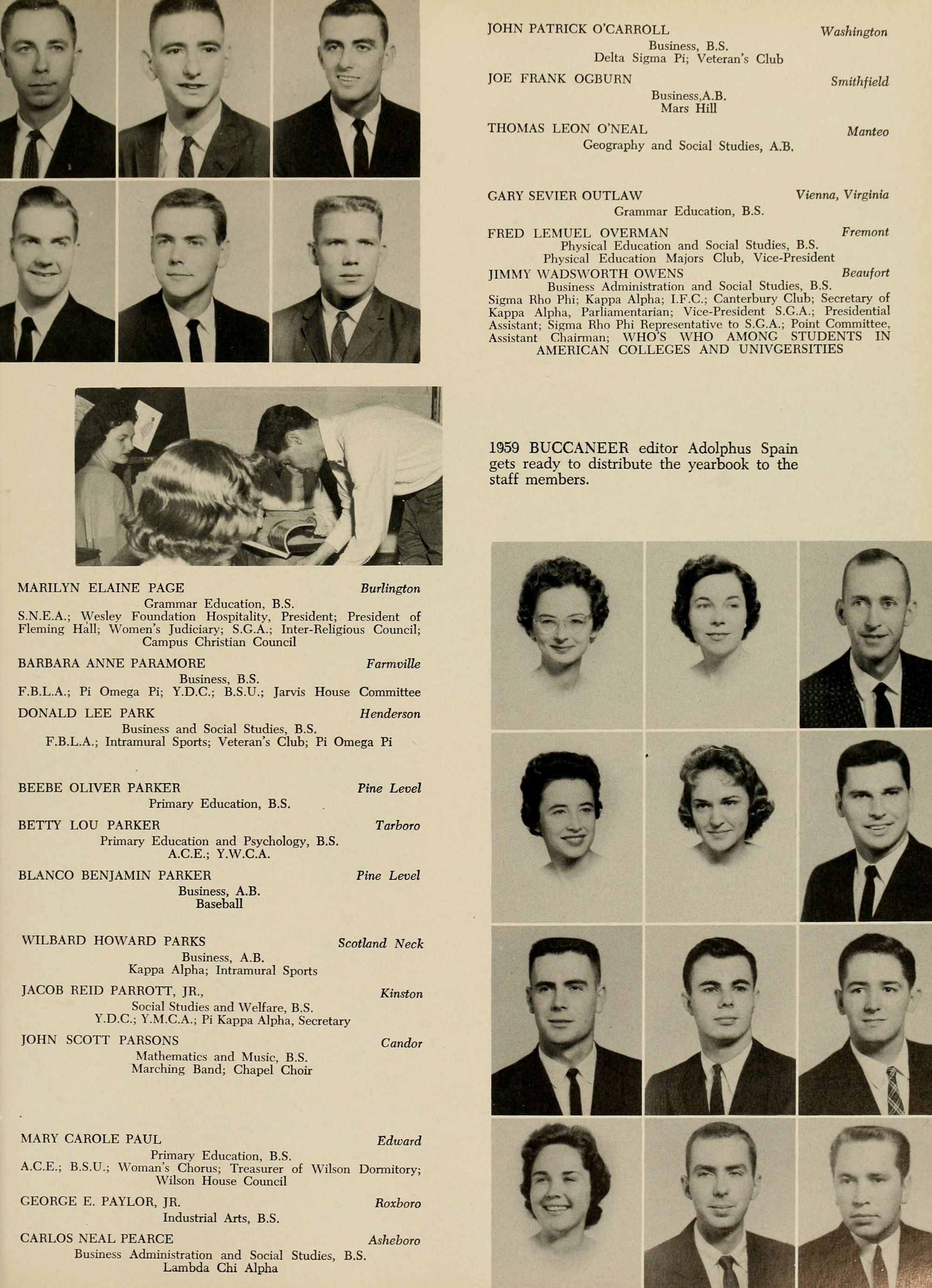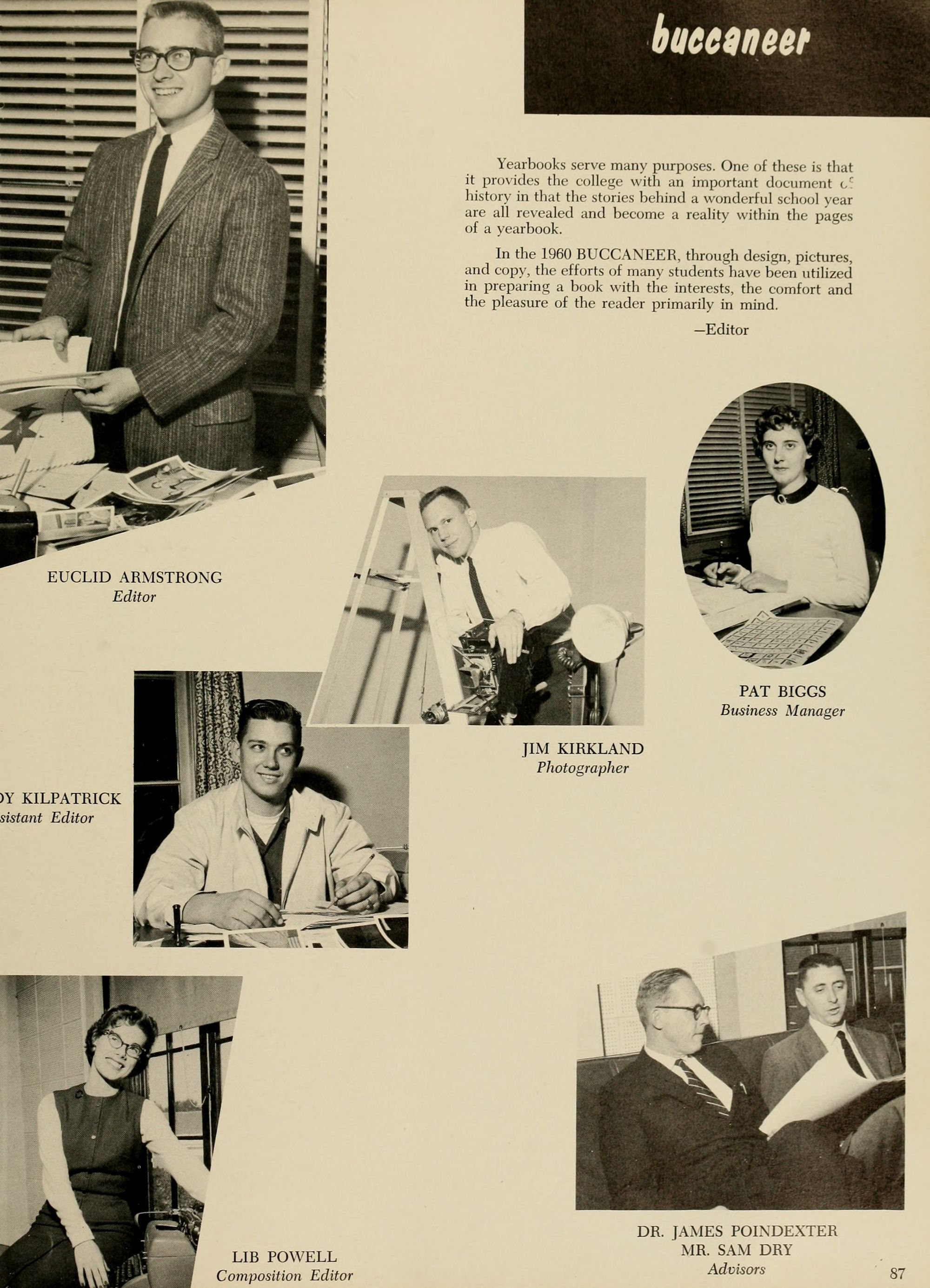 As a student photographer in 1959-1960 I took most of the candid photos in this edition of the Buccaneer.