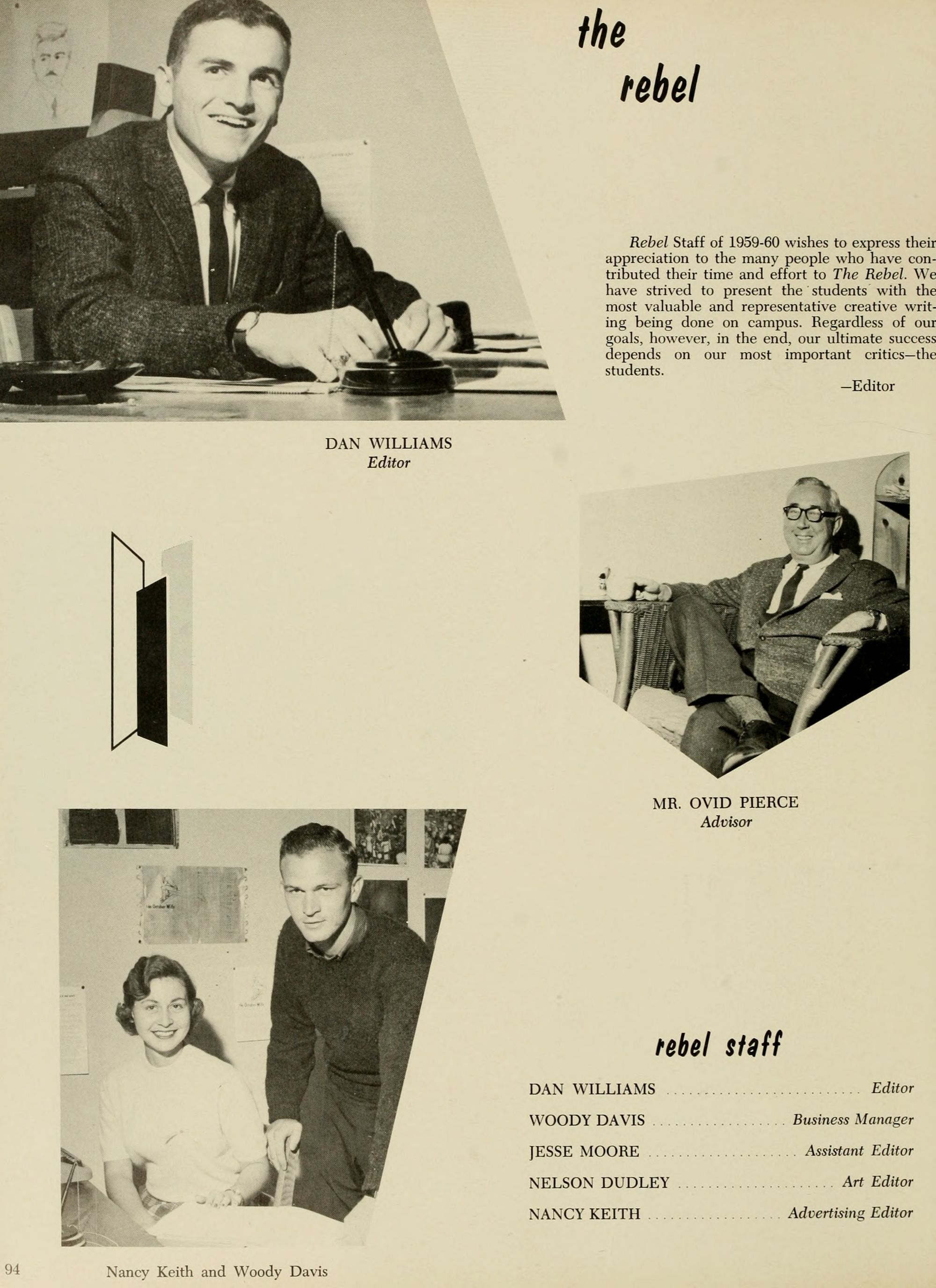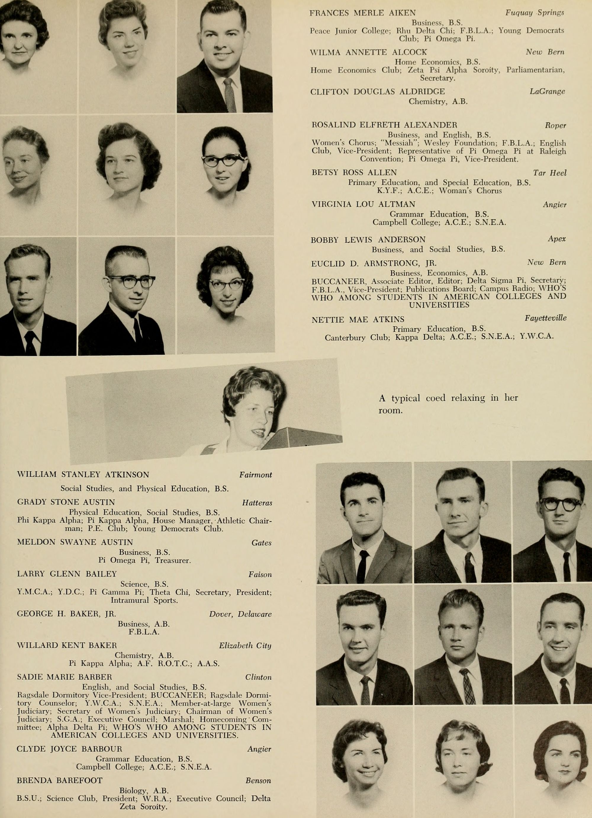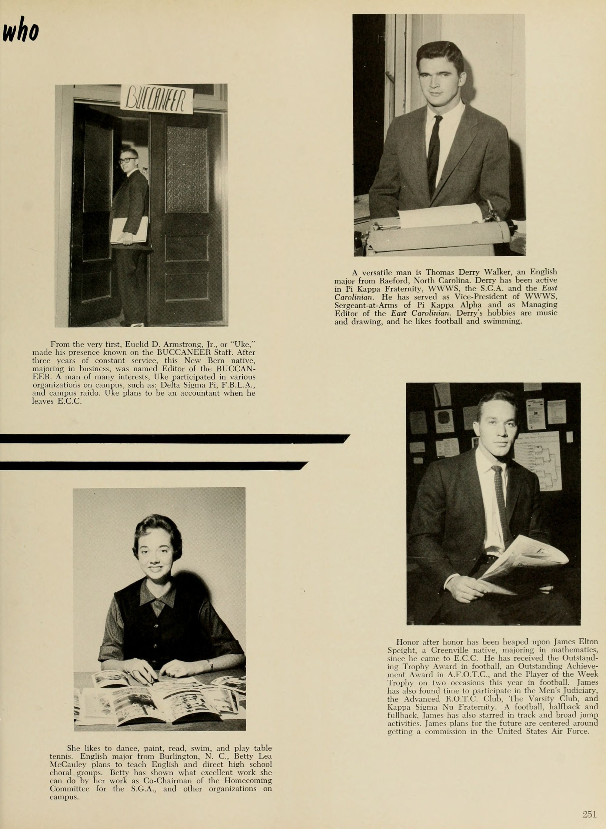 As a student photographer in 1959-1960 I took most of the candid photos in this edition of the Buccaneer.