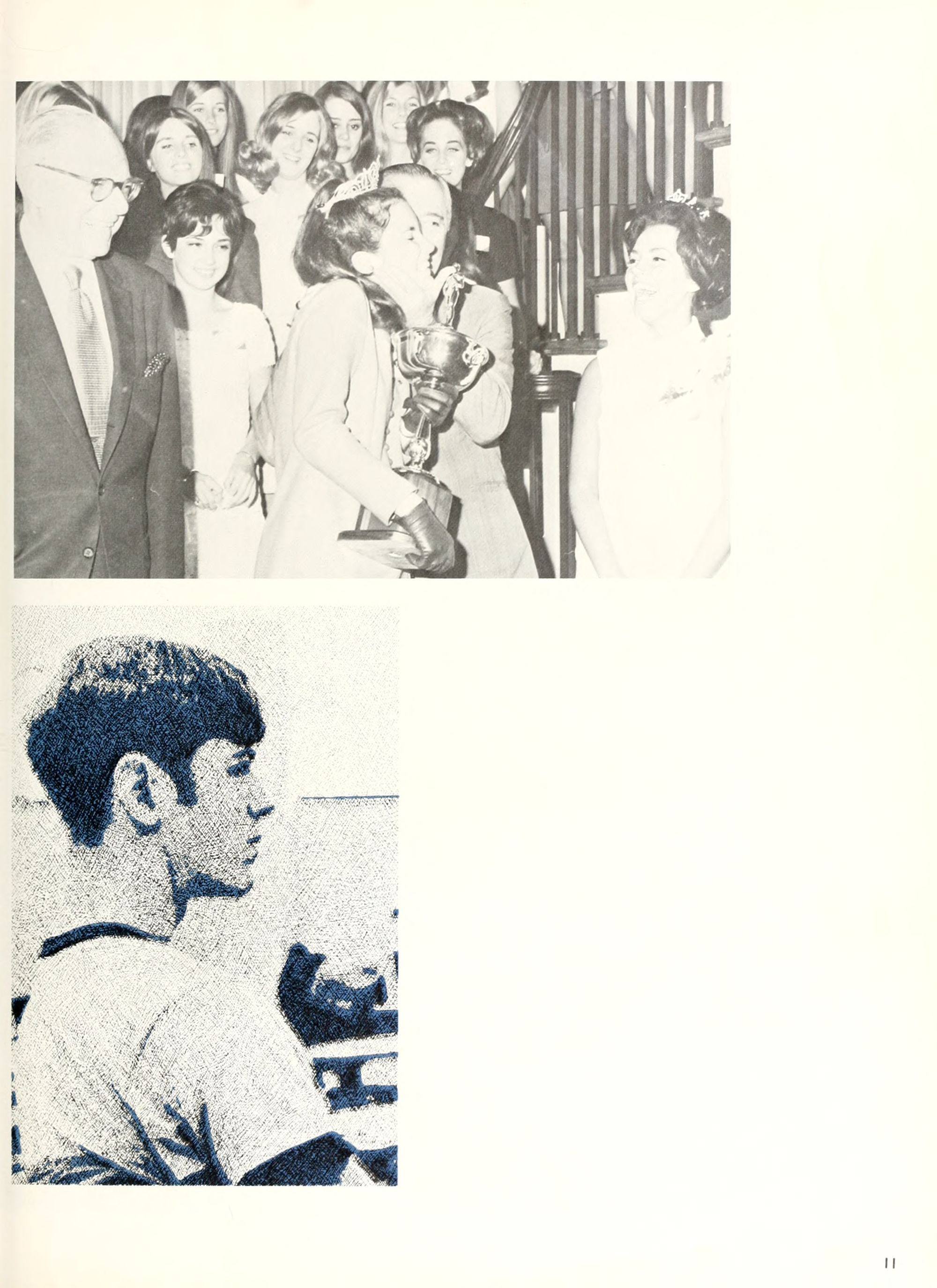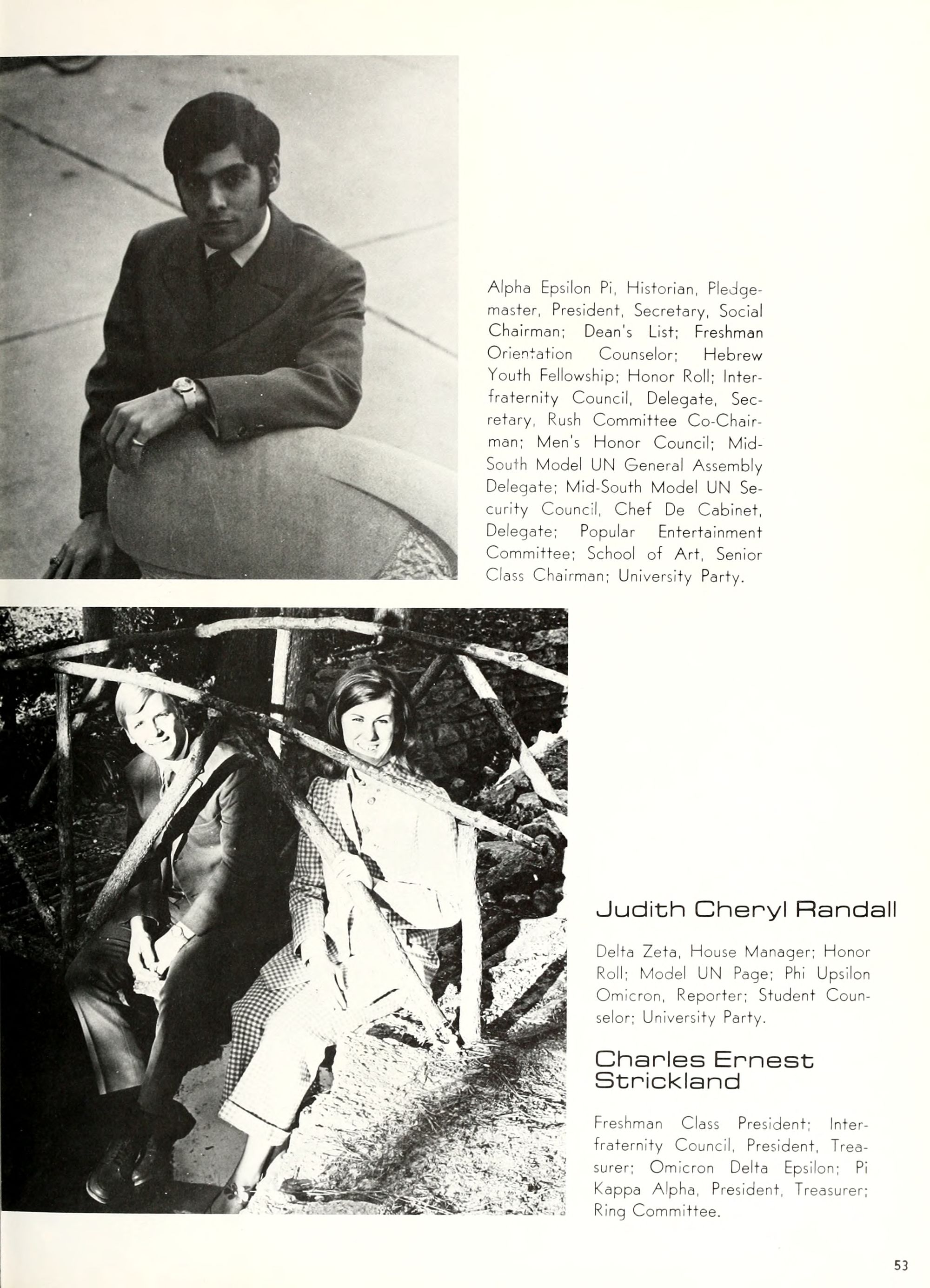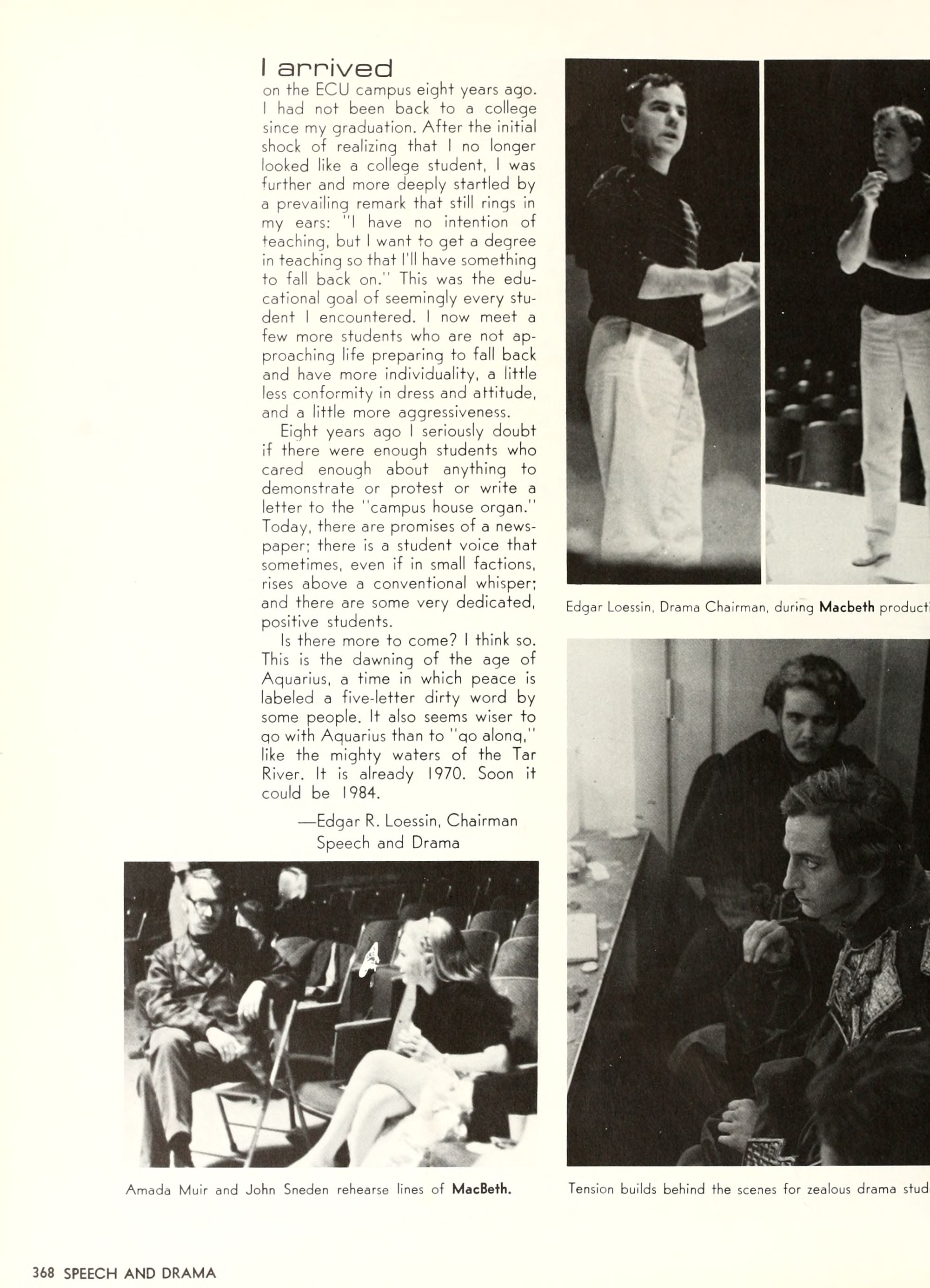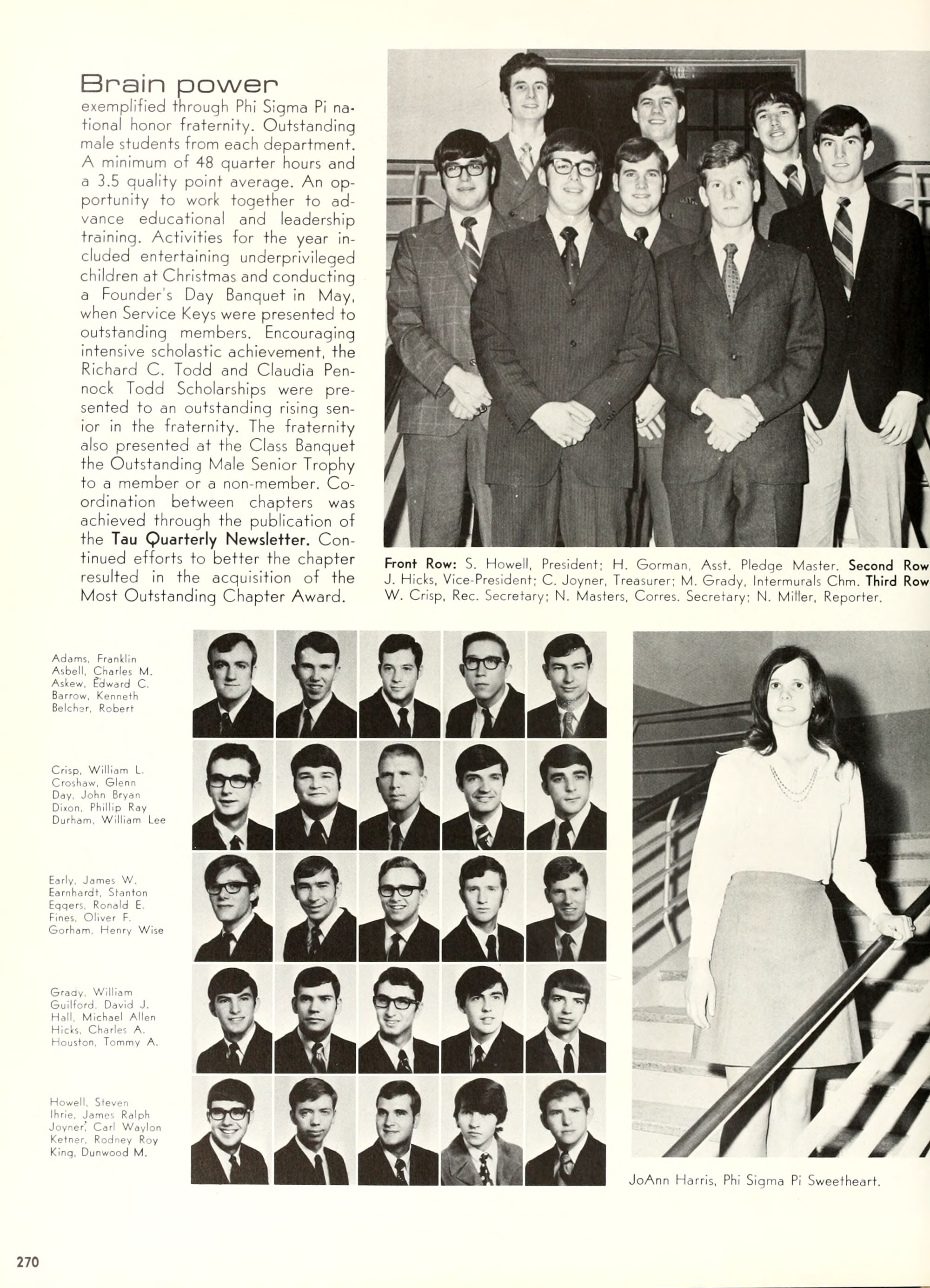 charming, and dynamic - these ad- jectives genuinely describe the Buc- caneer queen for 1970. A striking beauty from Arlington, Virginia, Diane Spry was selected from a field of thirty-two campus lovelies who were judged on personality, poise, and photogenic quality. Rep- resenting Alpha Phi sorority, the vi- vacious queen's post-graduation plans include membership either in VISTA or the Peace Corps. Diane, a sophomore history major, ex- plained, "I do not want to sit and watch the world go by; I want to help it along by helping people."