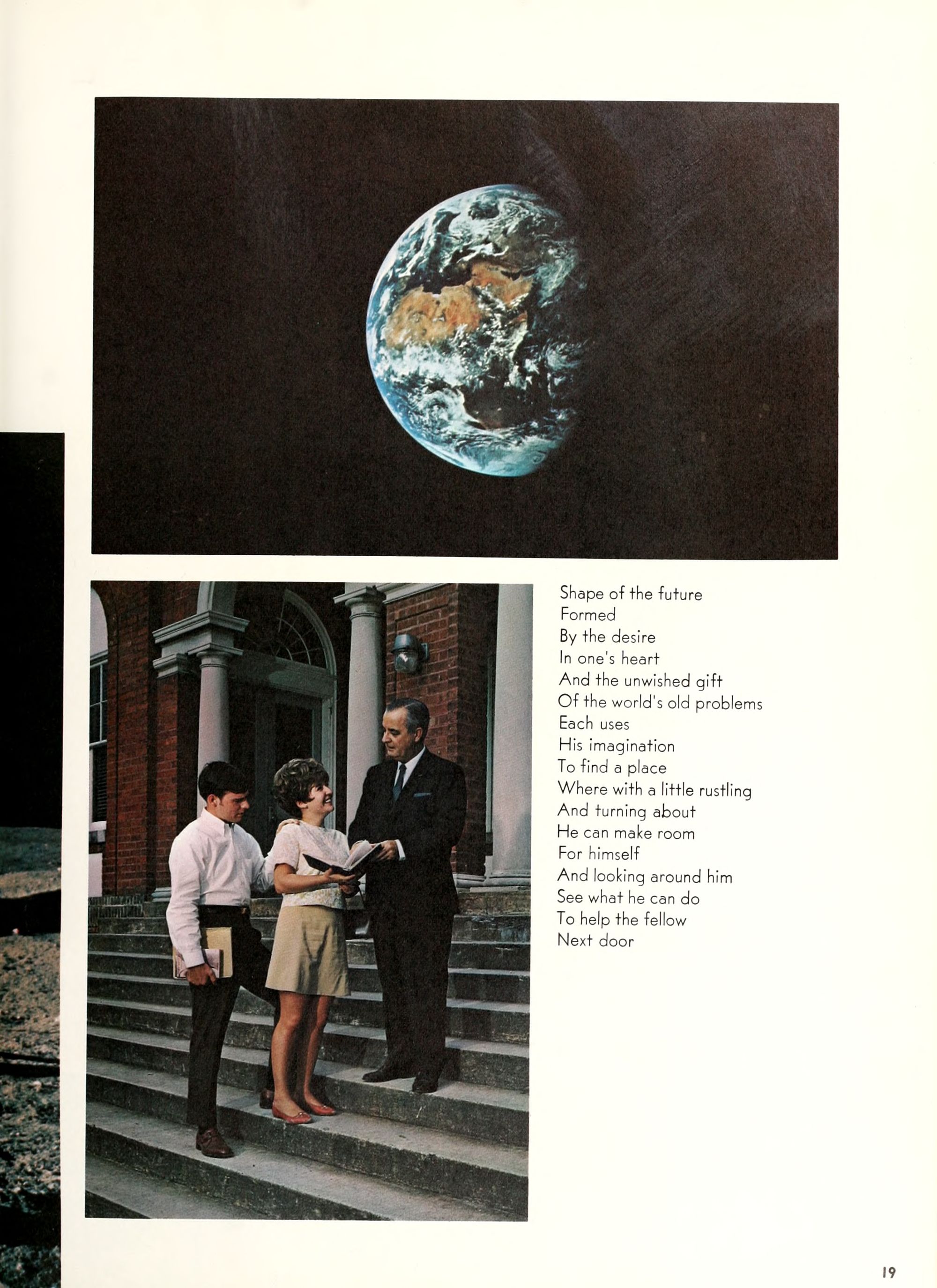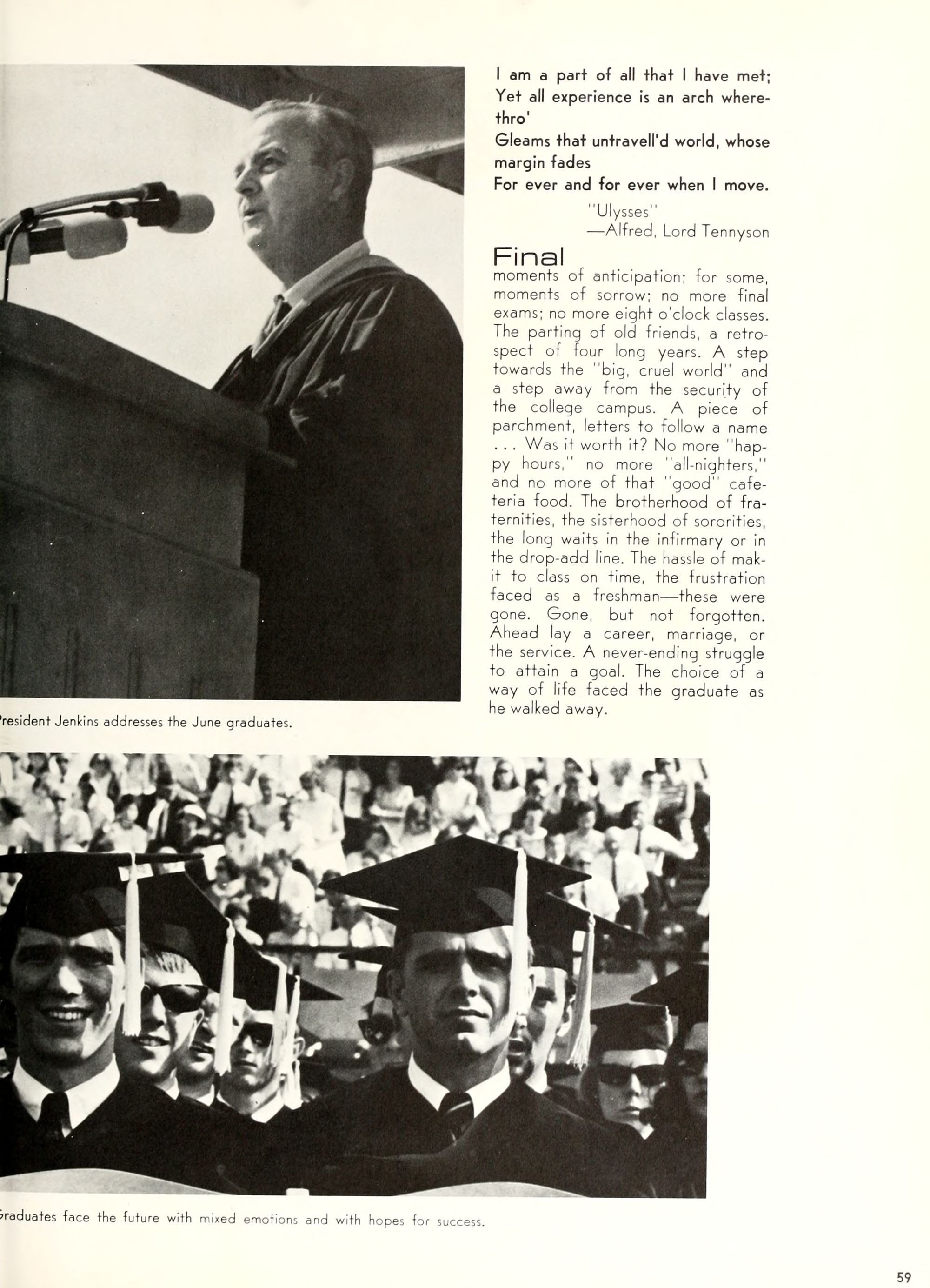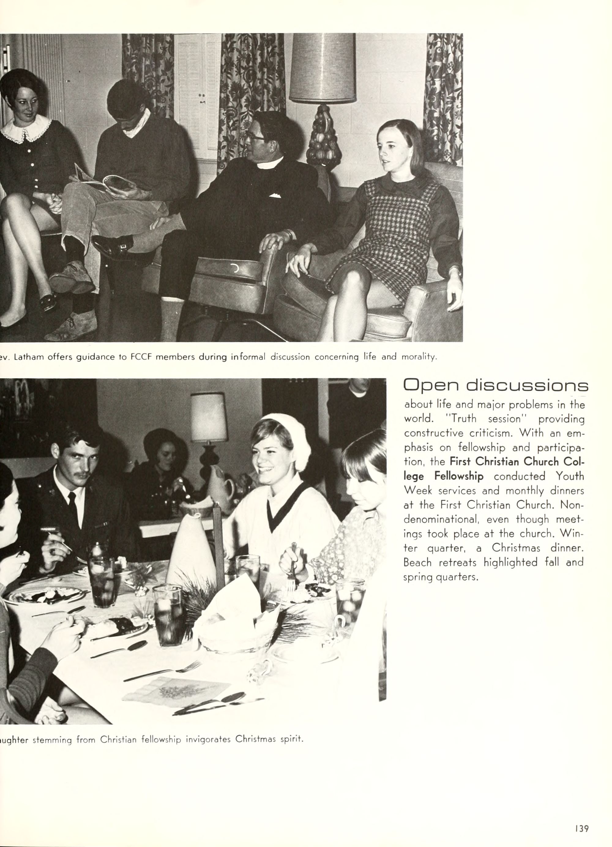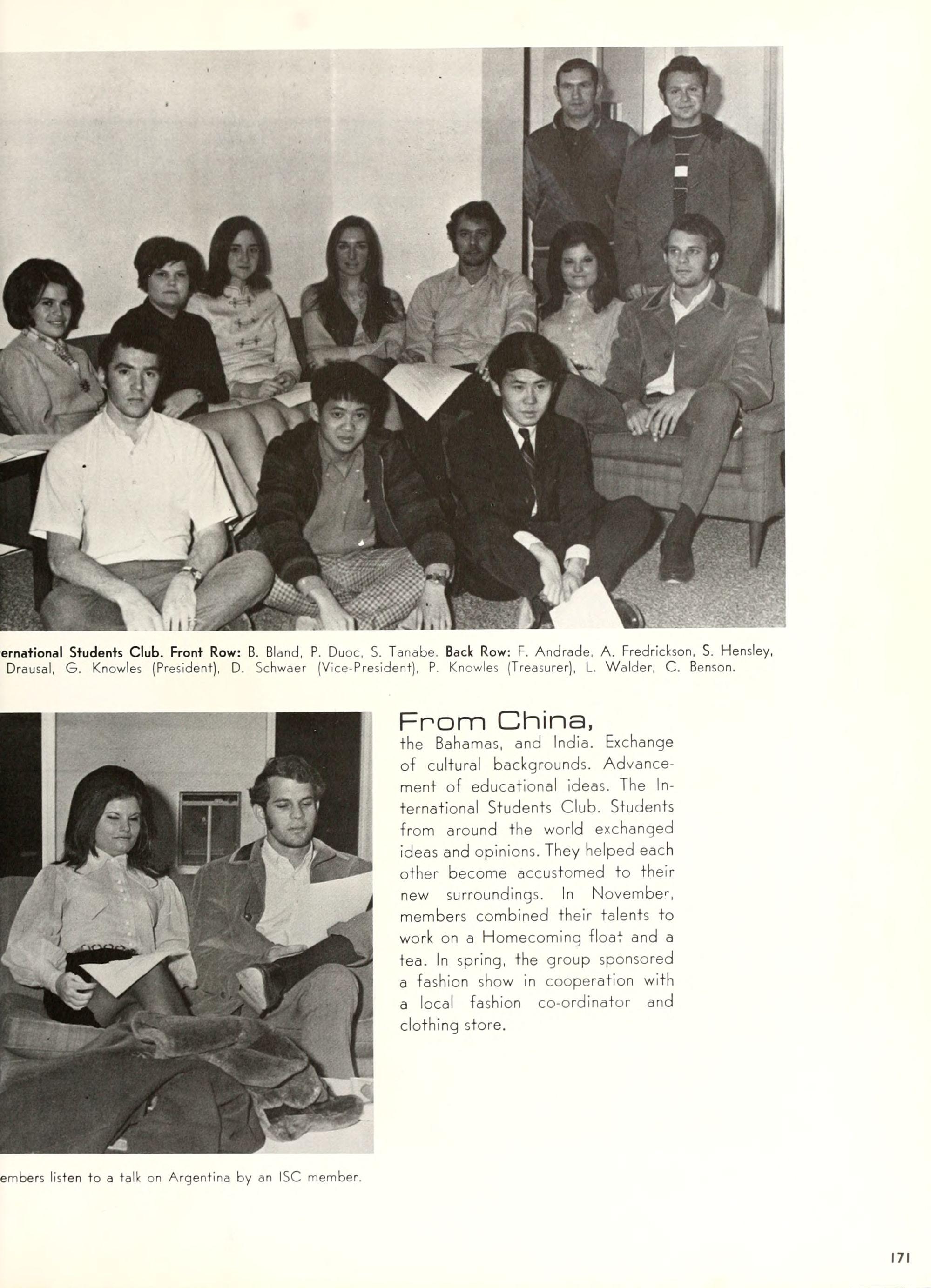 charming, and dynamic - these ad- jectives genuinely describe the Buc- caneer queen for 1970. A striking beauty from Arlington, Virginia, Diane Spry was selected from a field of thirty-two campus lovelies who were judged on personality, poise, and photogenic quality. Rep- resenting Alpha Phi sorority, the vi- vacious queen's post-graduation plans include membership either in VISTA or the Peace Corps. Diane, a sophomore history major, ex- plained, "I do not want to sit and watch the world go by; I want to help it along by helping people."