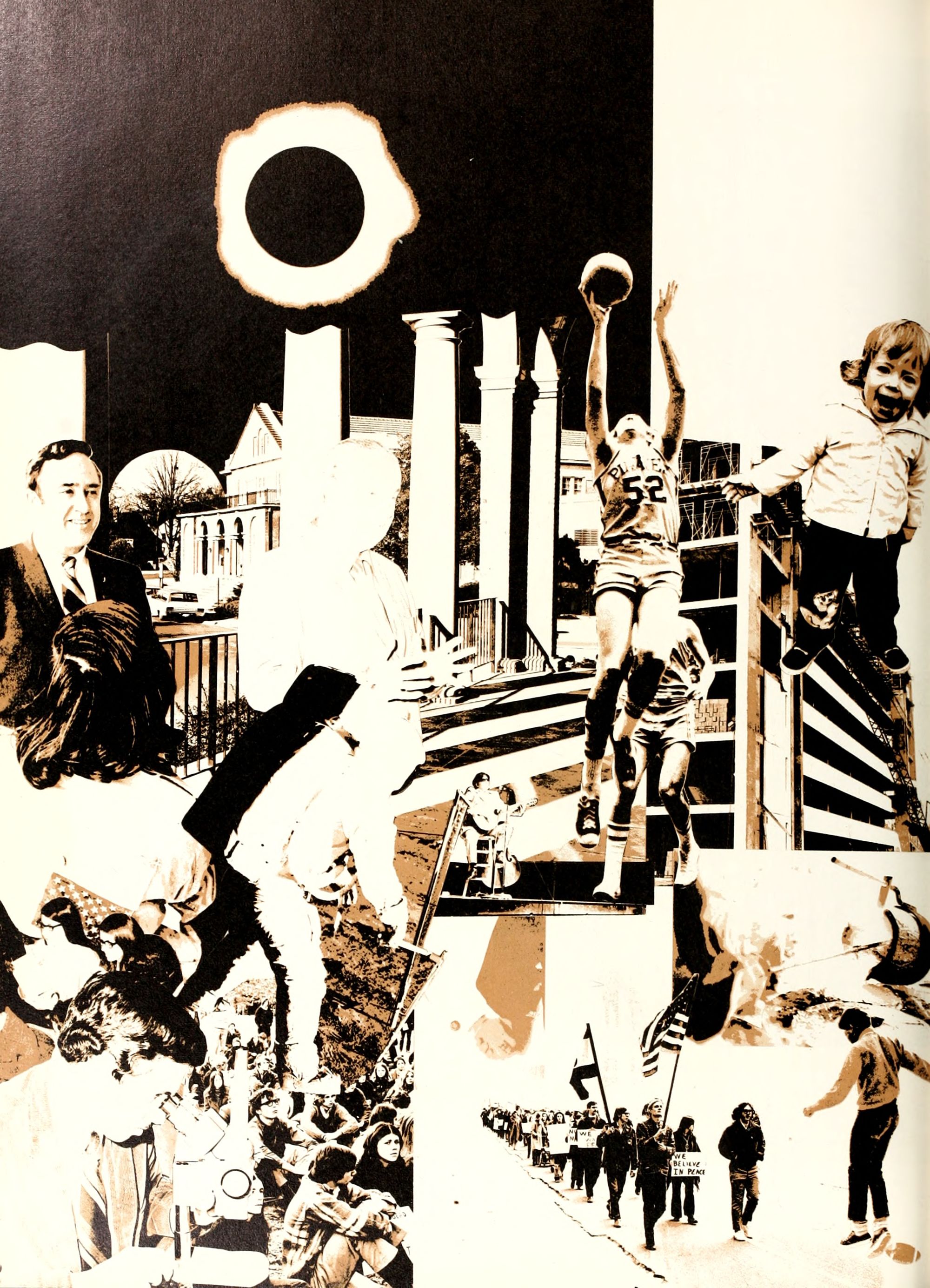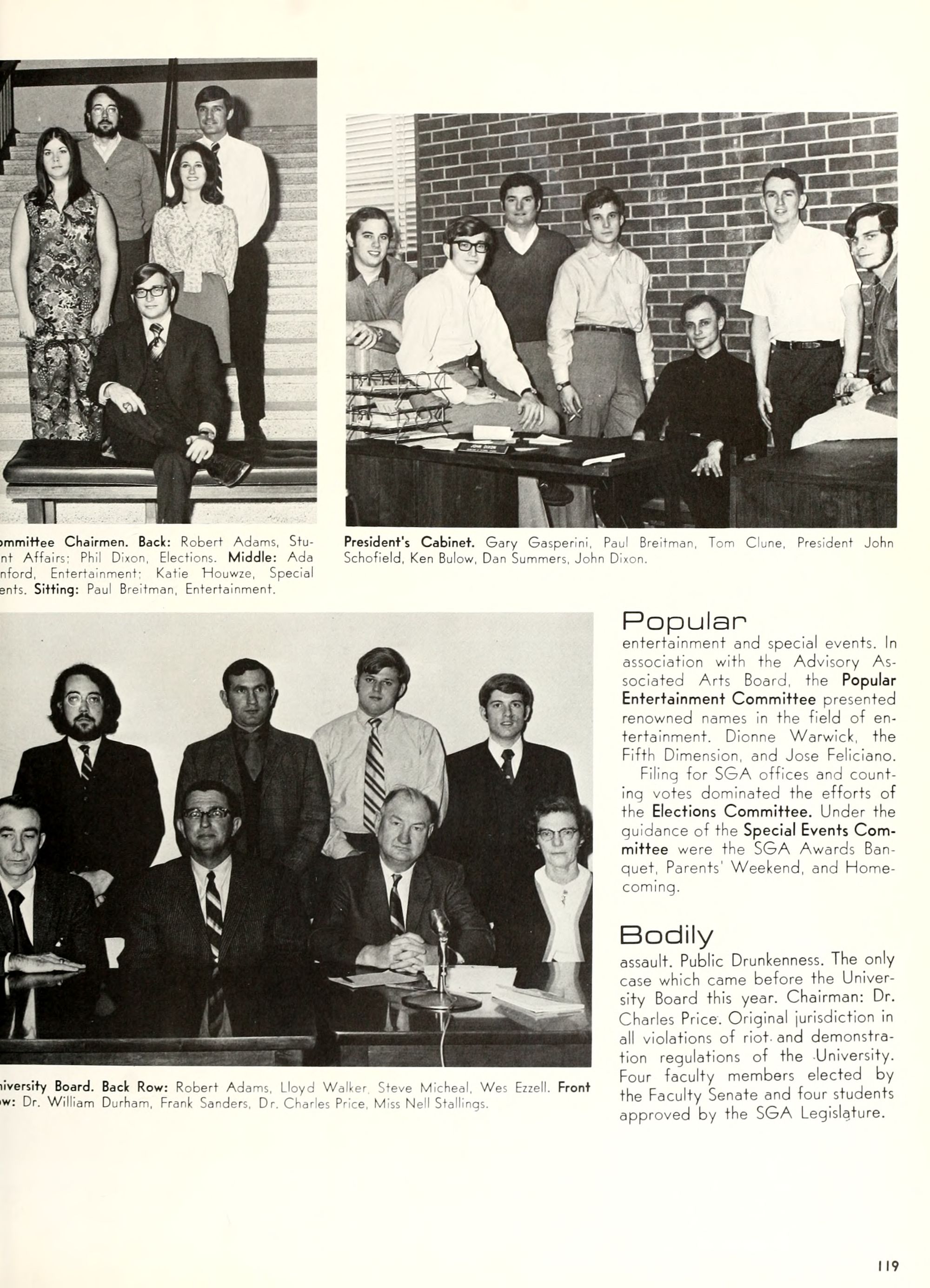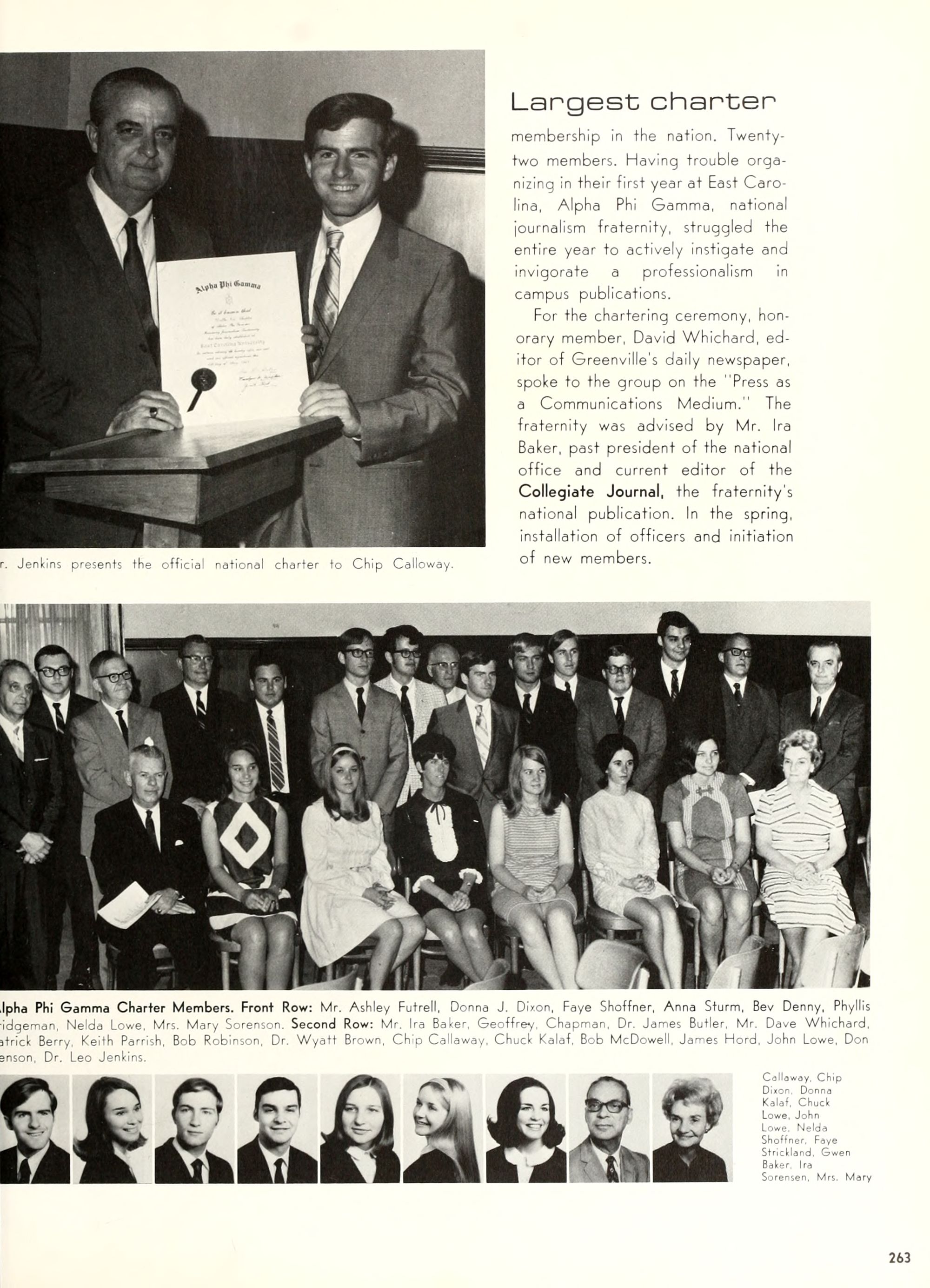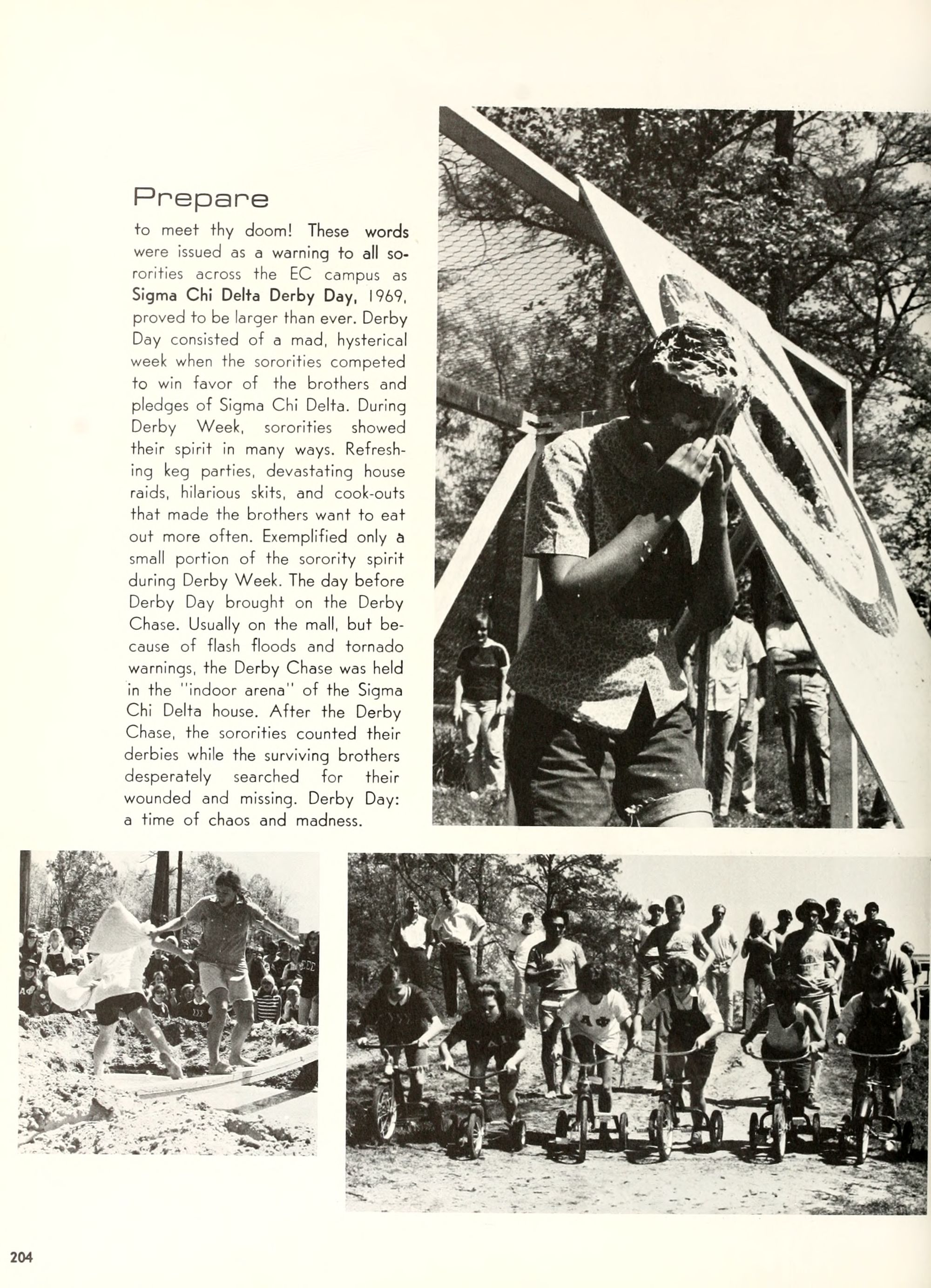 Donald Duck, and Goofy. Plenty of sunshine, color, and happiness. Empty bottles of "Rebel Yell" and "Seagram's 7." hHome- coming, requiring hundreds of hours of dedi- cated preparation, provided ECU with a spectacle of color and enthusiasm unparal- leled by any previous campus event. Con- certs by Dionne Warwick and The Fifth Dimension overwhelmed more than 8,000 students and guests who literally packed in- to Minges Coliseum. Even when the David- son Wildcats came from behind to defeat the Pirates, enthusiasm remained high. Pin- nochio, Dumbo, Jiminy Cricket, and a host of other Disney characters transformed "Greater Groovy Greenville" into a fan- tasyland of animation. An endless array of sorority and fraternity house decorations stimulated the Imagination of everyone from six to sixty, hlomecoming 1970 proved the world a "carousel of color."
