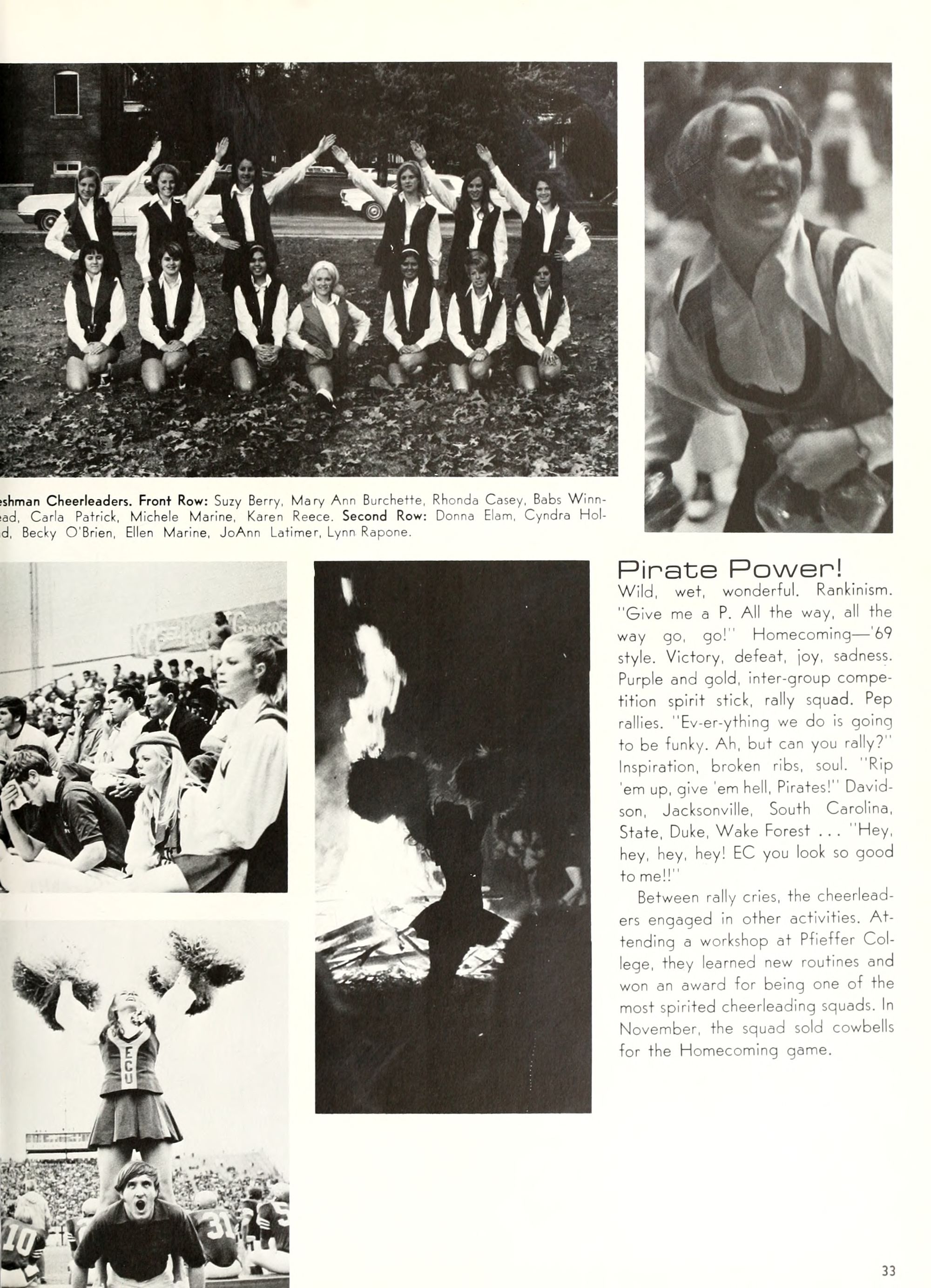 A cheerleader, a bonfire . . . both spark school spirit . . . both fire enthusiastic support before the Davidson game