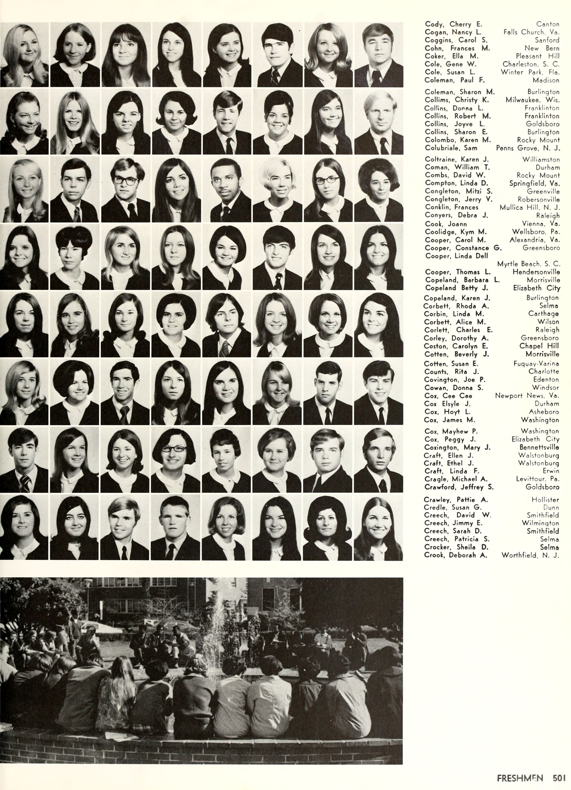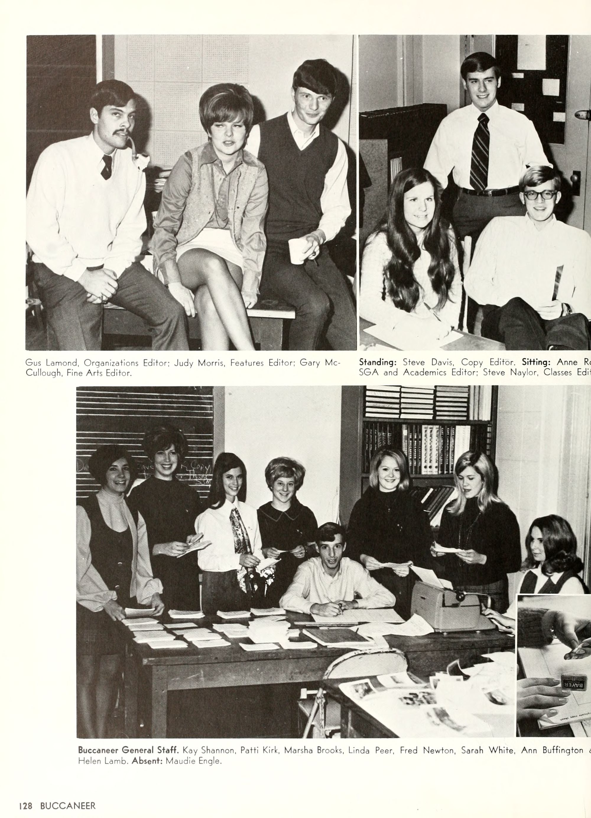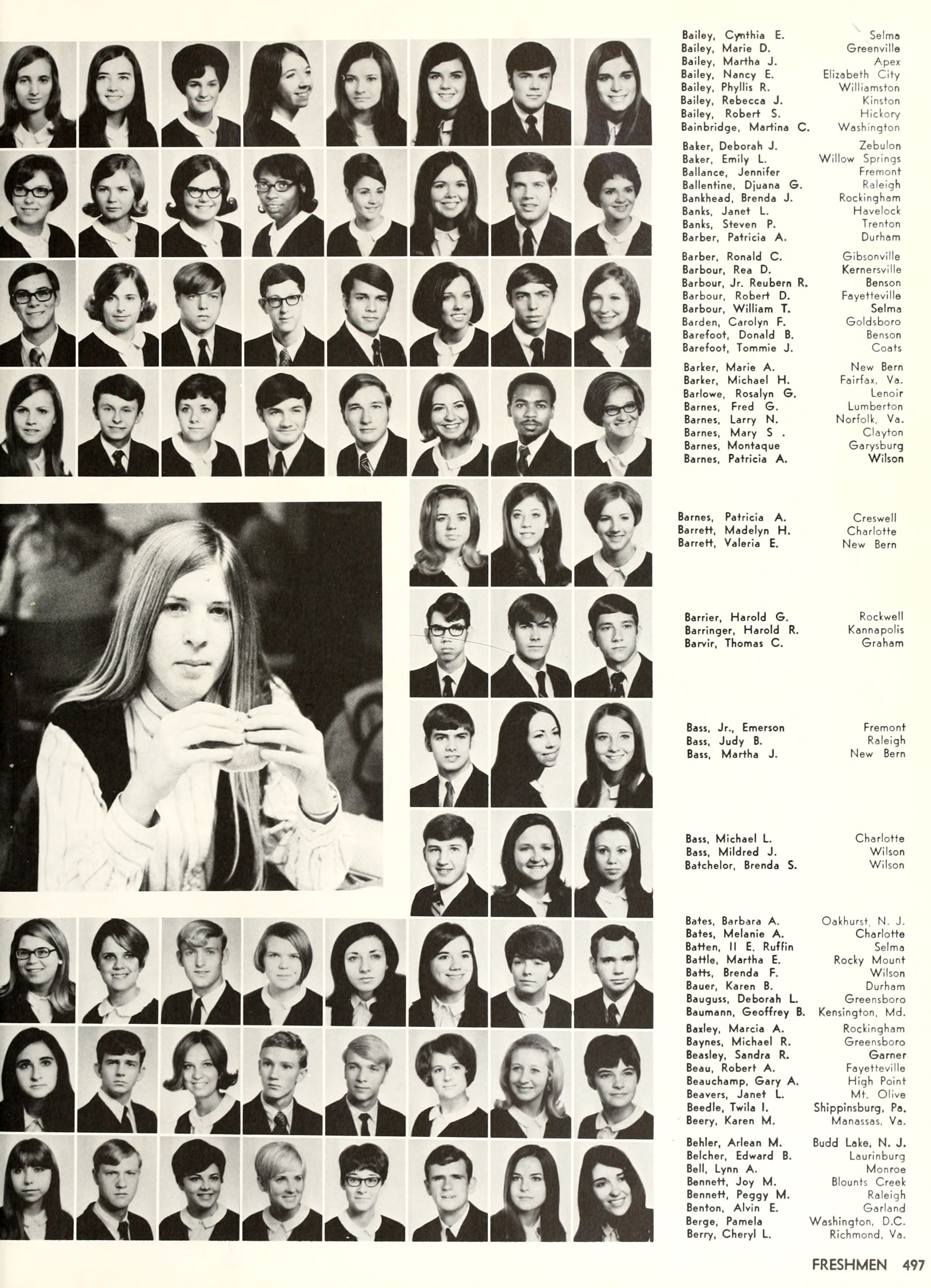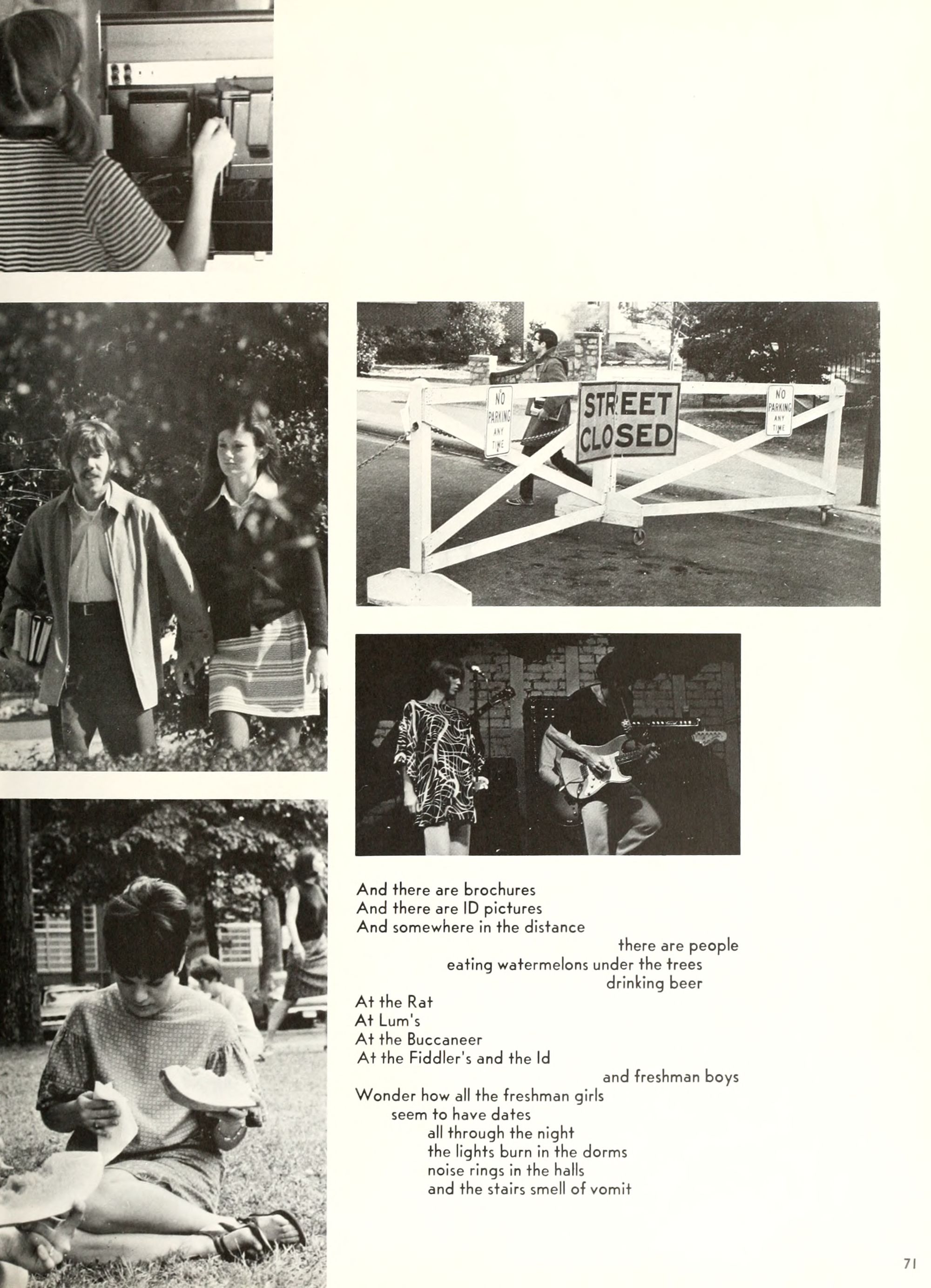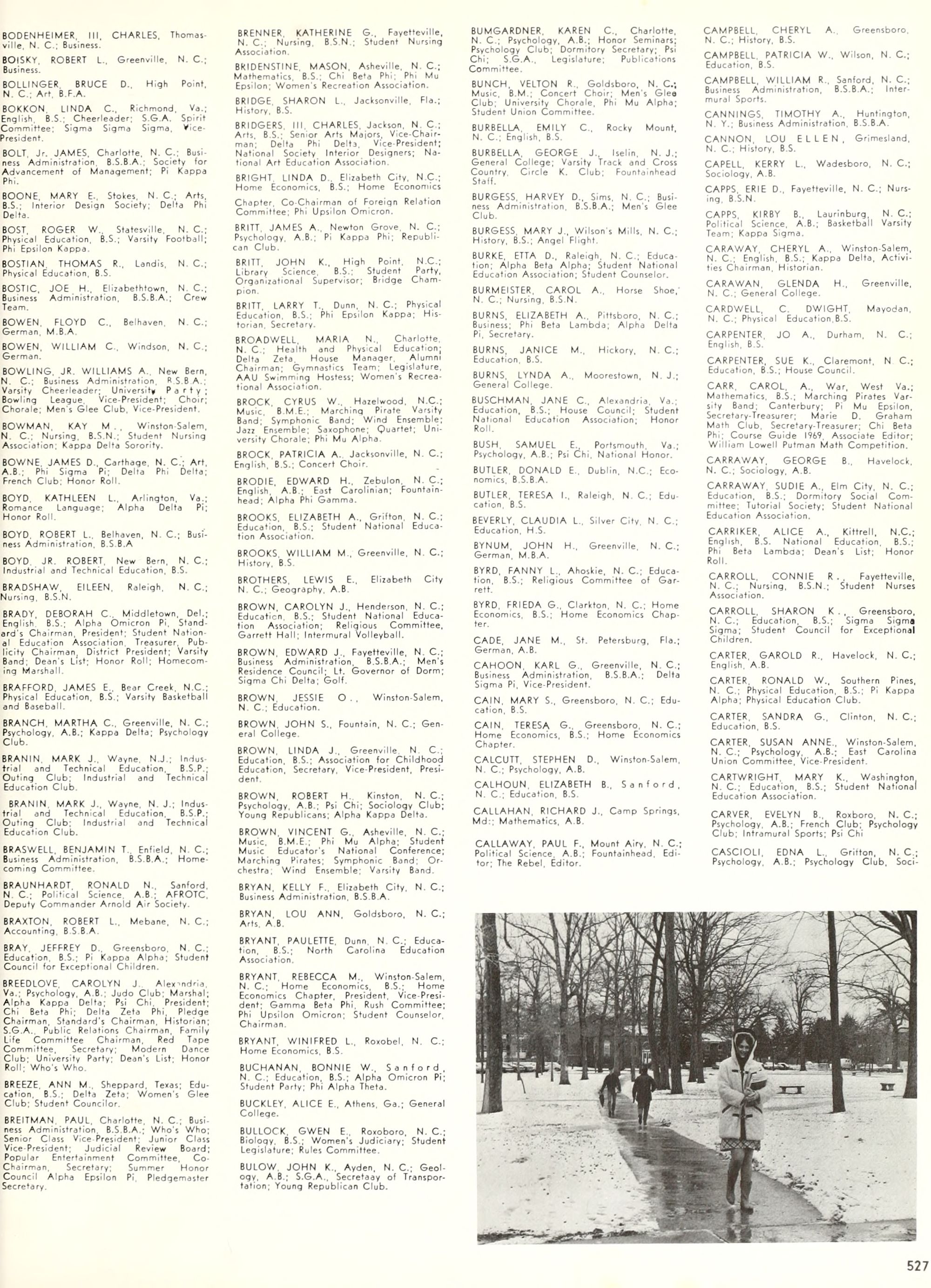 the car wreck on page 508 of the 1970 buccaneer is my mother's fault. she was driving the station wagon that hit the beetle and shoved it into the other car. she always blamed it on me. i was a little over 2 at the time. she said i started to fall over, because i was standing on the front seat, and she reached over to get me, causing her foot to come off the brake. it is family lore. she went on to teach dance at ecu for years. my dad was called out of work that day.