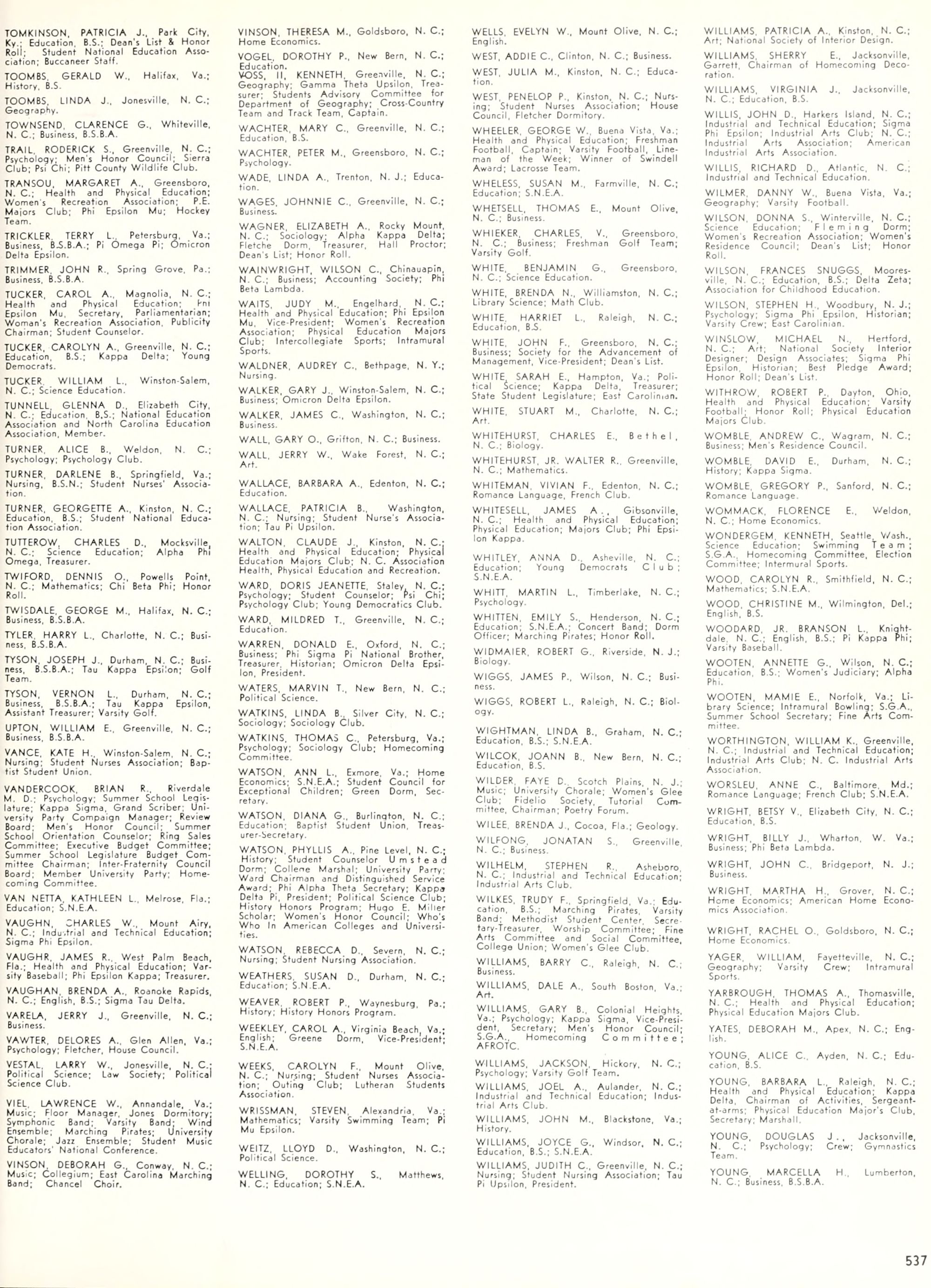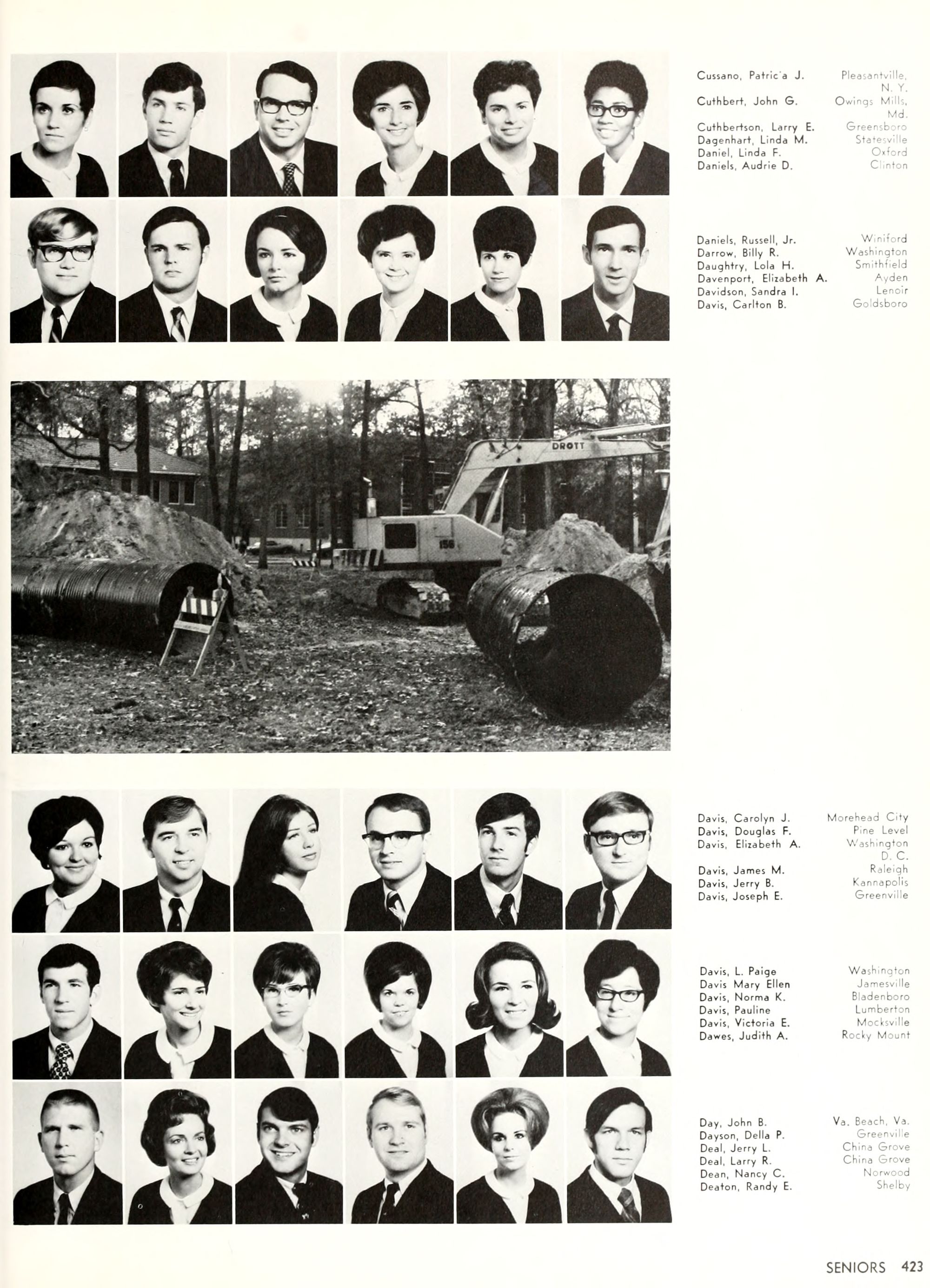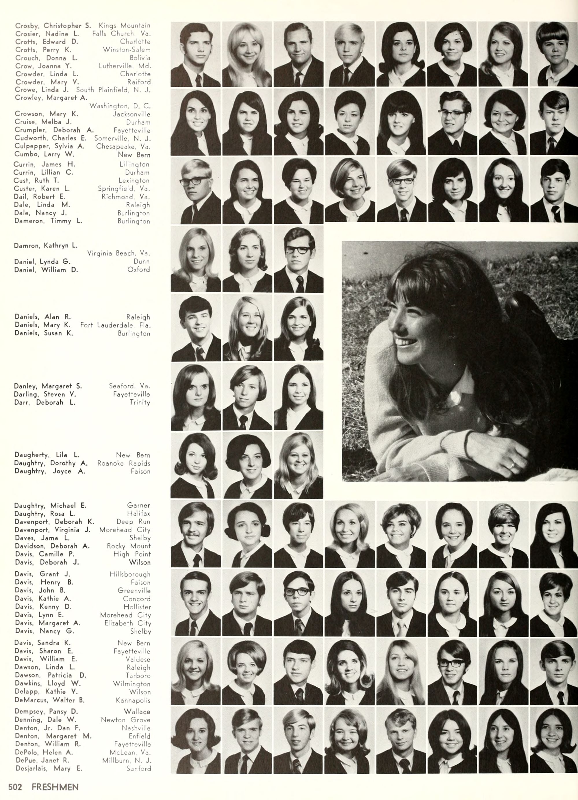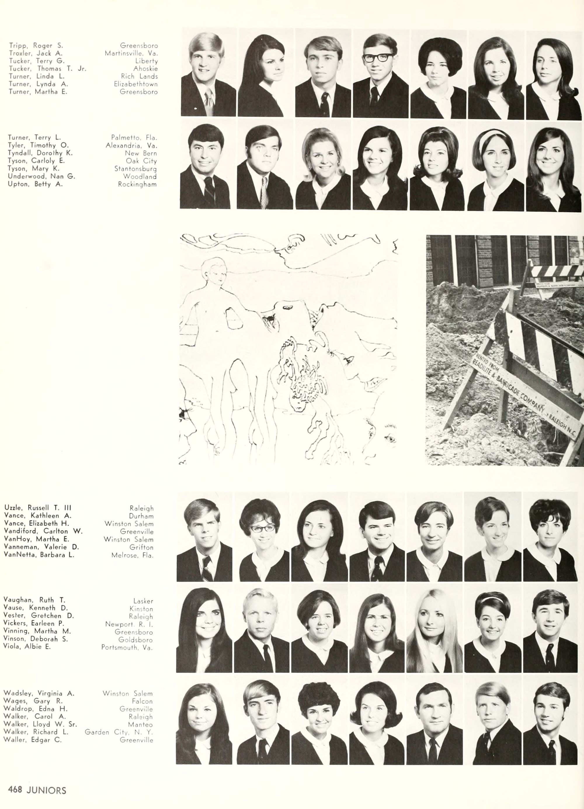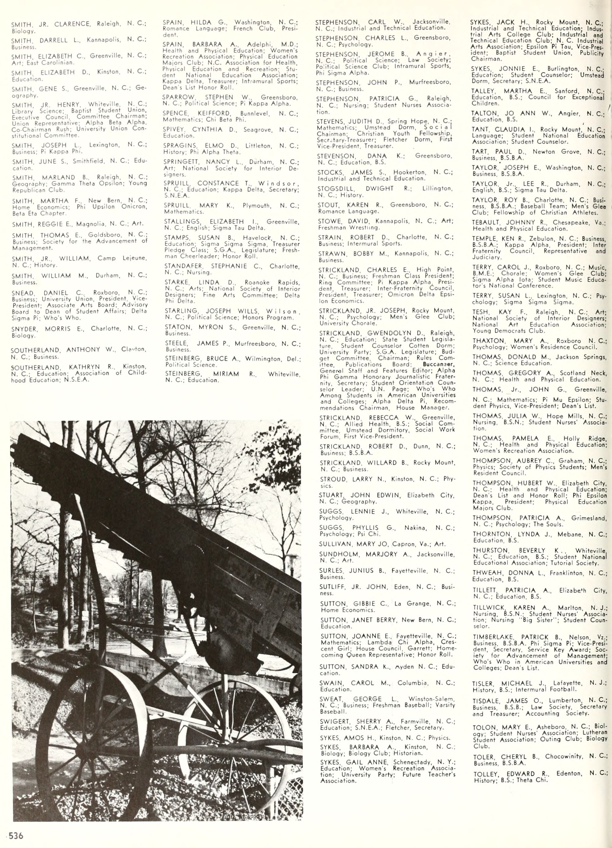 the car wreck on page 508 of the 1970 buccaneer is my mother's fault. she was driving the station wagon that hit the beetle and shoved it into the other car. she always blamed it on me. i was a little over 2 at the time. she said i started to fall over, because i was standing on the front seat, and she reached over to get me, causing her foot to come off the brake. it is family lore. she went on to teach dance at ecu for years. my dad was called out of work that day.