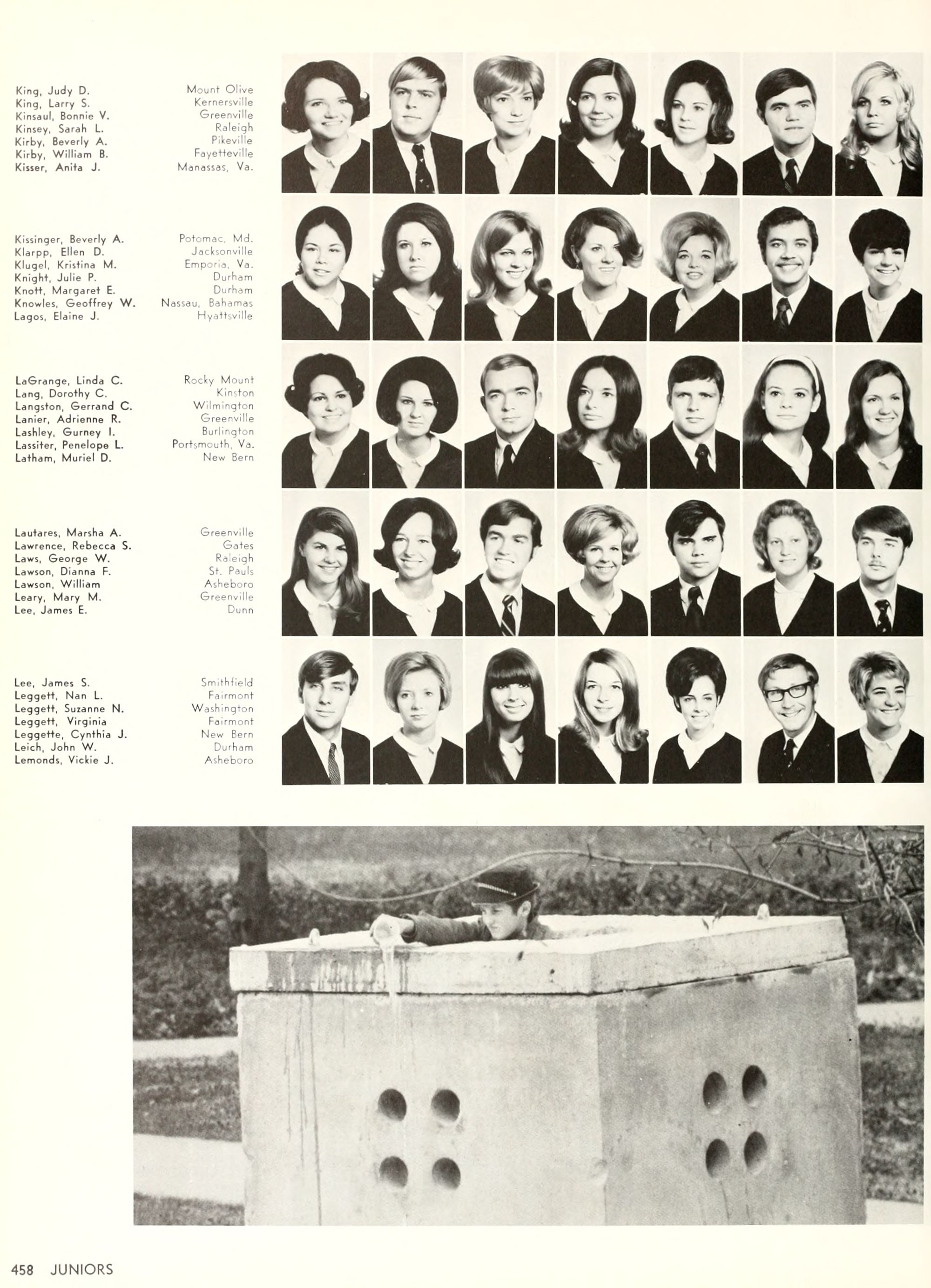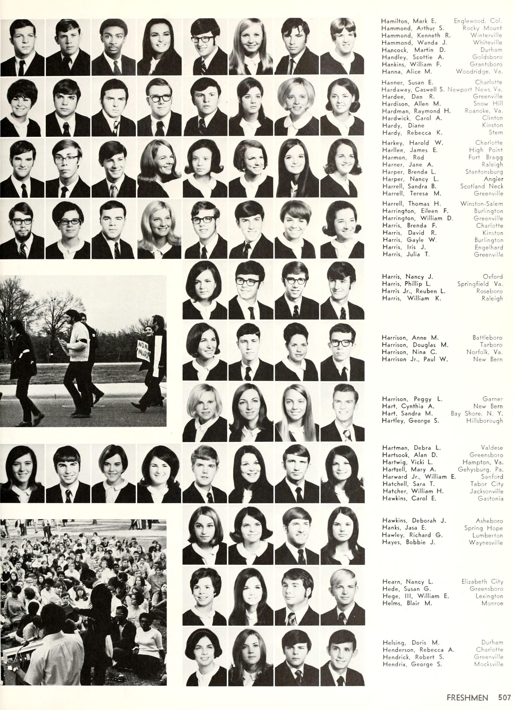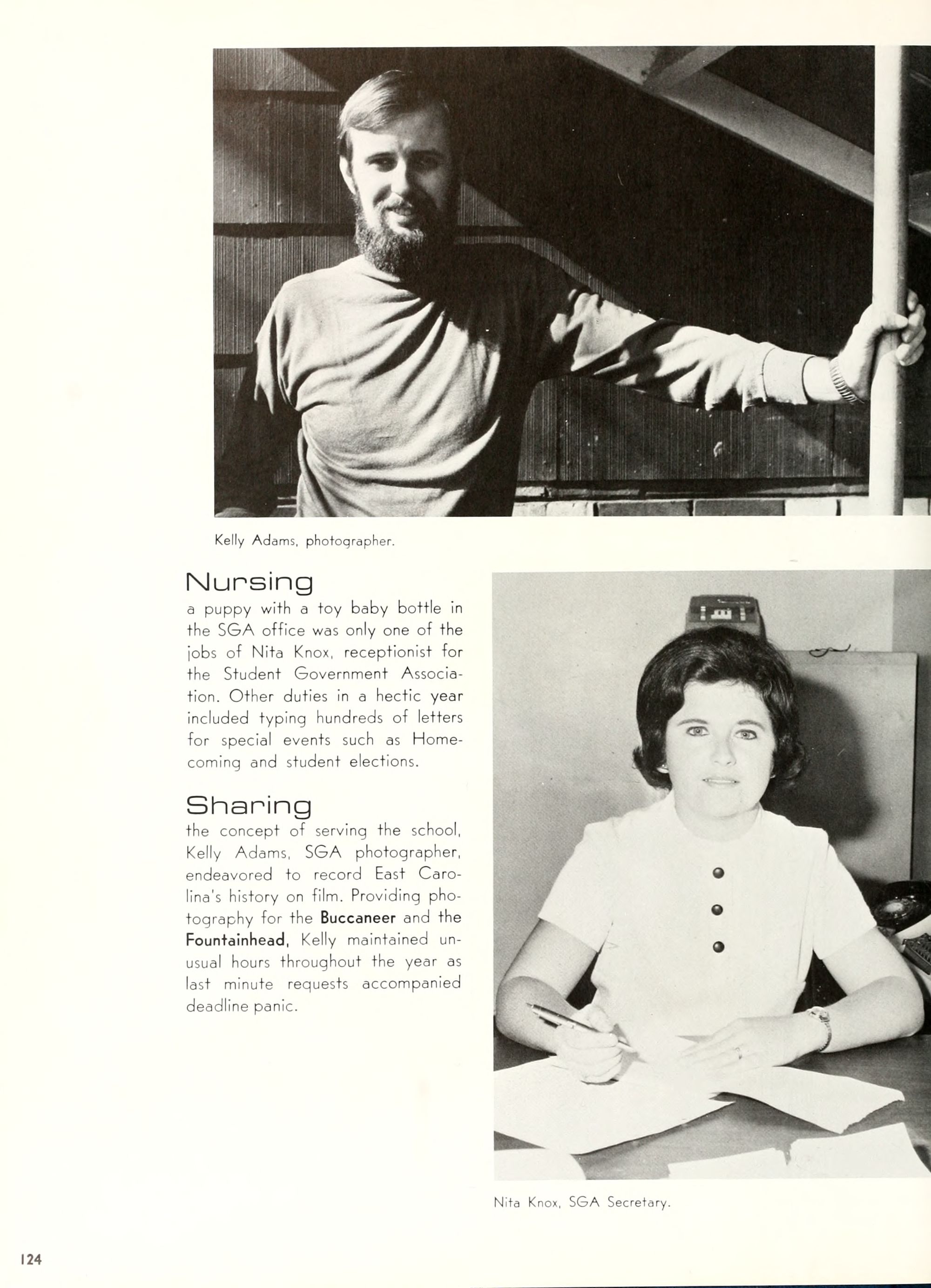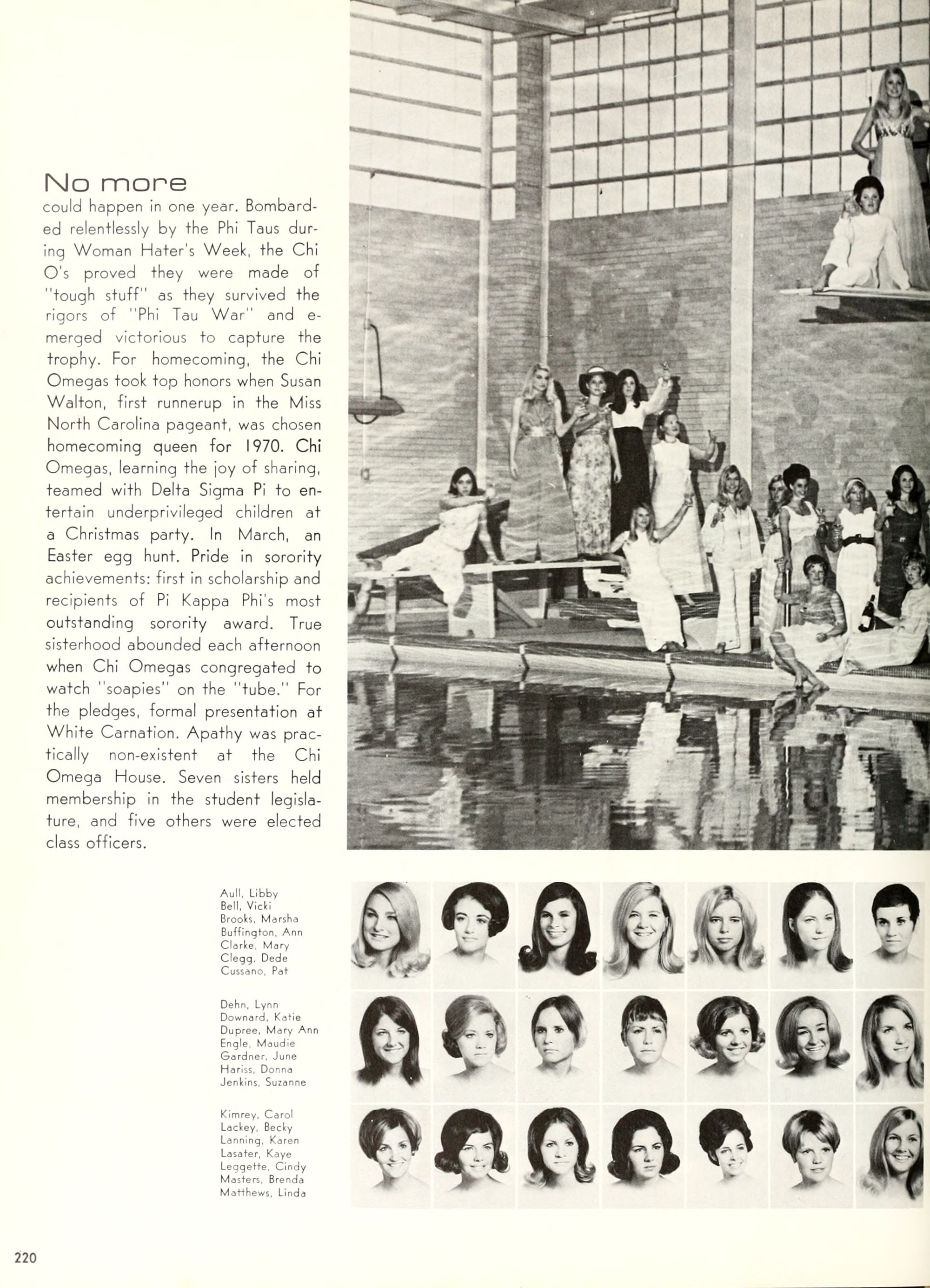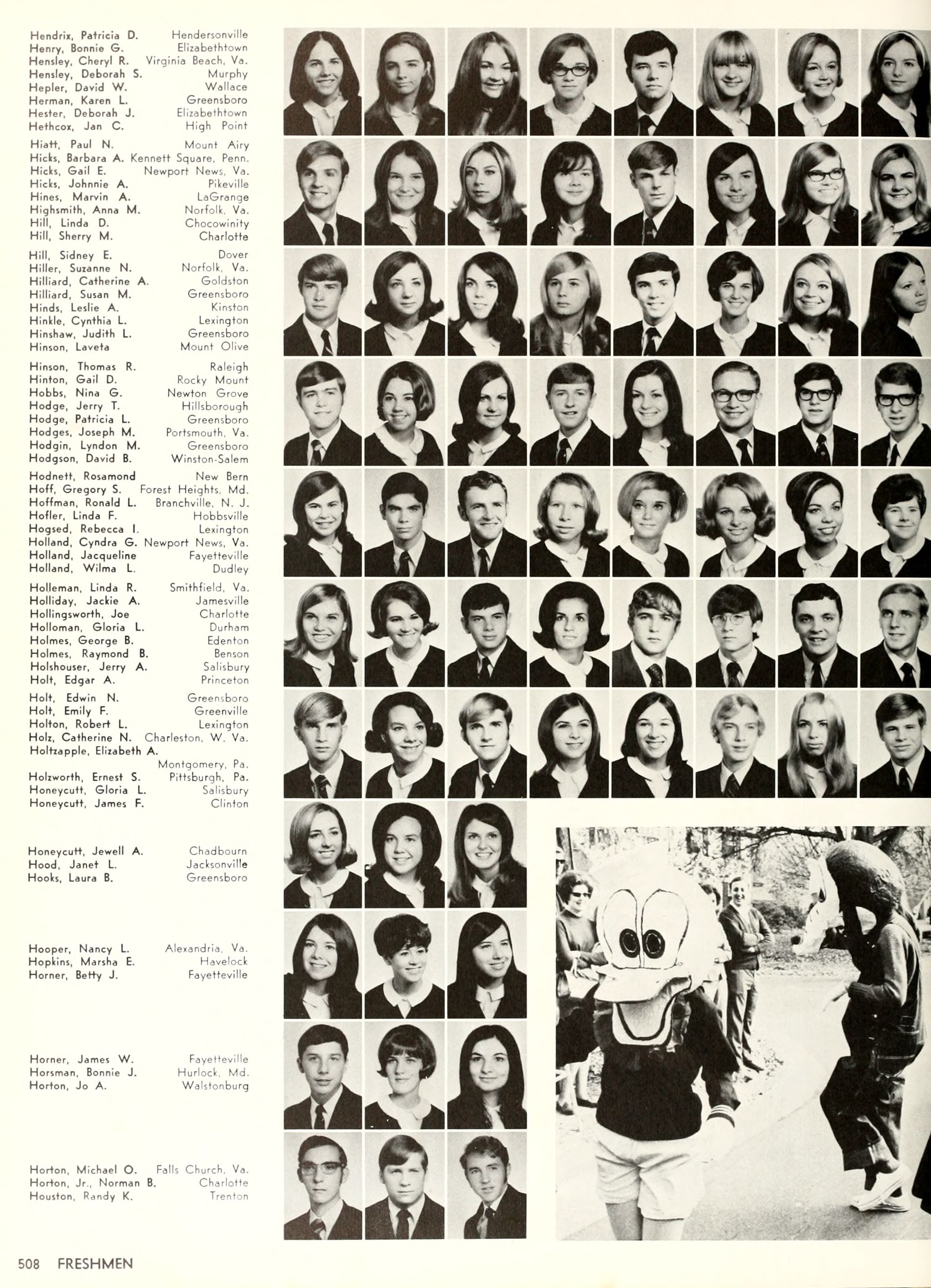 the car wreck on page 508 of the 1970 buccaneer is my mother's fault. she was driving the station wagon that hit the beetle and shoved it into the other car. she always blamed it on me. i was a little over 2 at the time. she said i started to fall over, because i was standing on the front seat, and she reached over to get me, causing her foot to come off the brake. it is family lore. she went on to teach dance at ecu for years. my dad was called out of work that day.