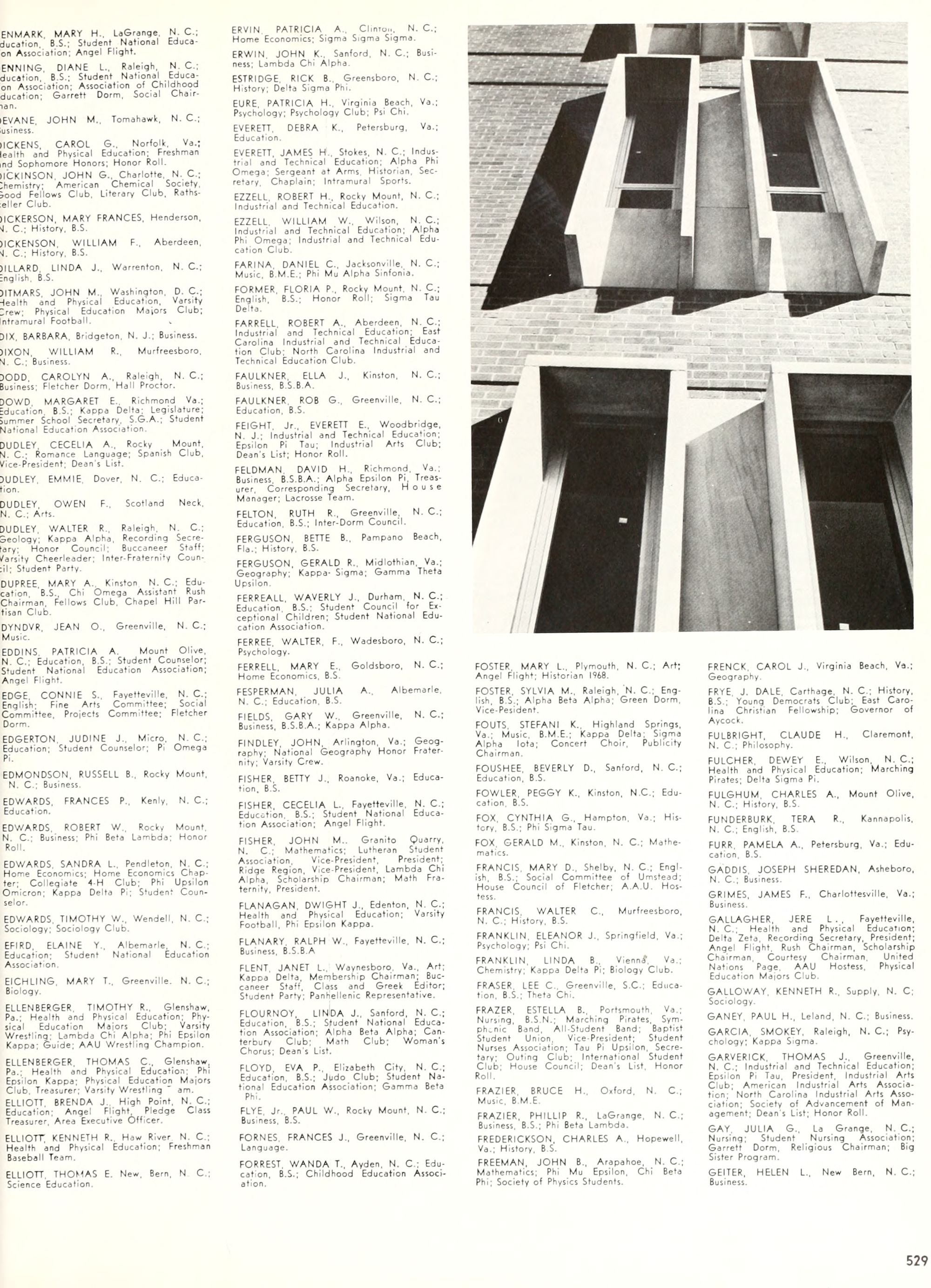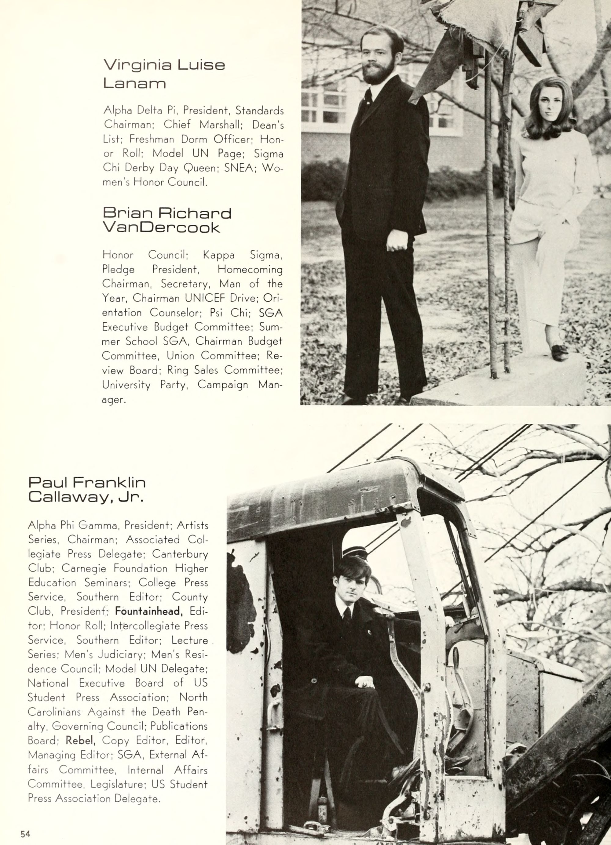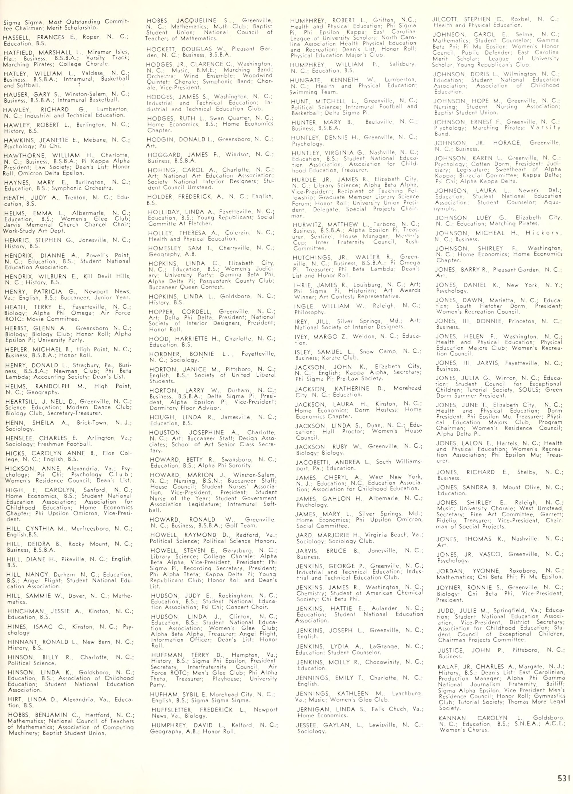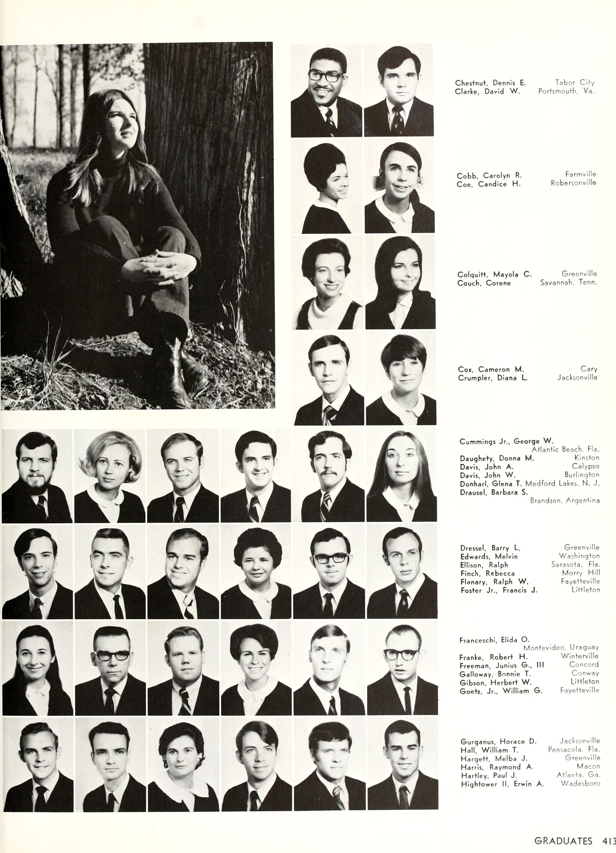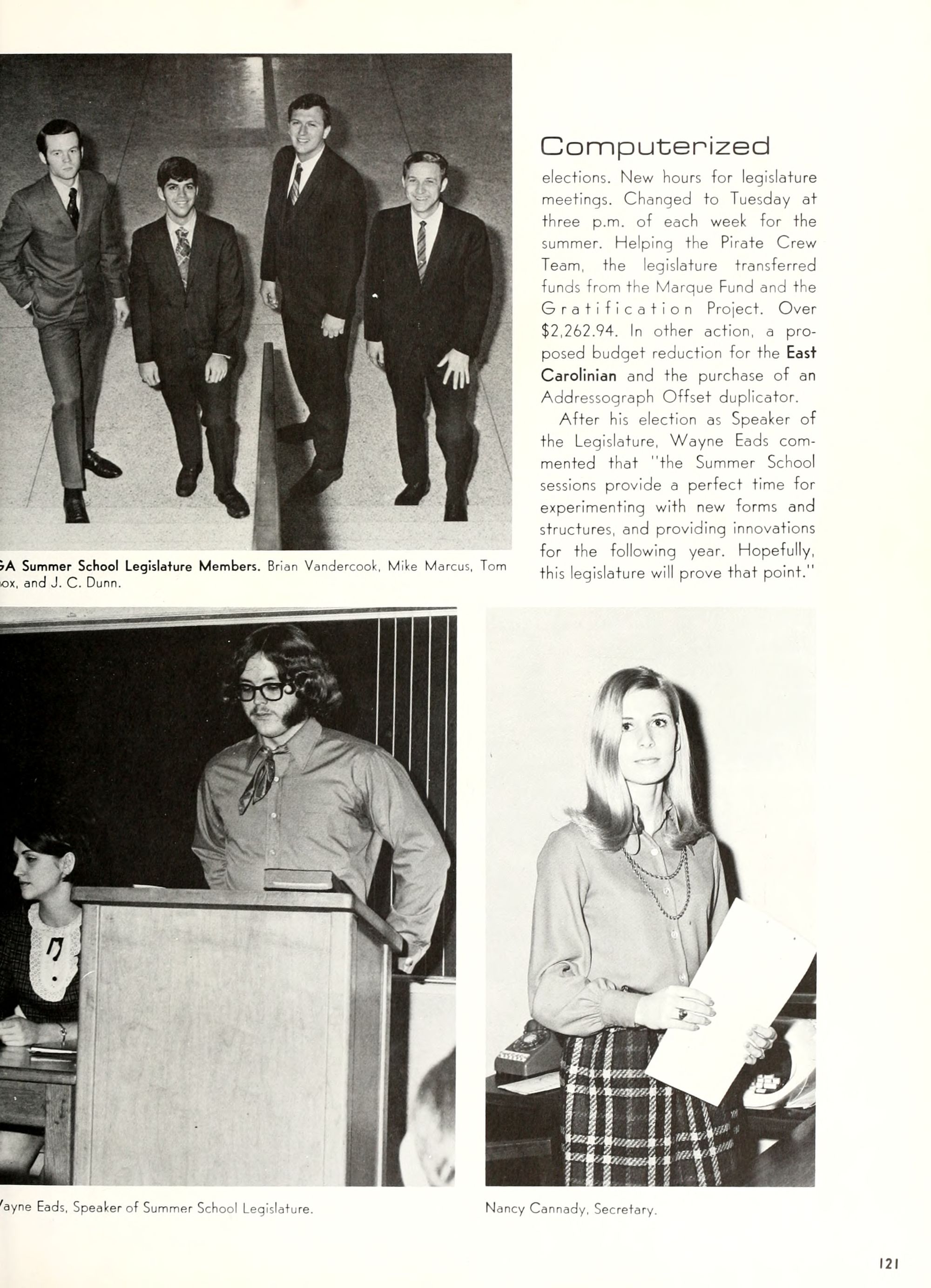 the car wreck on page 508 of the 1970 buccaneer is my mother's fault. she was driving the station wagon that hit the beetle and shoved it into the other car. she always blamed it on me. i was a little over 2 at the time. she said i started to fall over, because i was standing on the front seat, and she reached over to get me, causing her foot to come off the brake. it is family lore. she went on to teach dance at ecu for years. my dad was called out of work that day.