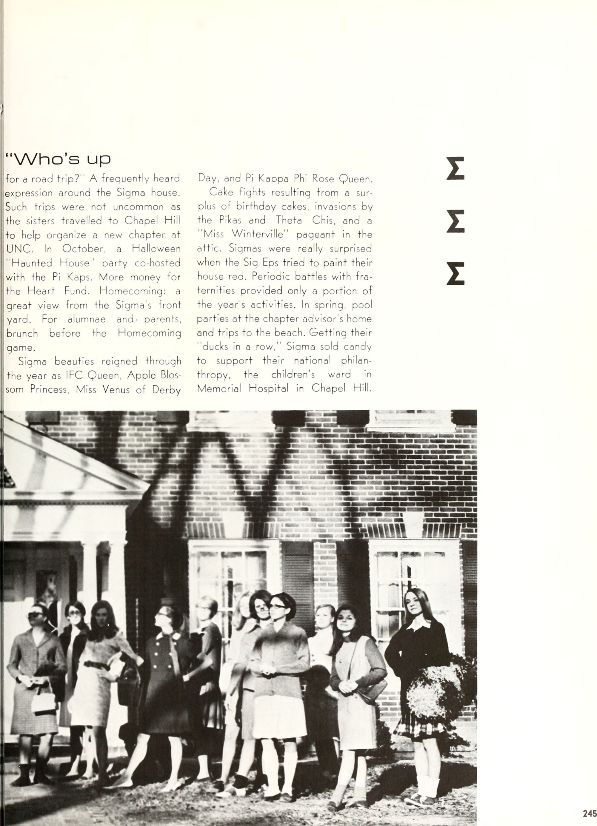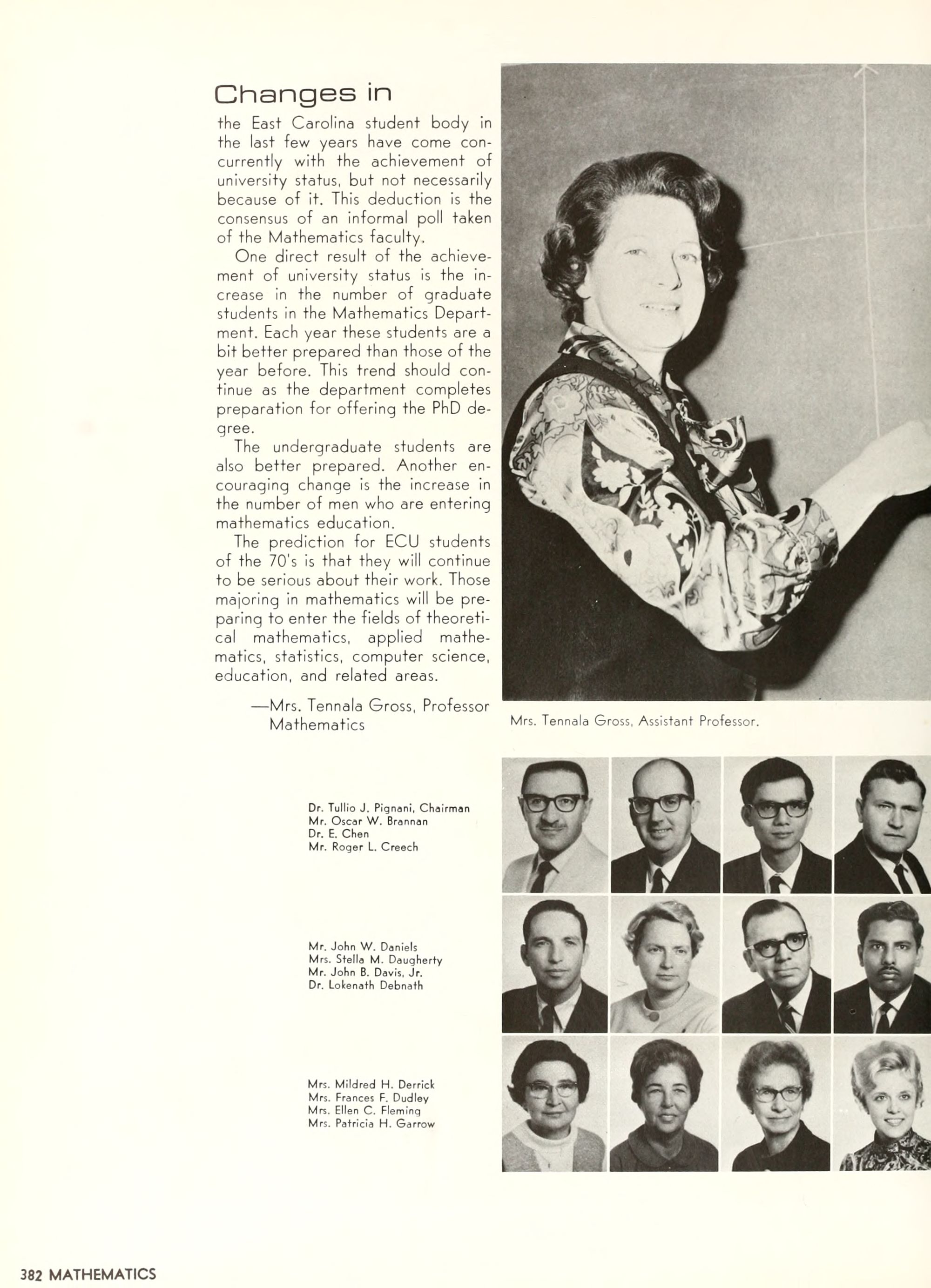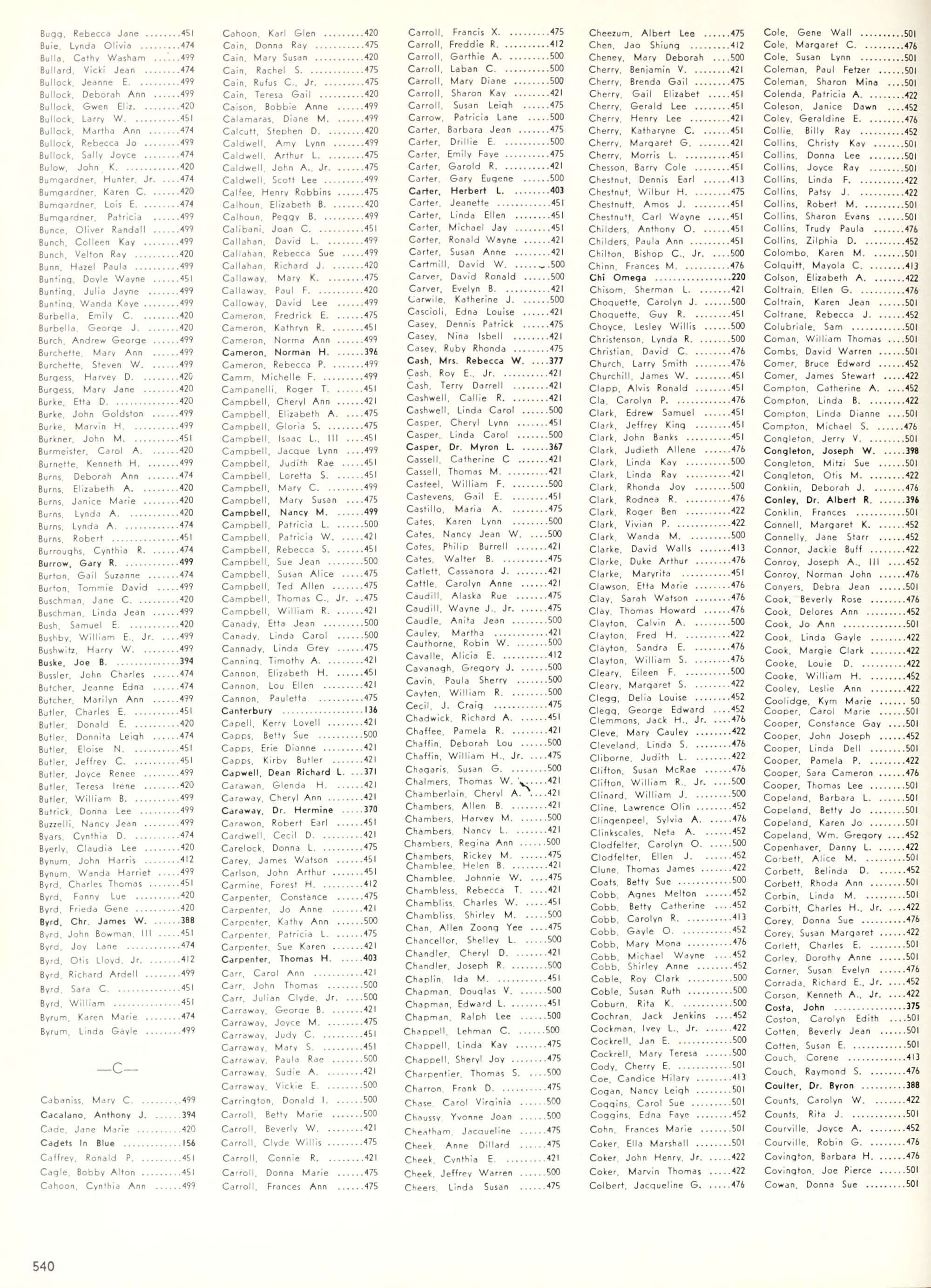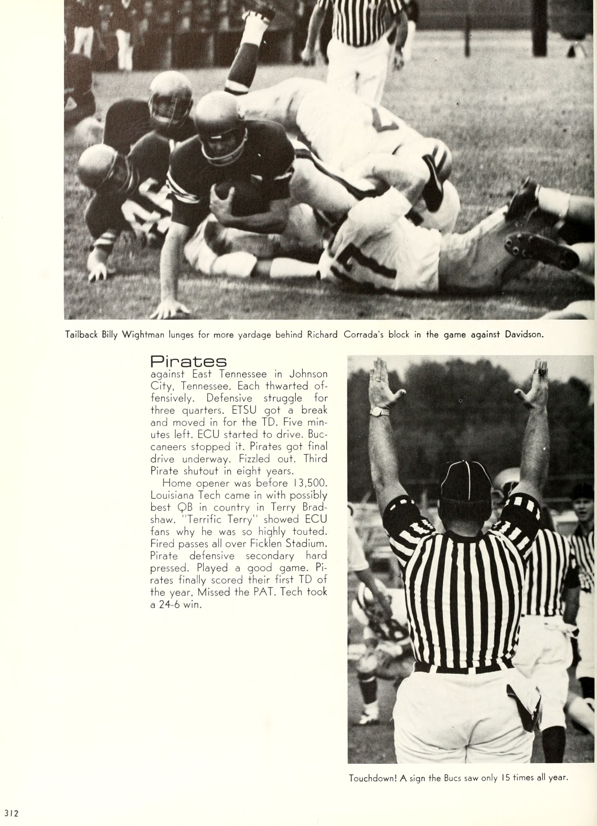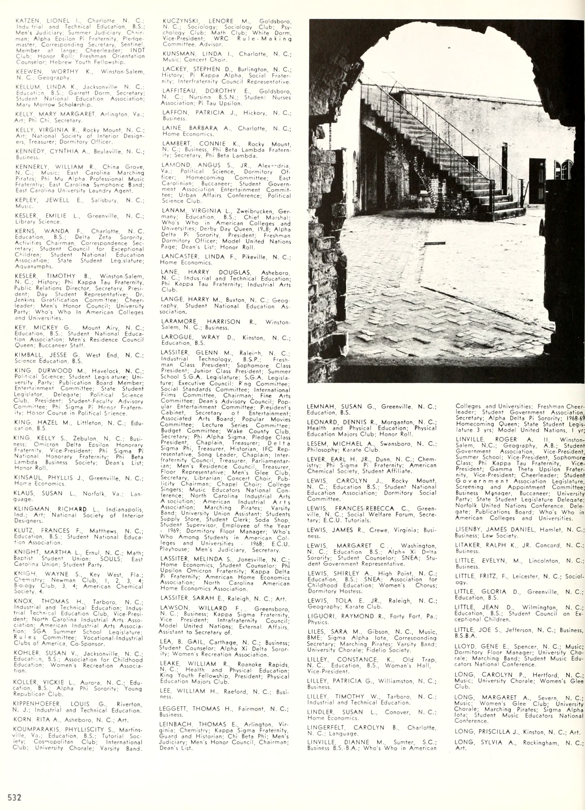 the car wreck on page 508 of the 1970 buccaneer is my mother's fault. she was driving the station wagon that hit the beetle and shoved it into the other car. she always blamed it on me. i was a little over 2 at the time. she said i started to fall over, because i was standing on the front seat, and she reached over to get me, causing her foot to come off the brake. it is family lore. she went on to teach dance at ecu for years. my dad was called out of work that day.
