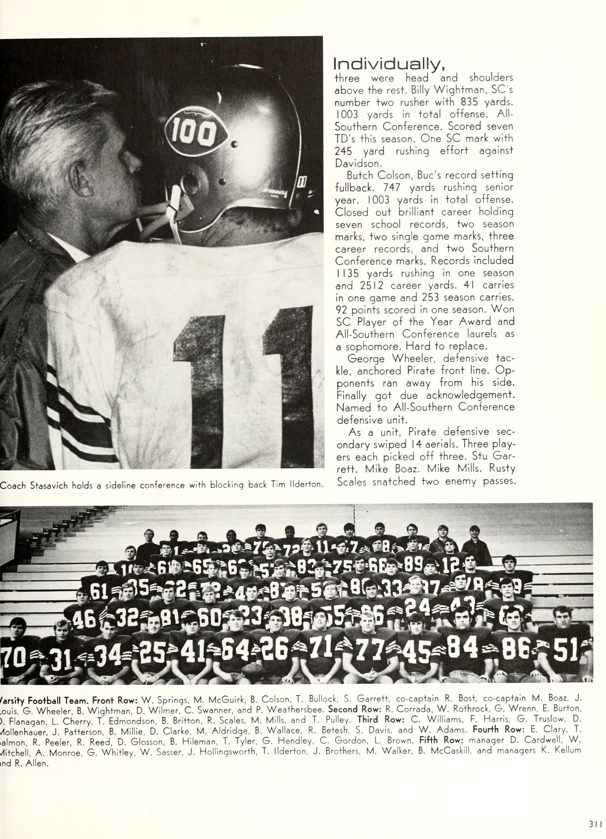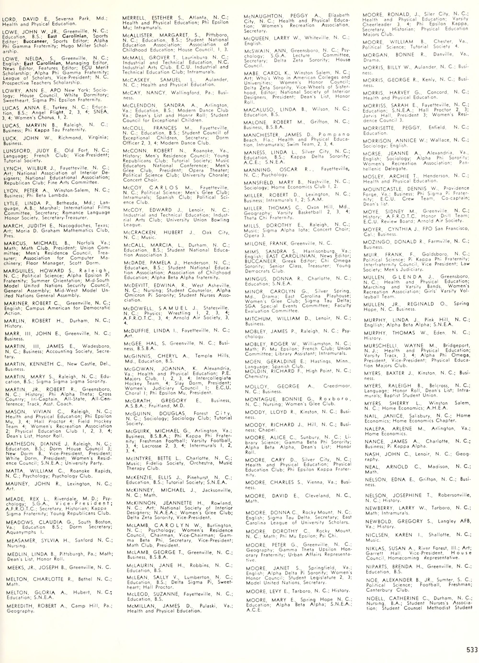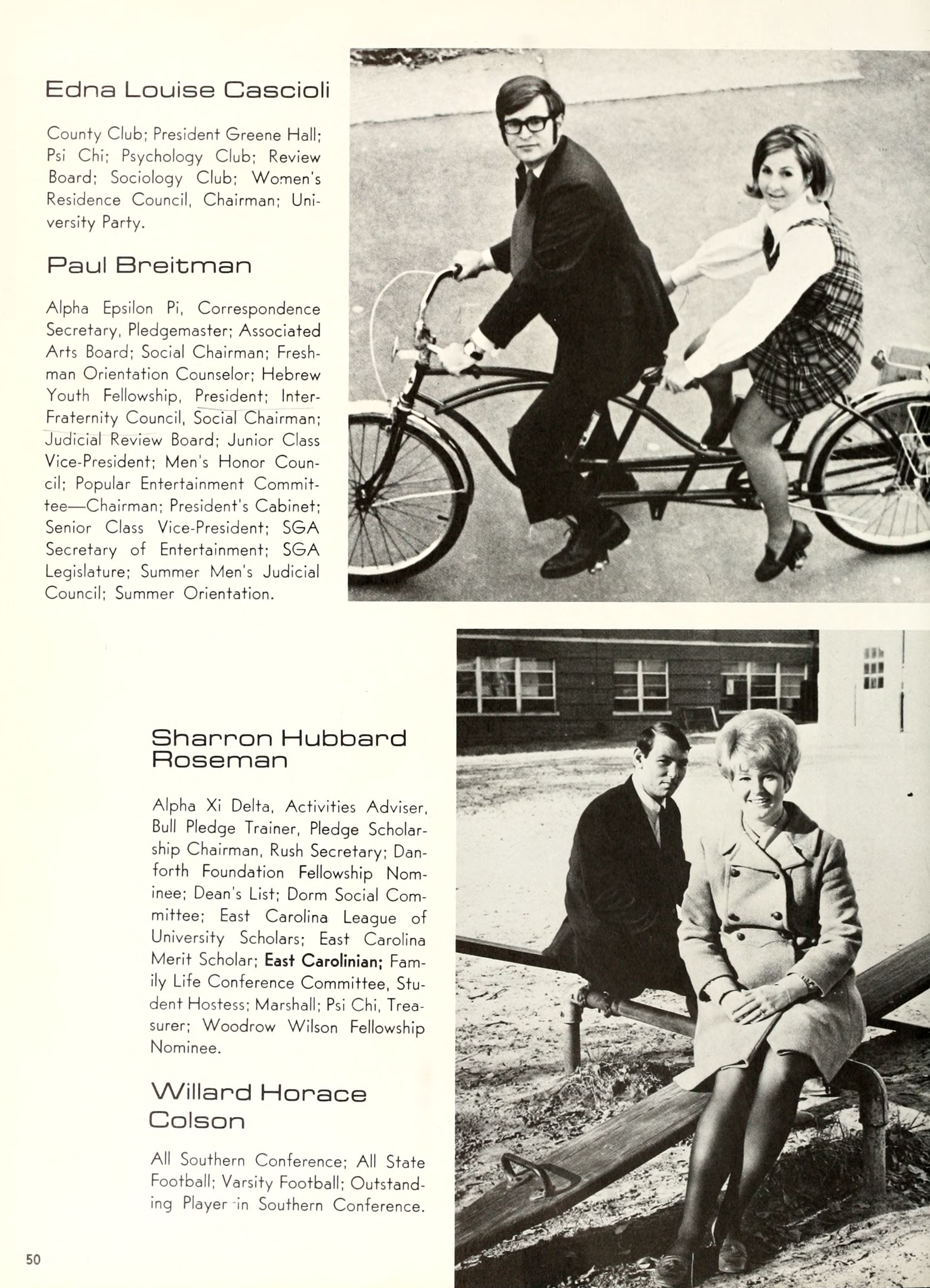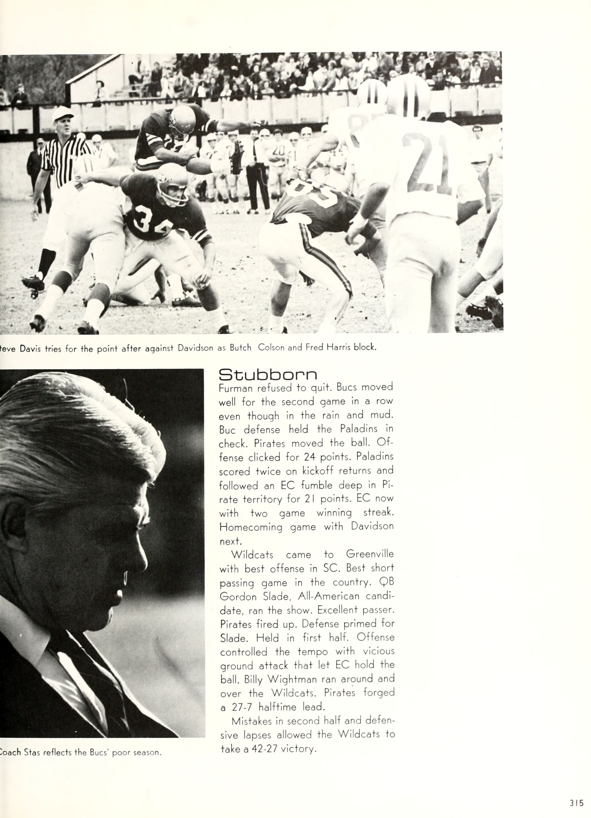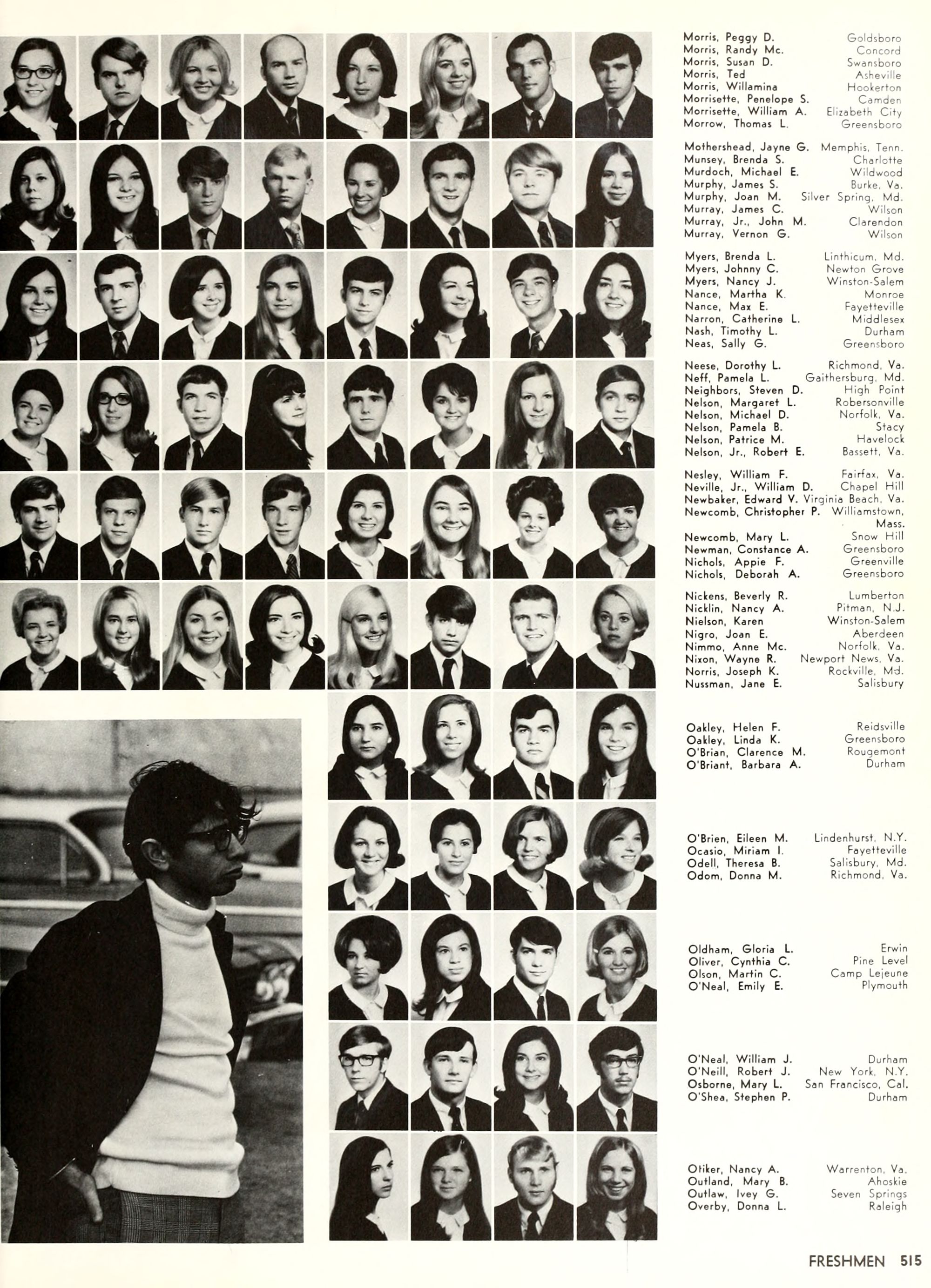 the car wreck on page 508 of the 1970 buccaneer is my mother's fault. she was driving the station wagon that hit the beetle and shoved it into the other car. she always blamed it on me. i was a little over 2 at the time. she said i started to fall over, because i was standing on the front seat, and she reached over to get me, causing her foot to come off the brake. it is family lore. she went on to teach dance at ecu for years. my dad was called out of work that day.