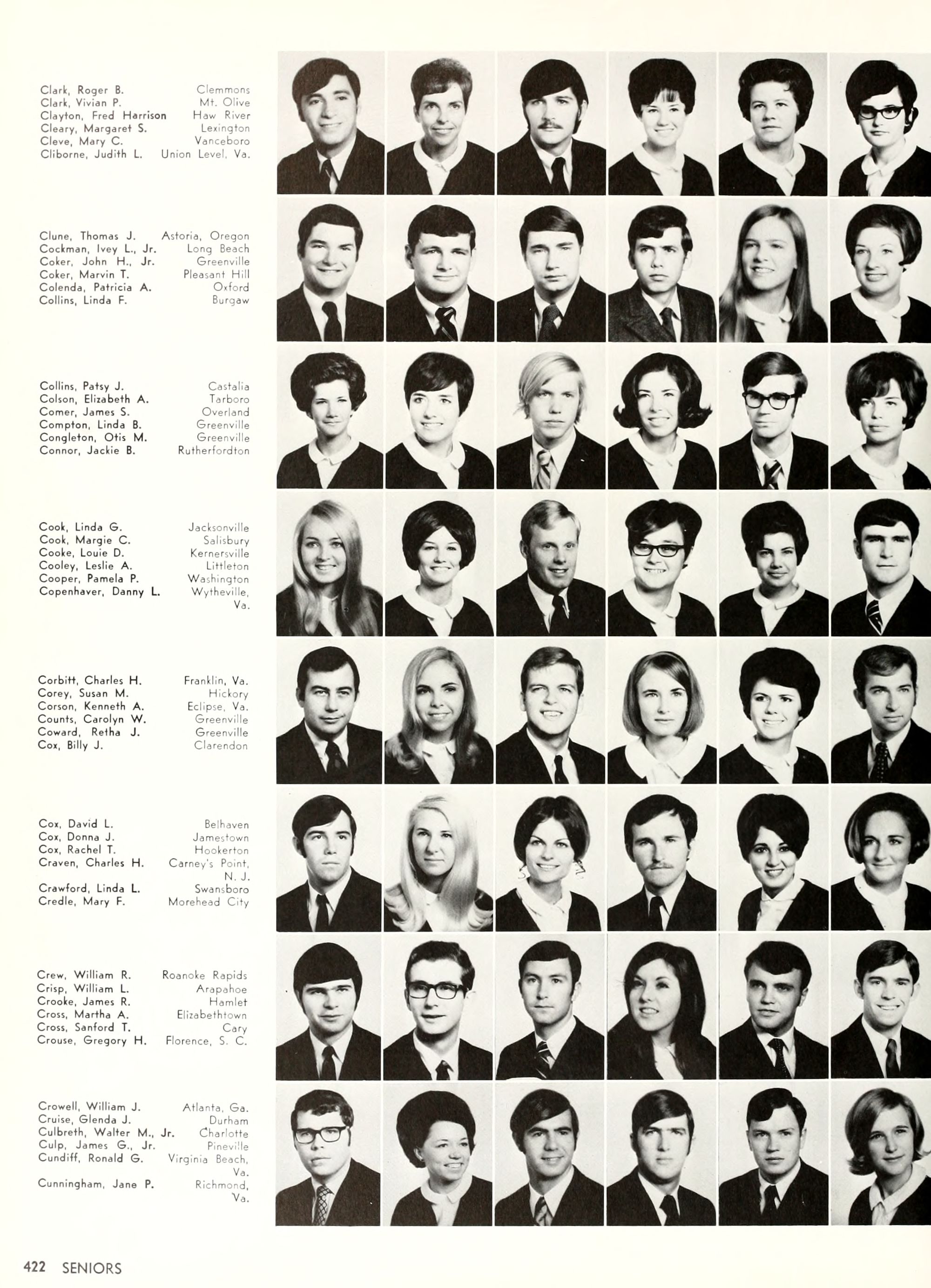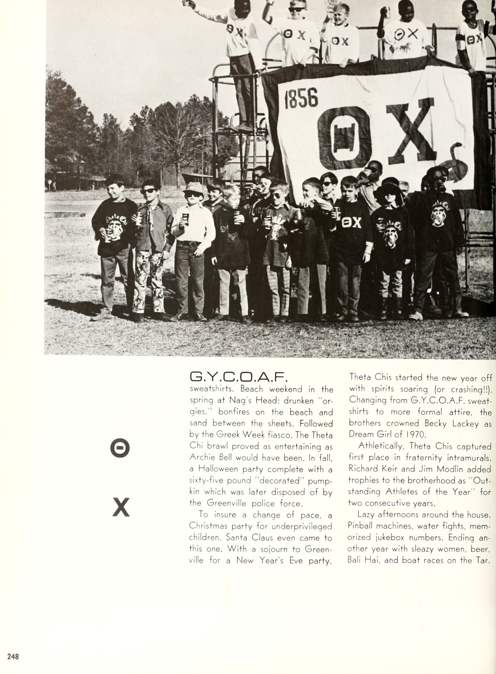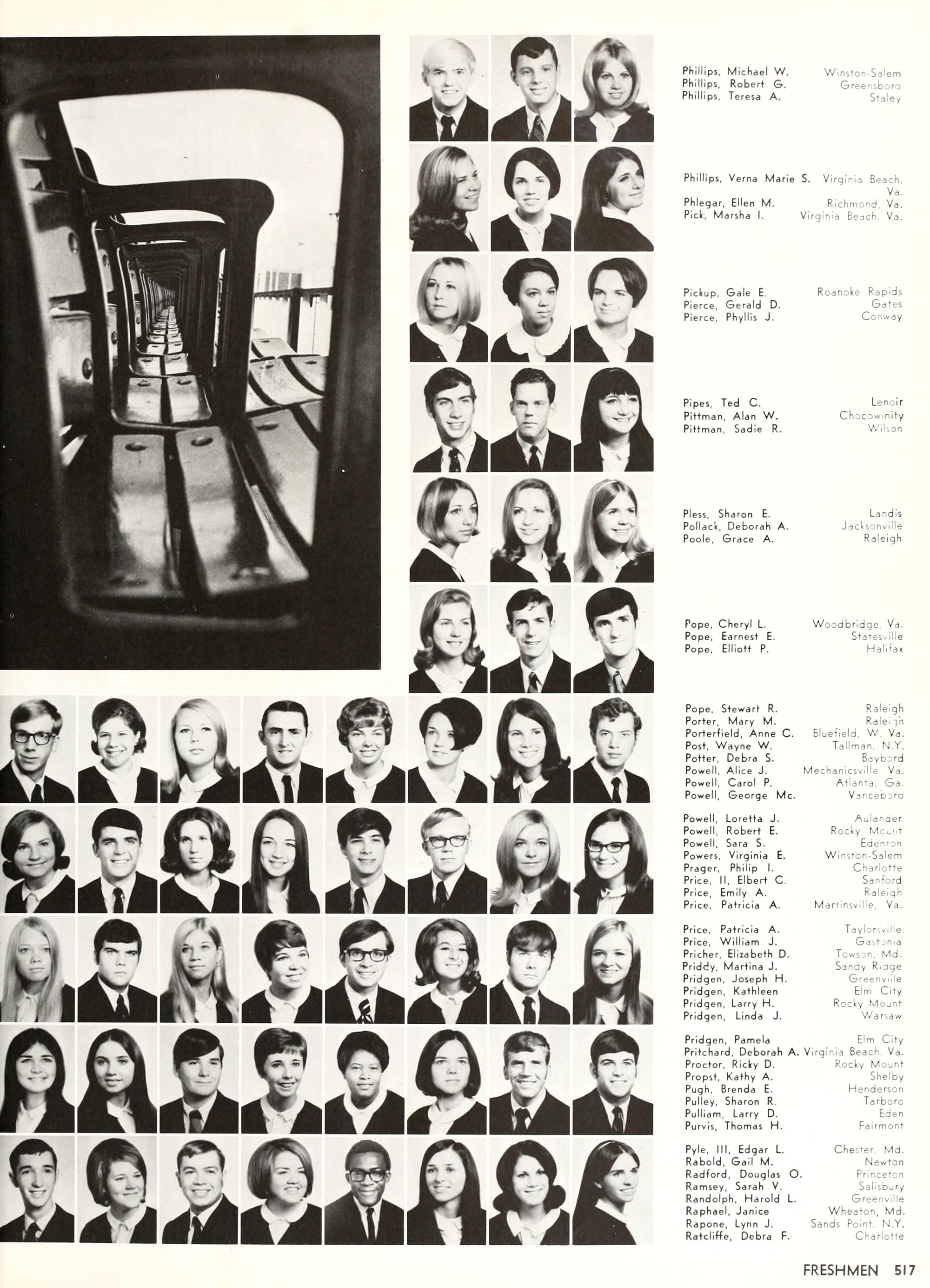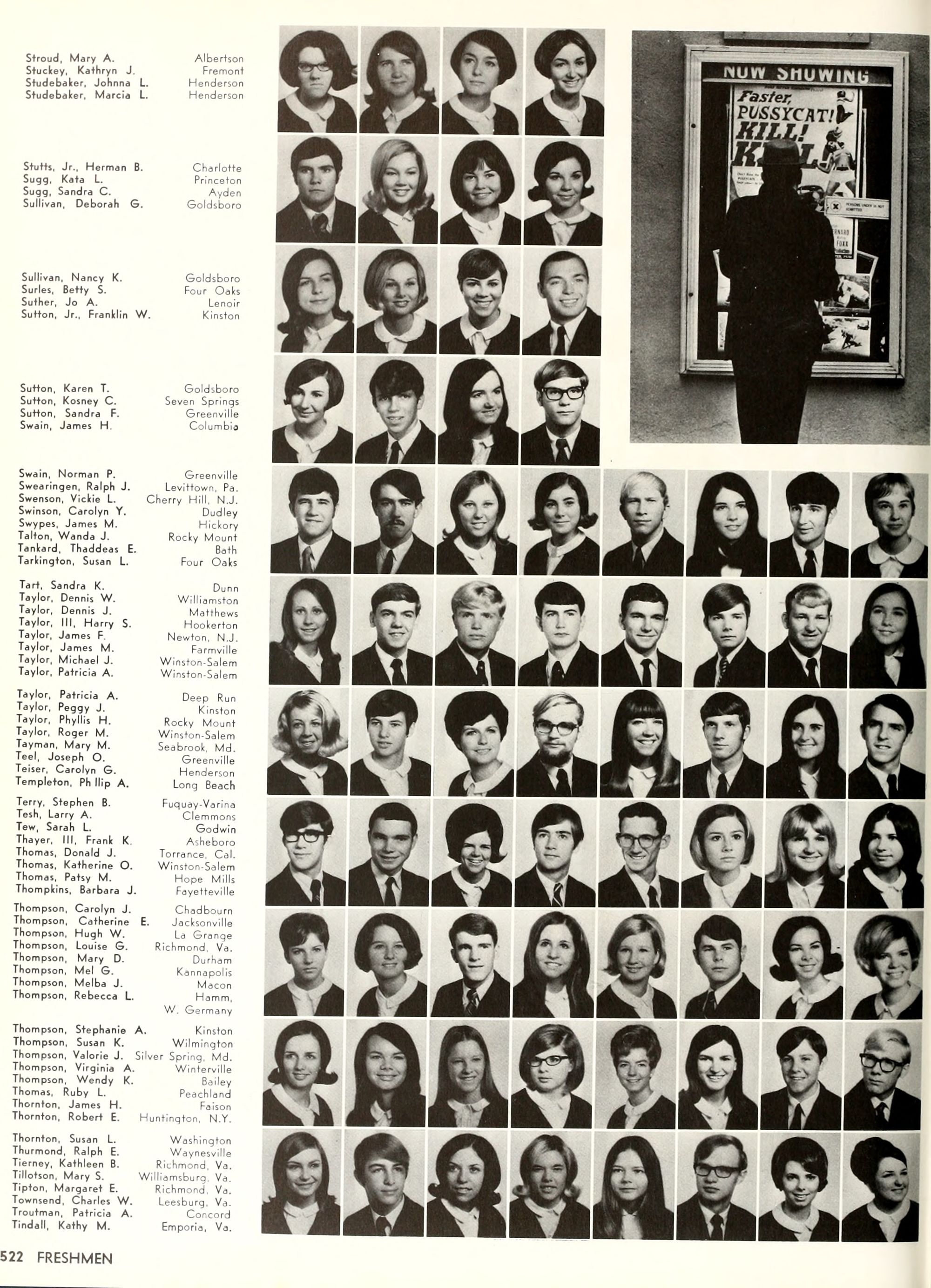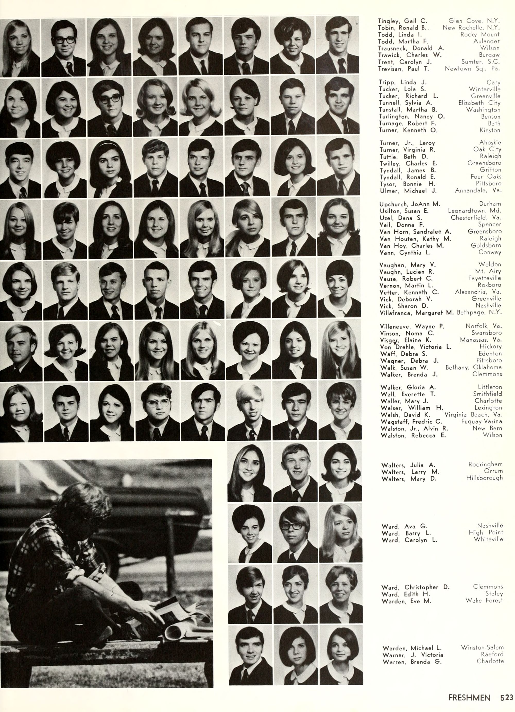 the car wreck on page 508 of the 1970 buccaneer is my mother's fault. she was driving the station wagon that hit the beetle and shoved it into the other car. she always blamed it on me. i was a little over 2 at the time. she said i started to fall over, because i was standing on the front seat, and she reached over to get me, causing her foot to come off the brake. it is family lore. she went on to teach dance at ecu for years. my dad was called out of work that day.