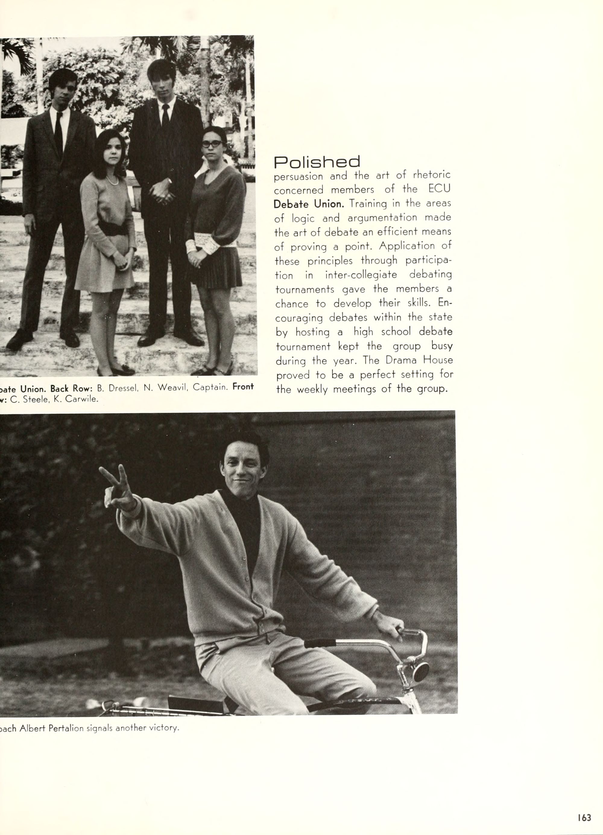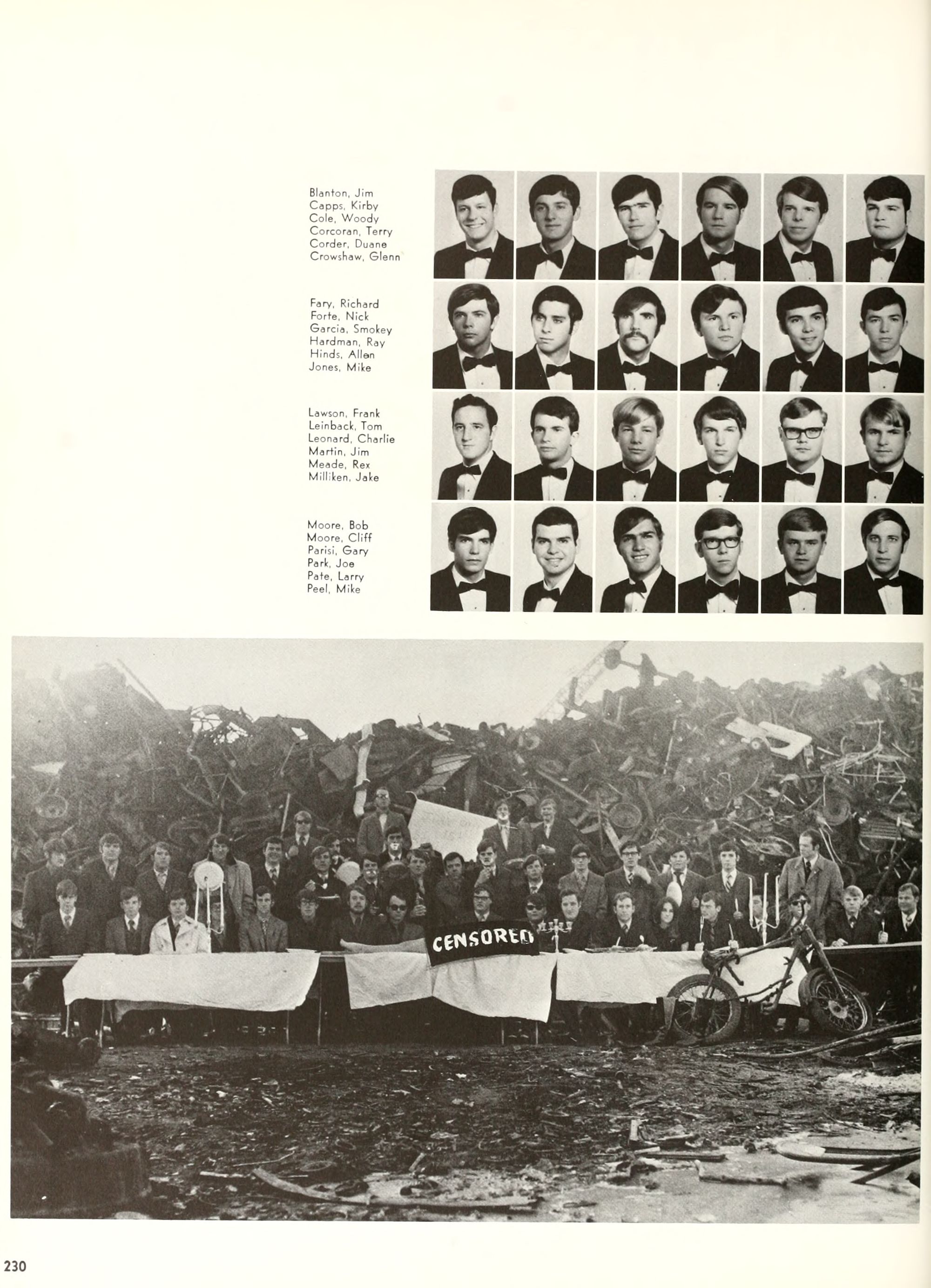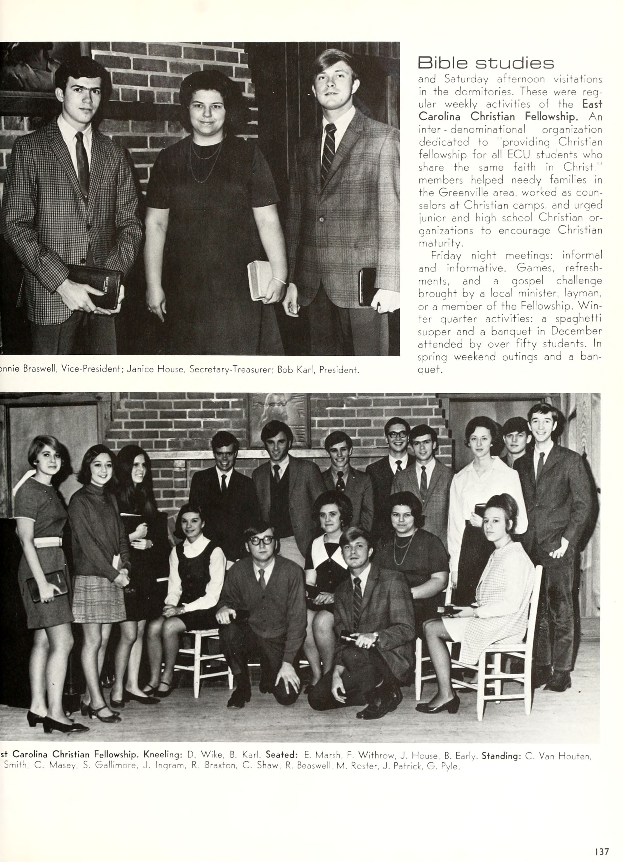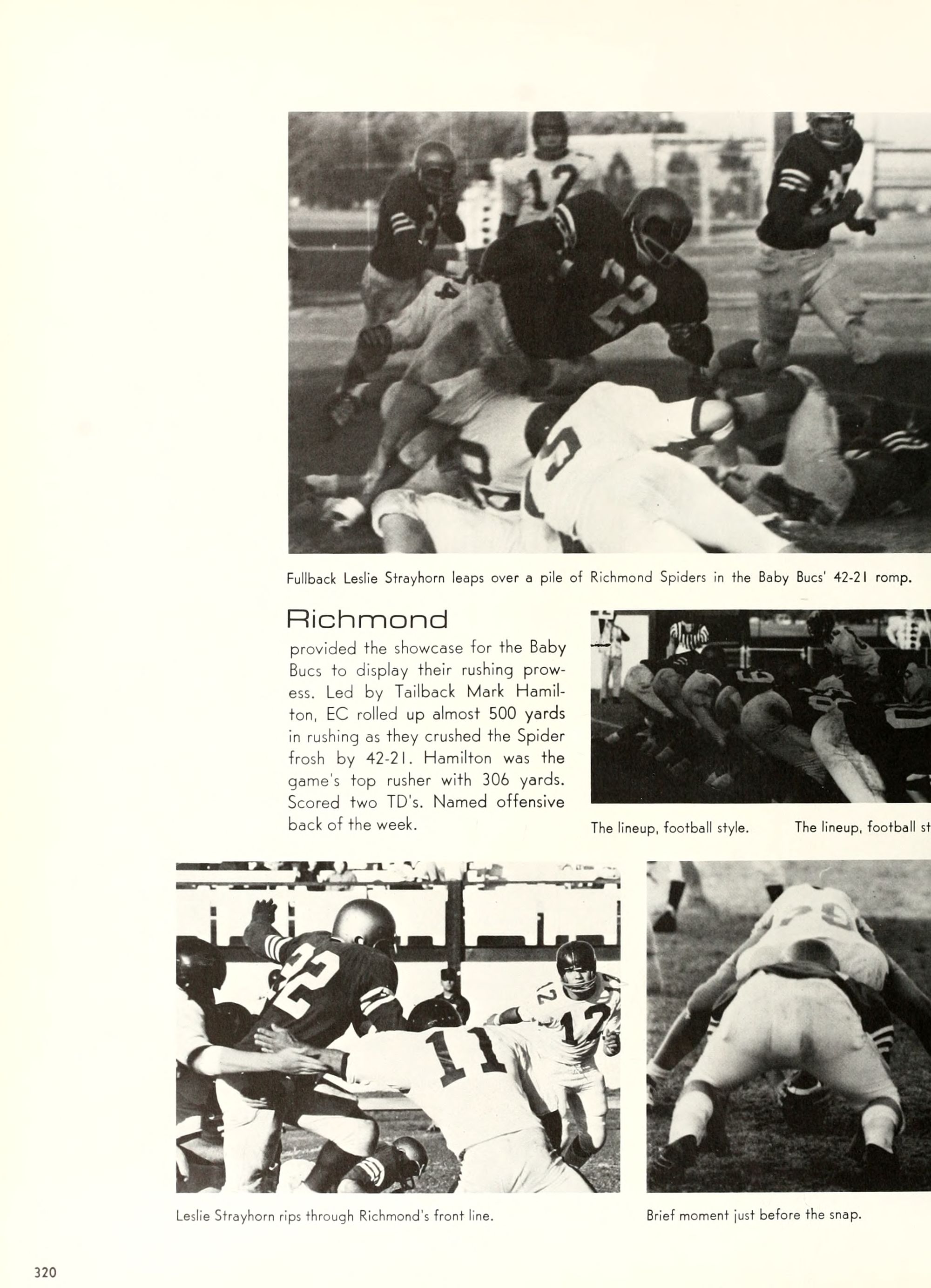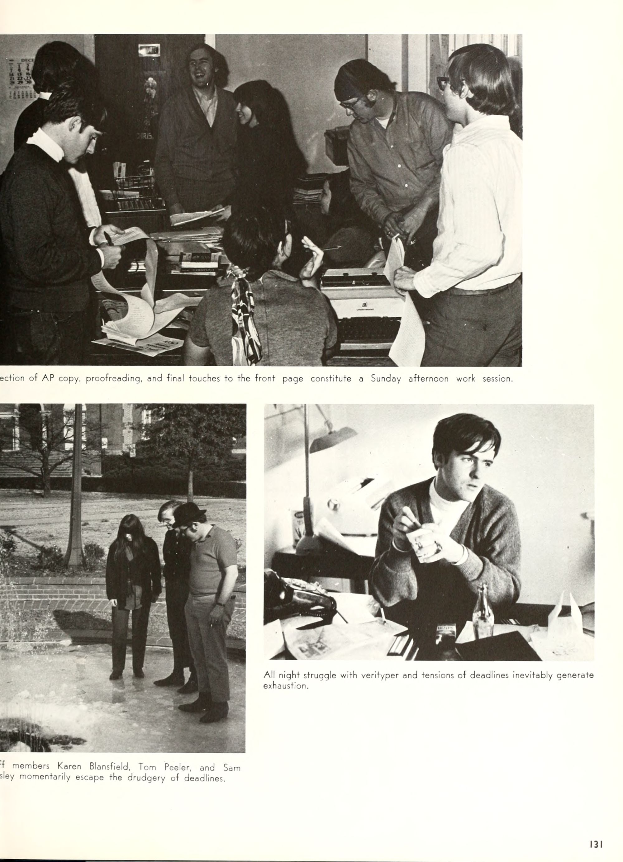 the car wreck on page 508 of the 1970 buccaneer is my mother's fault. she was driving the station wagon that hit the beetle and shoved it into the other car. she always blamed it on me. i was a little over 2 at the time. she said i started to fall over, because i was standing on the front seat, and she reached over to get me, causing her foot to come off the brake. it is family lore. she went on to teach dance at ecu for years. my dad was called out of work that day.