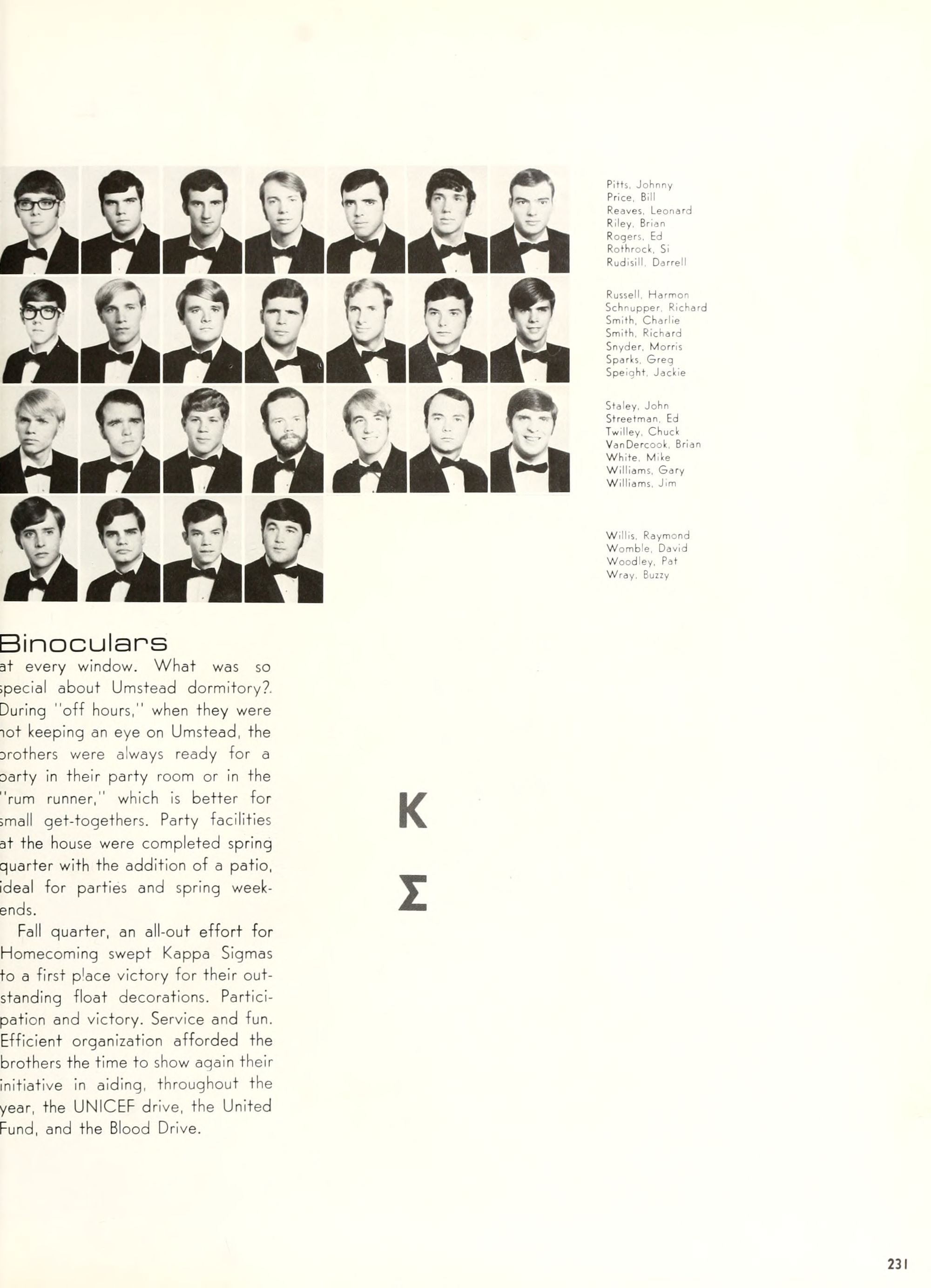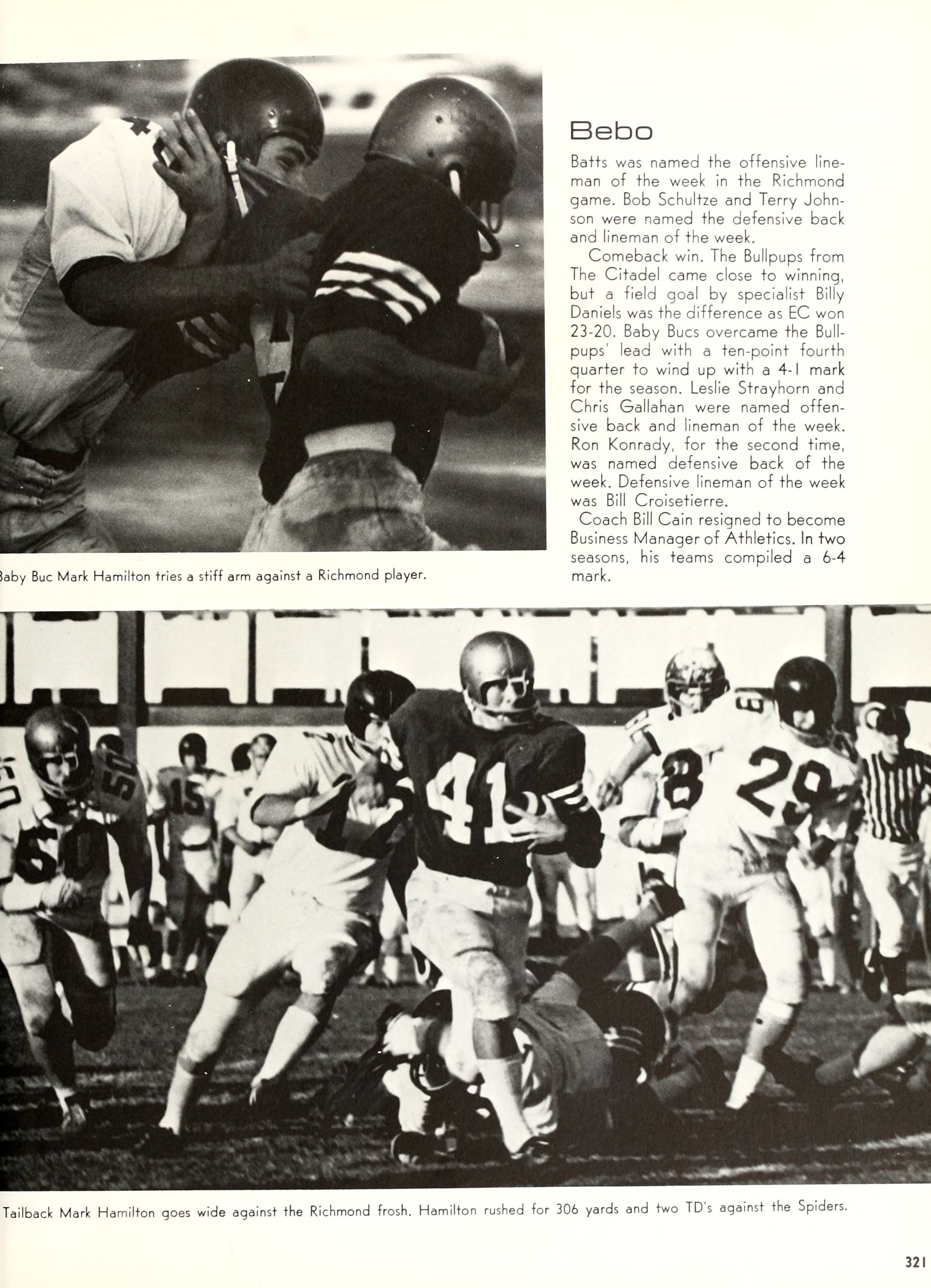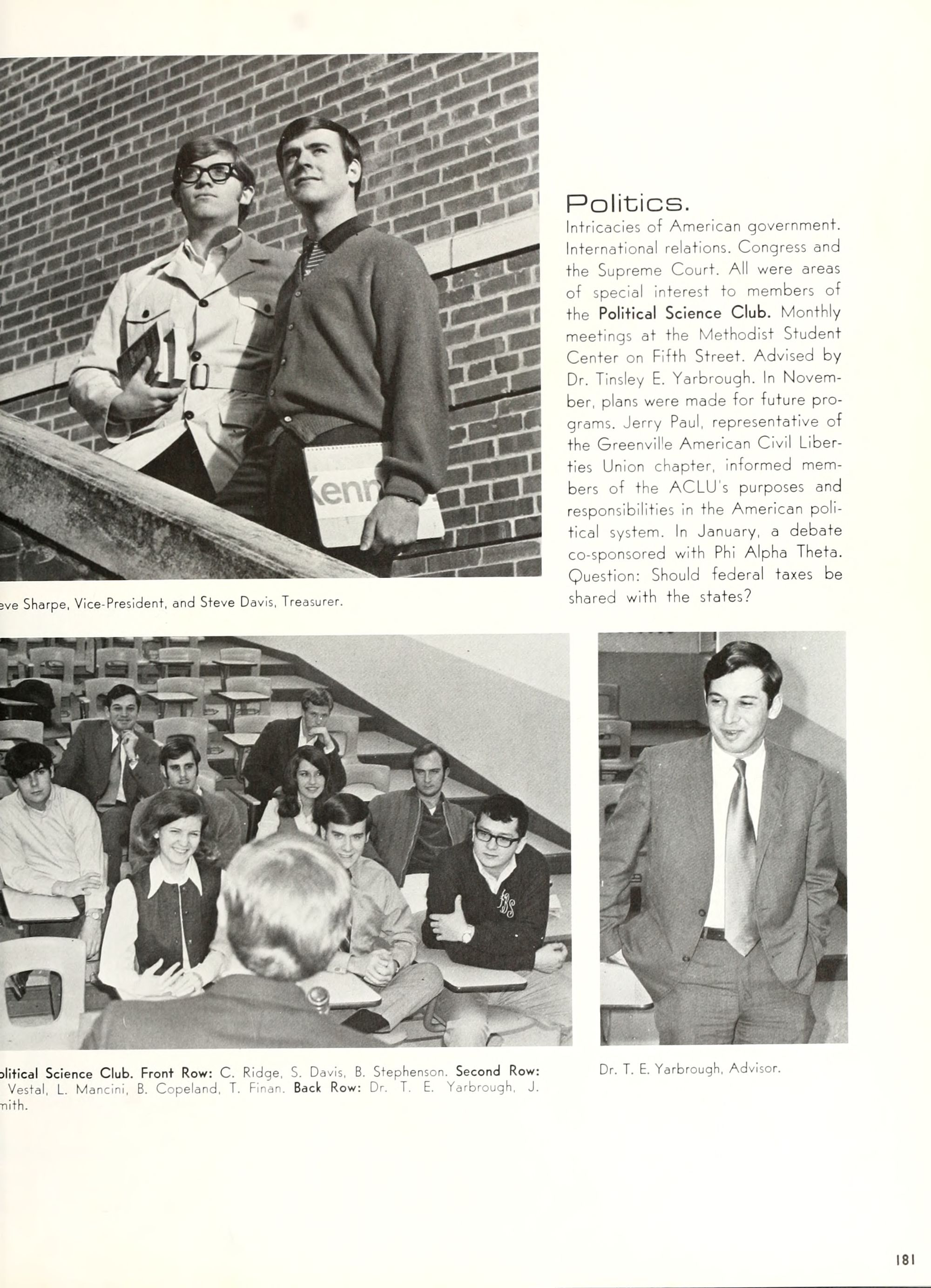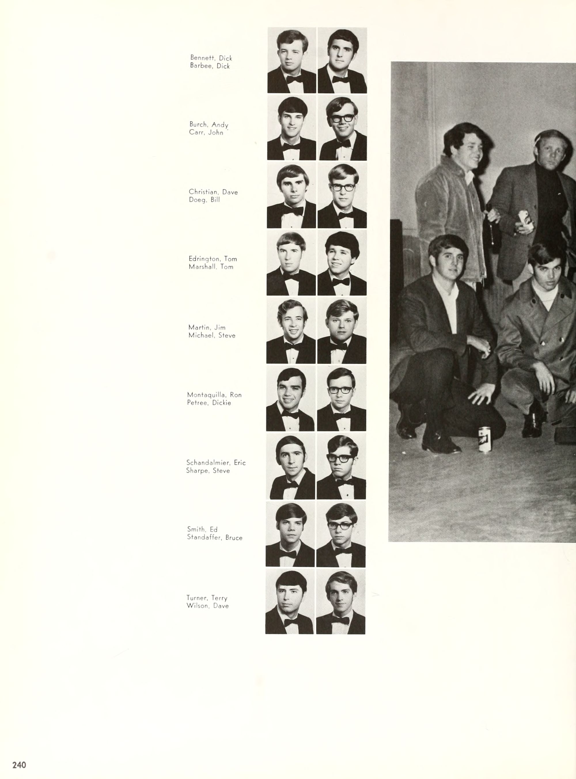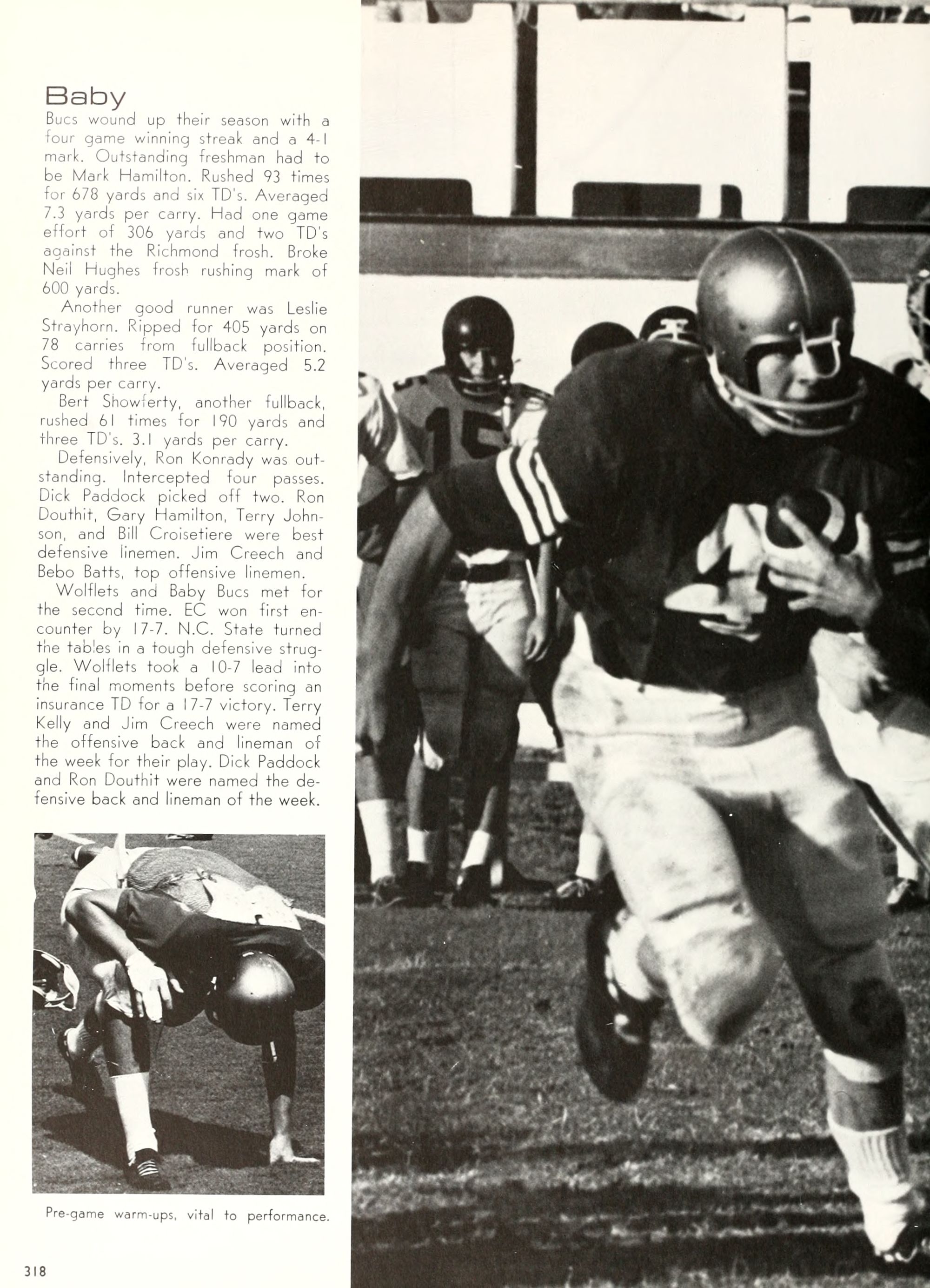 the car wreck on page 508 of the 1970 buccaneer is my mother's fault. she was driving the station wagon that hit the beetle and shoved it into the other car. she always blamed it on me. i was a little over 2 at the time. she said i started to fall over, because i was standing on the front seat, and she reached over to get me, causing her foot to come off the brake. it is family lore. she went on to teach dance at ecu for years. my dad was called out of work that day.