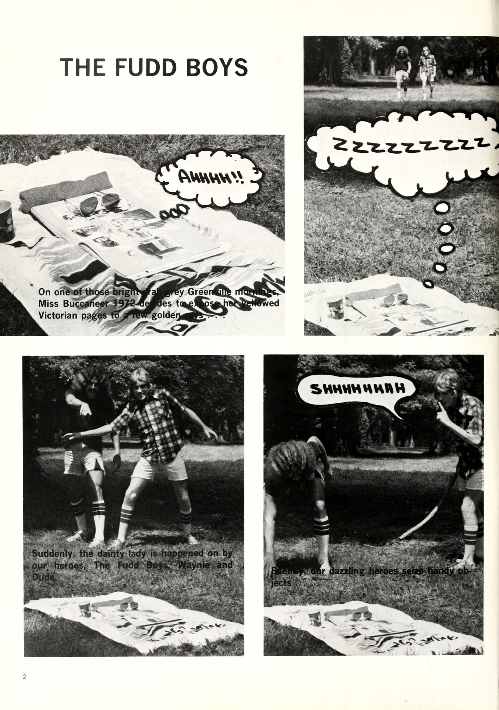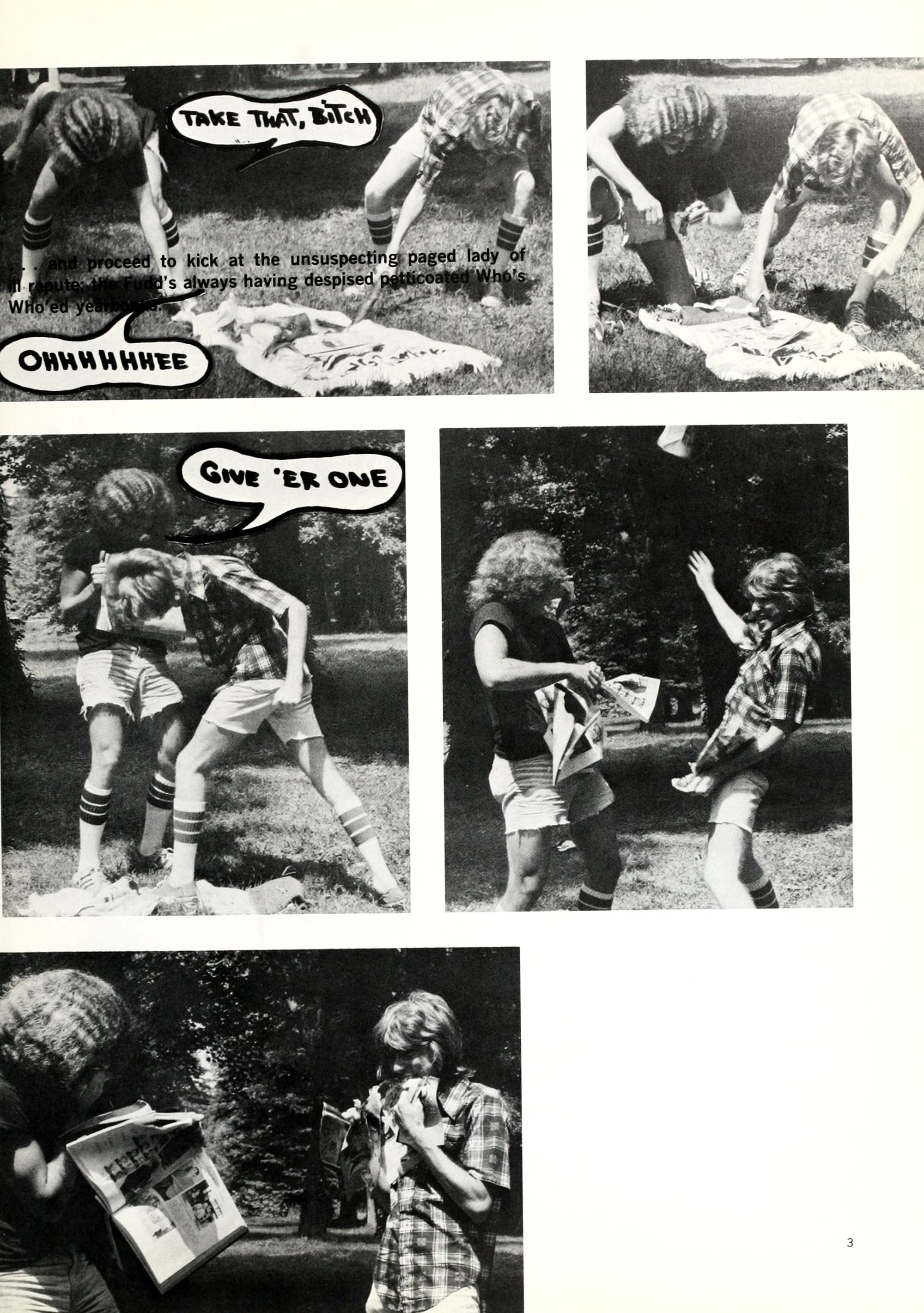 ...and proceed to kick at the unsuspecting paged lady of ill repute; the Fudd's always having despised petticoated Who's Who'ed yearbooks.