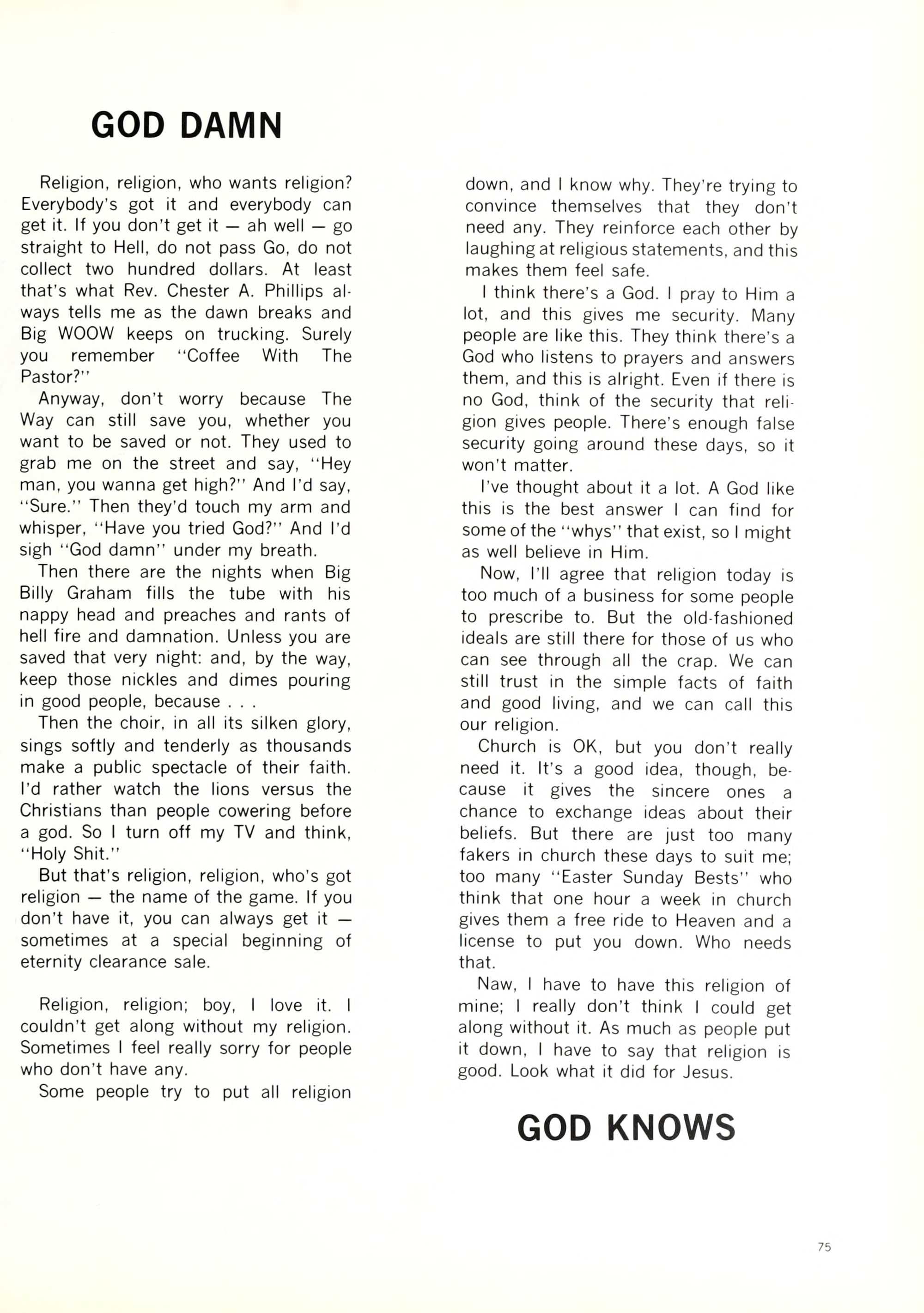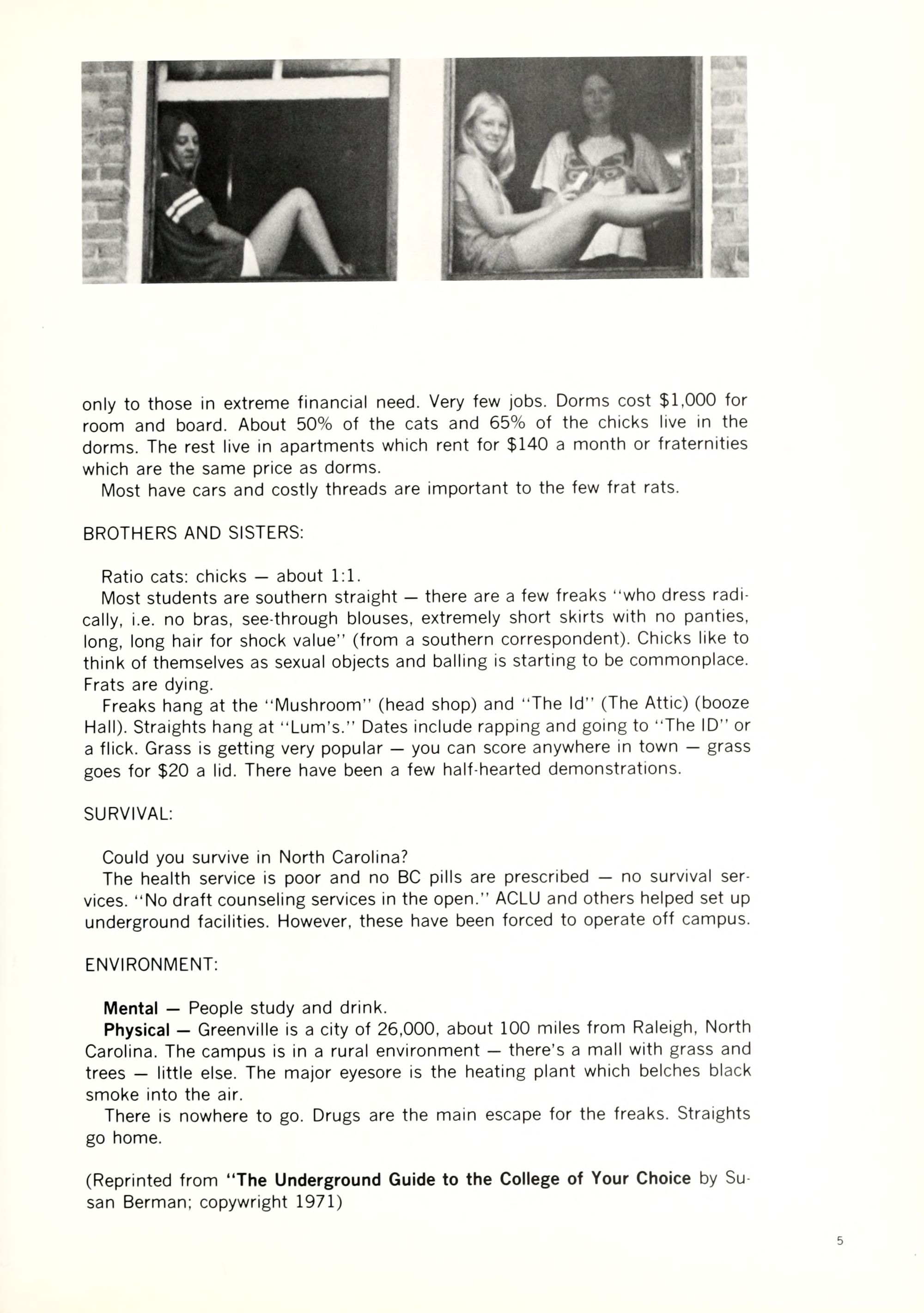 (Reprinted from "The Underground Guide to the College of Your Choice by Susan Berman; copywright 1971)