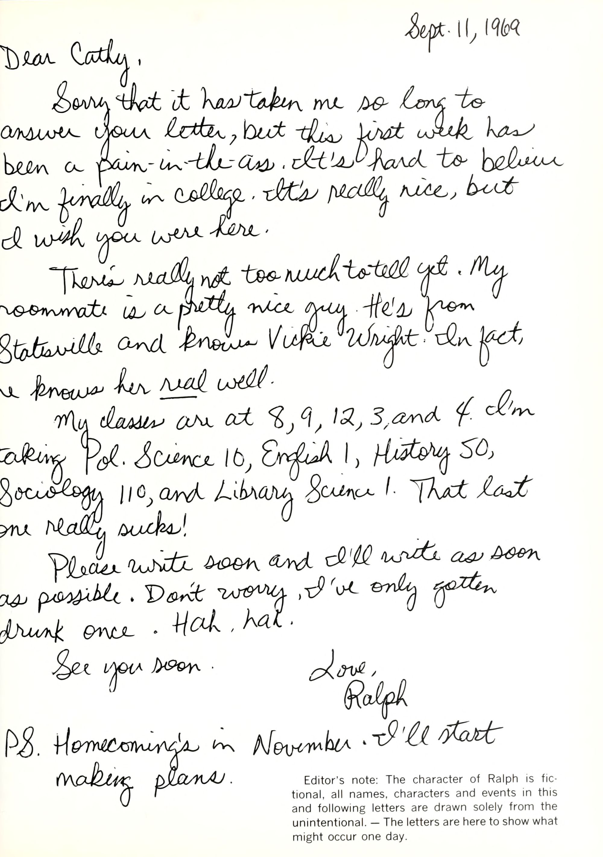 Editor's note: The character of Ralph is fictional, all names, characters and events in this and following letters are drawn solely from the unintentional. - The letters are here to show what might occur one day.