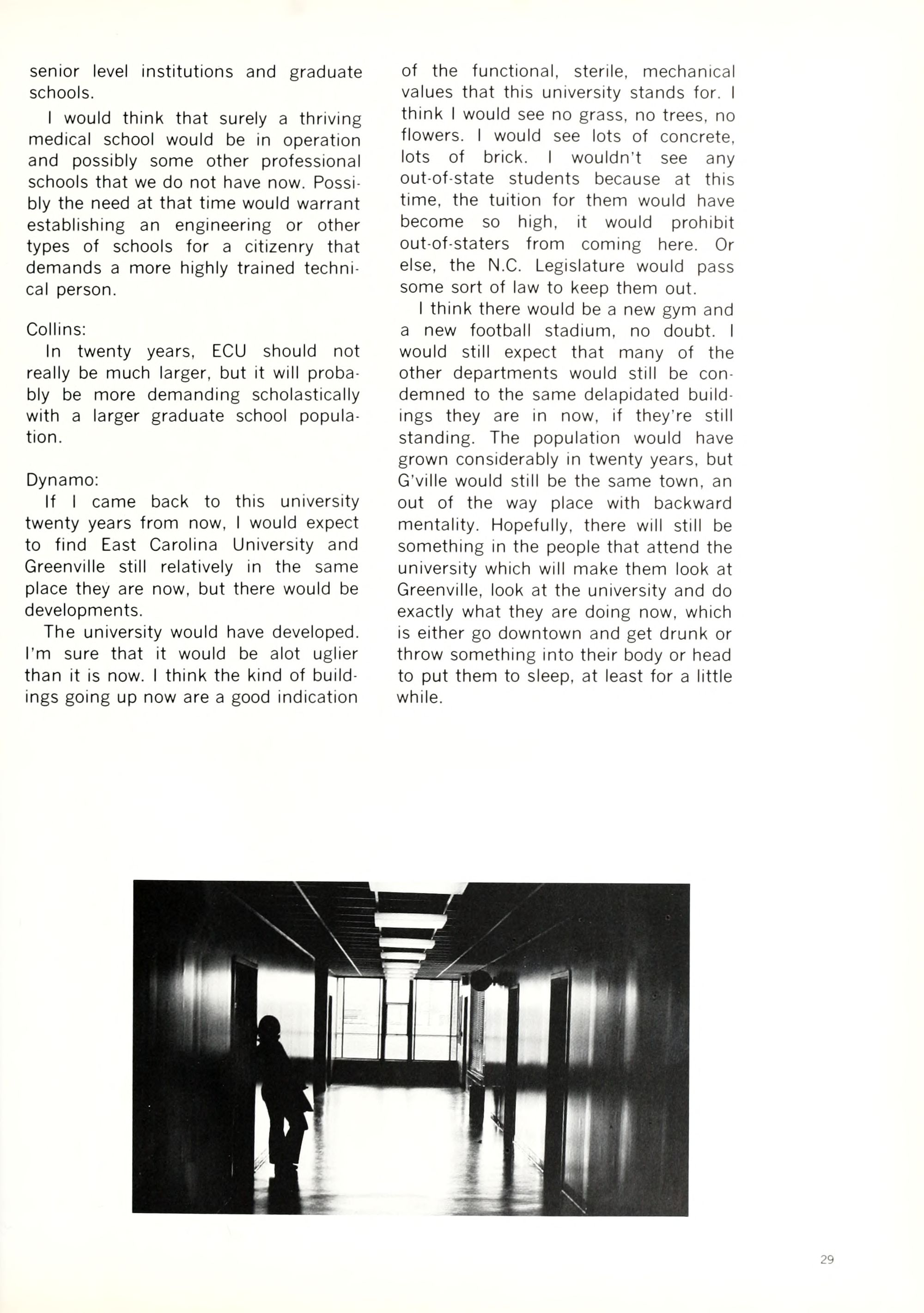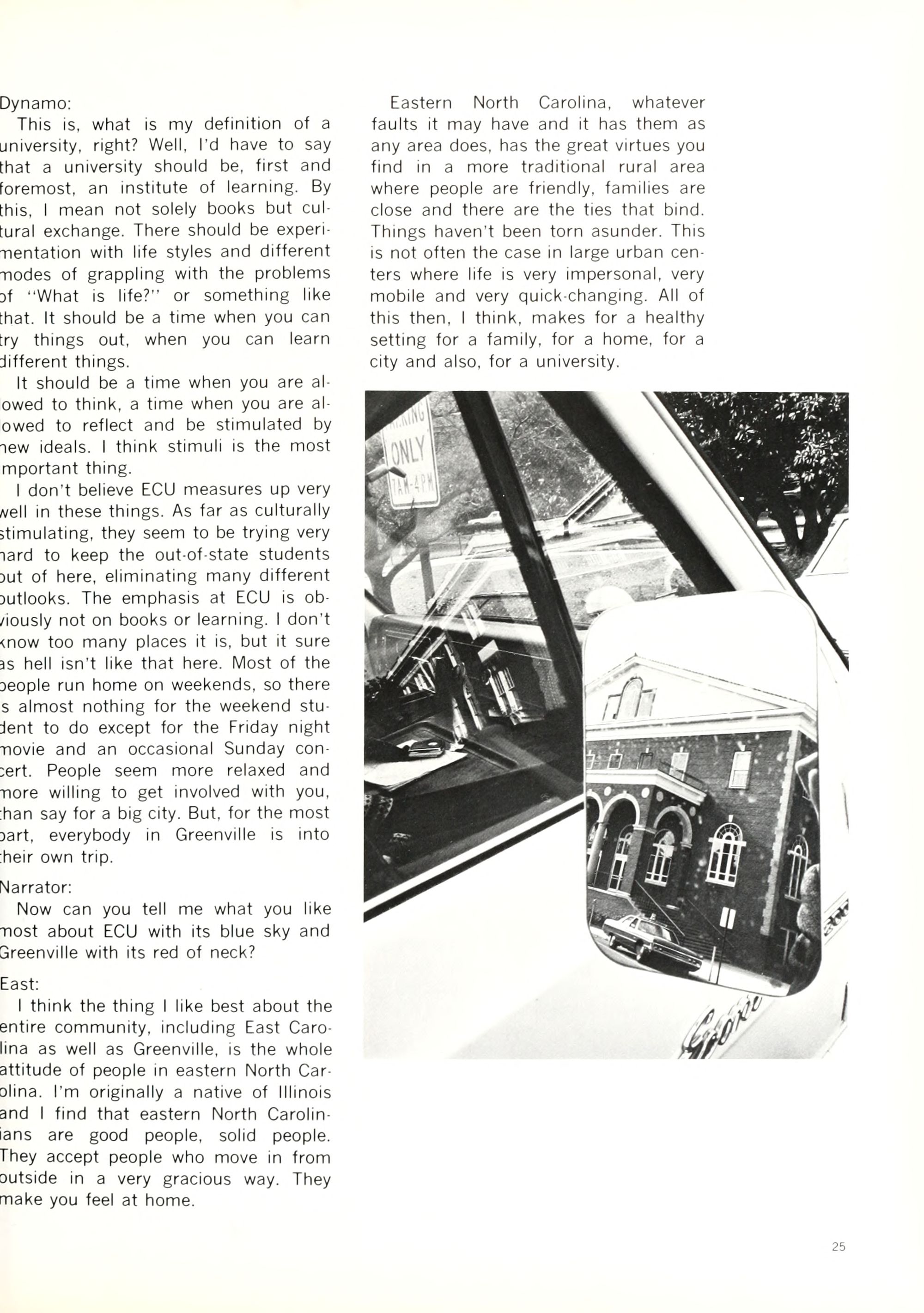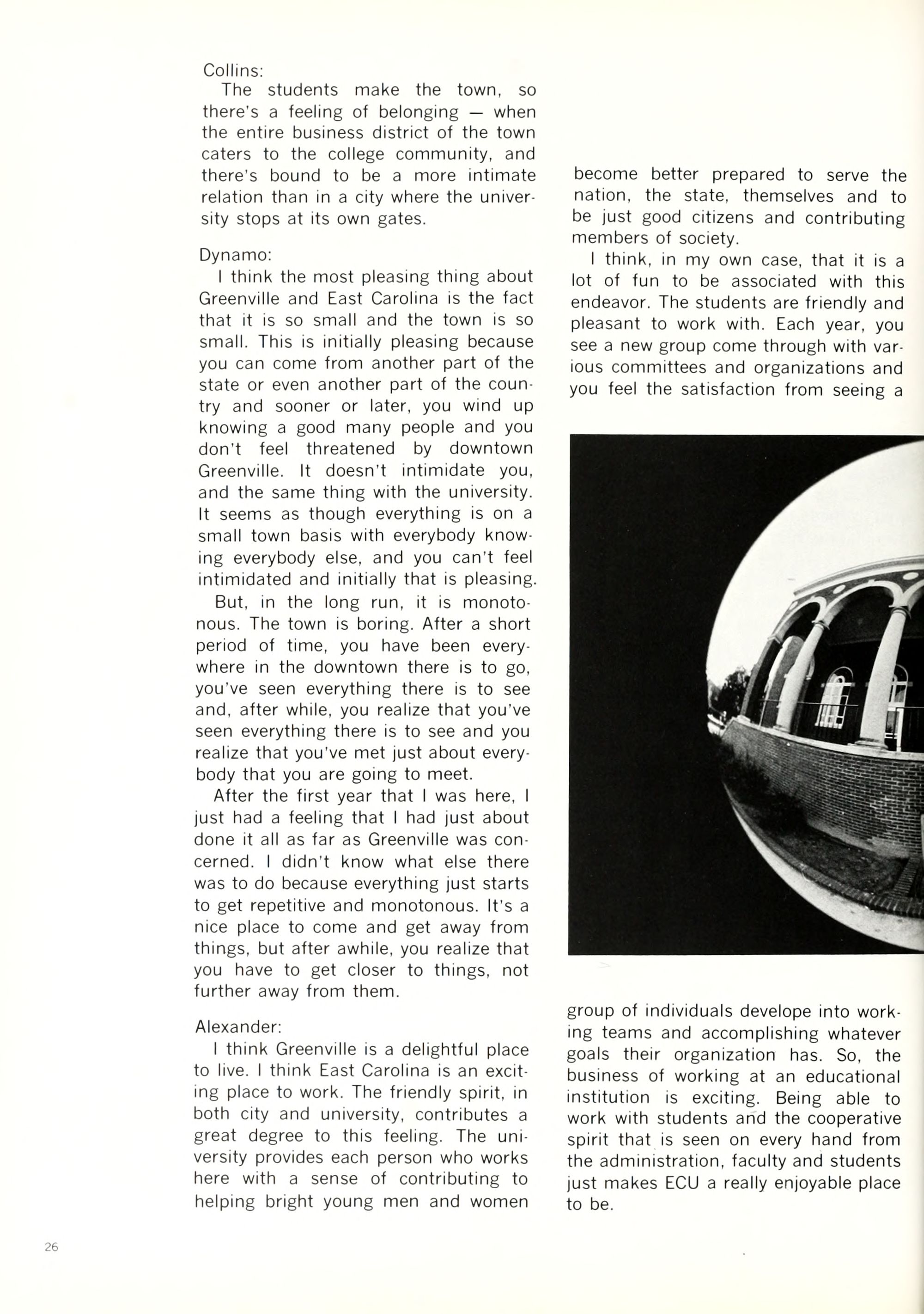 Like all small university towns, Green- ville has its share of beer joints, parking meters, and X-rated movies. Life in Greenville is slow and quiet, and those who cannot withstand the rigors of Happy Hour or who get bored counting telephone poles can always take a re- treat in the nearest bar and spend a few hours and dollars playing pinball.