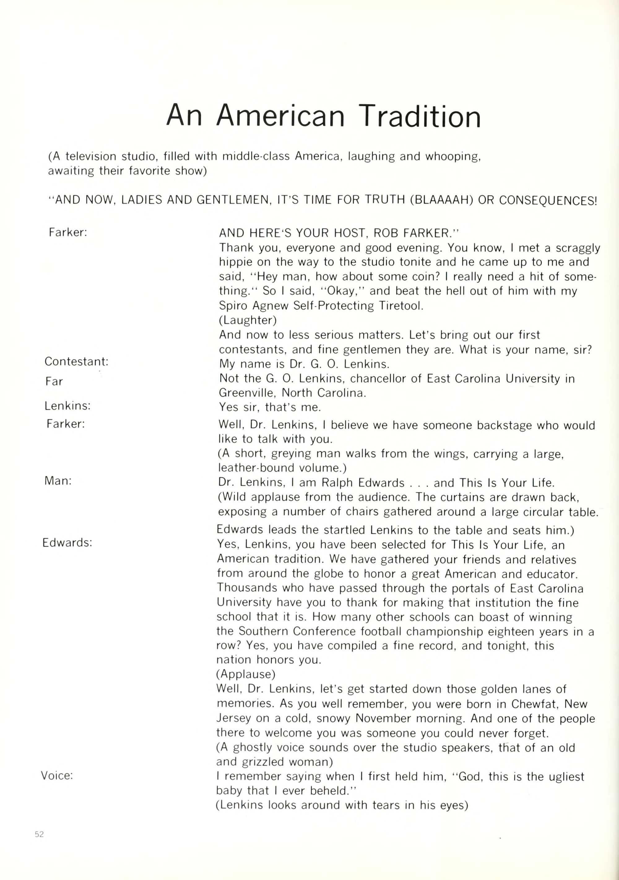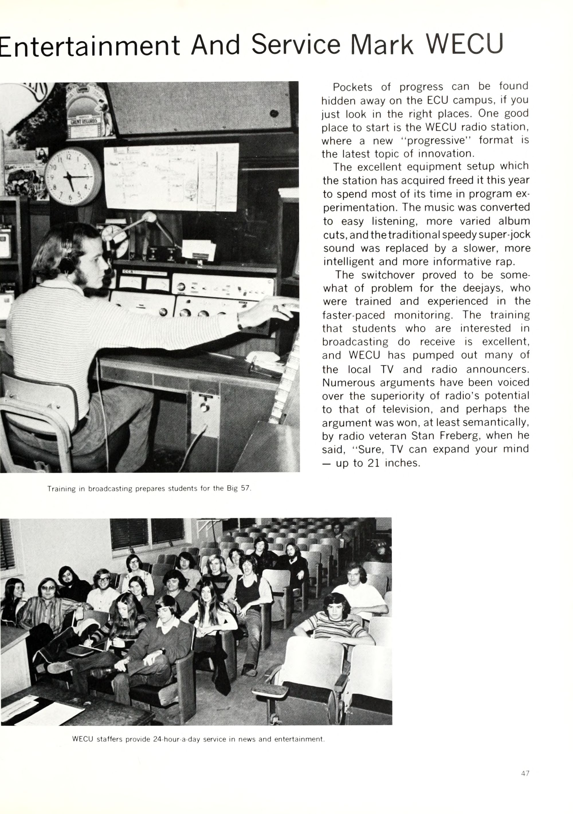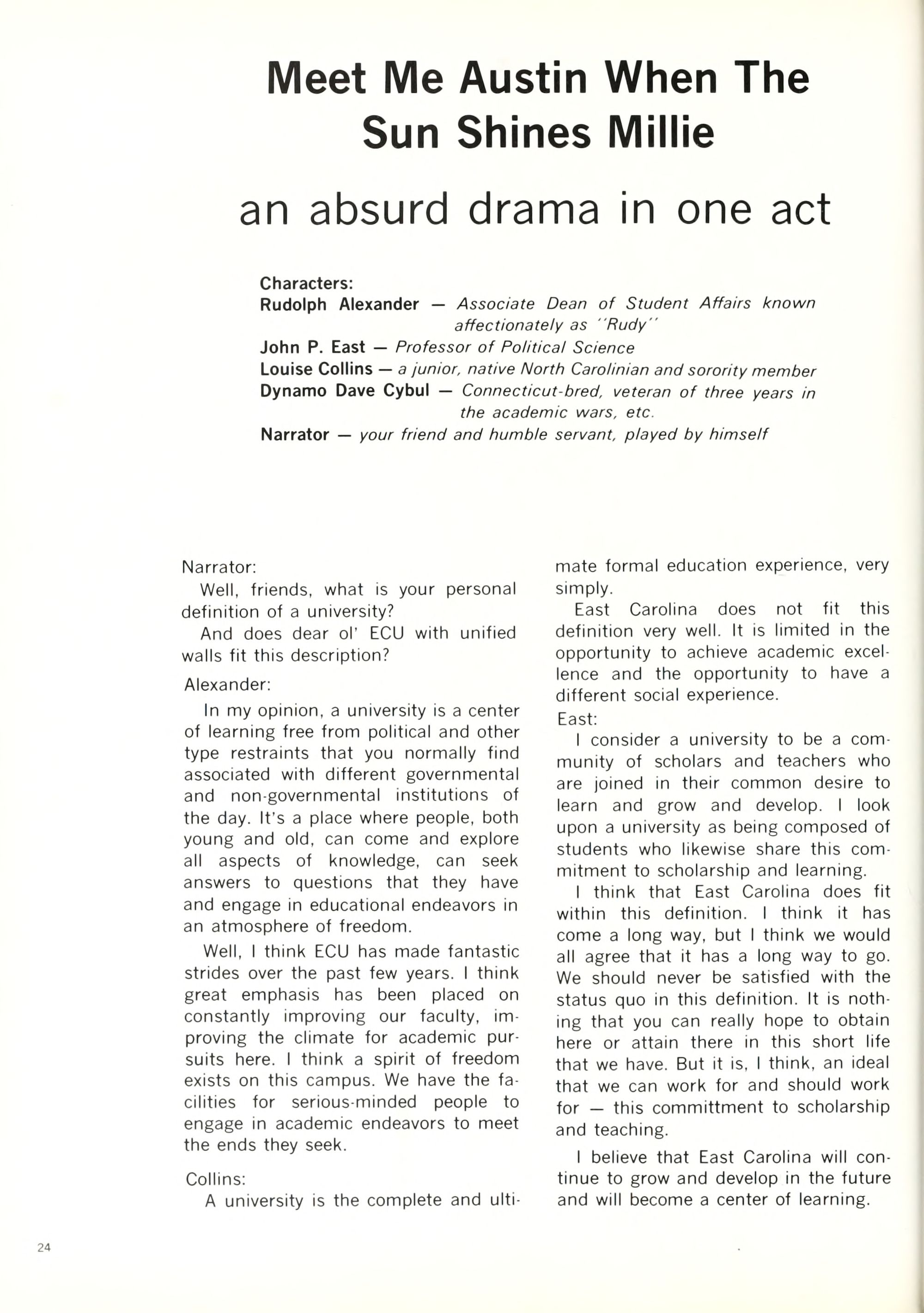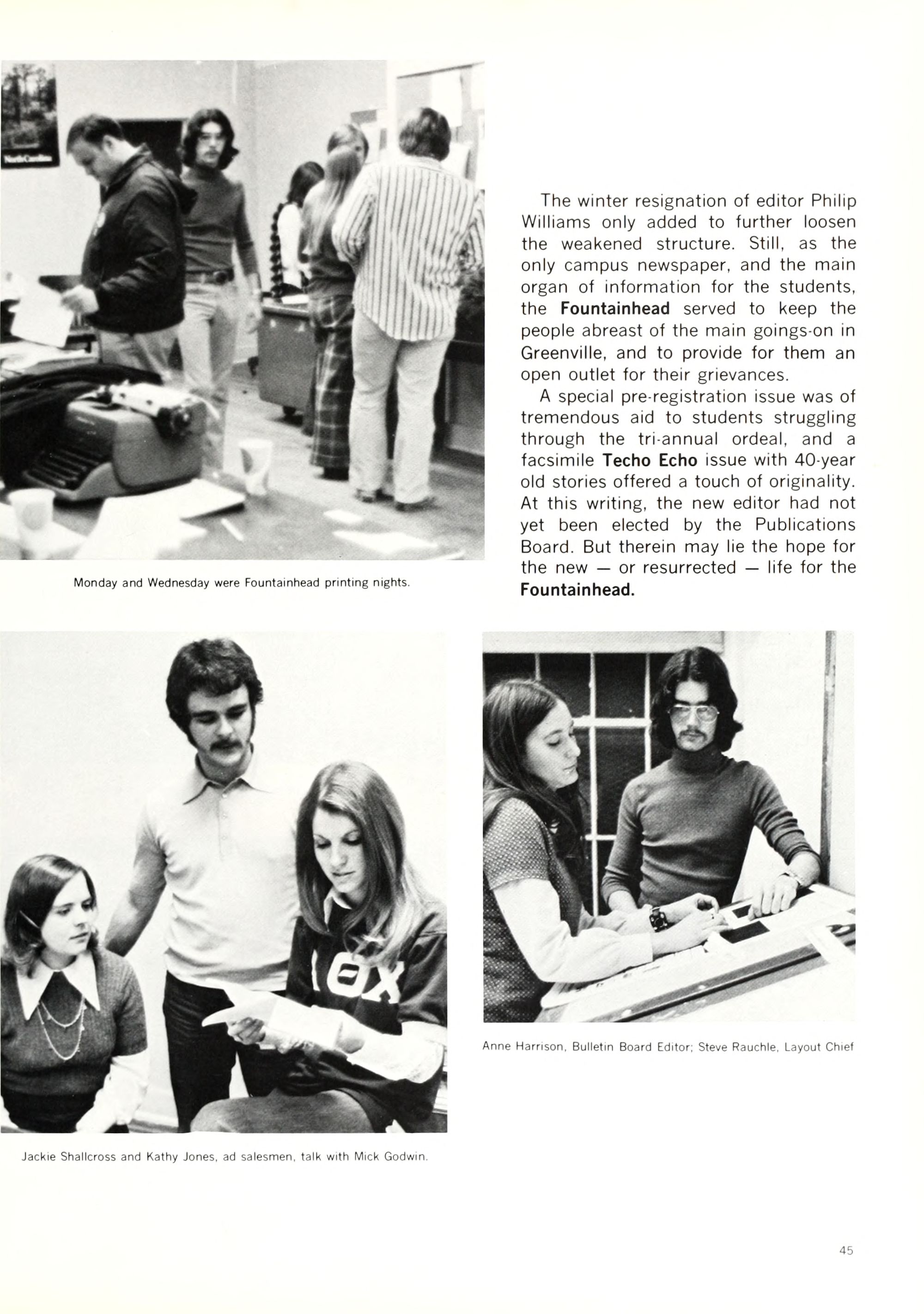 Like all small university towns, Green- ville has its share of beer joints, parking meters, and X-rated movies. Life in Greenville is slow and quiet, and those who cannot withstand the rigors of Happy Hour or who get bored counting telephone poles can always take a re- treat in the nearest bar and spend a few hours and dollars playing pinball.