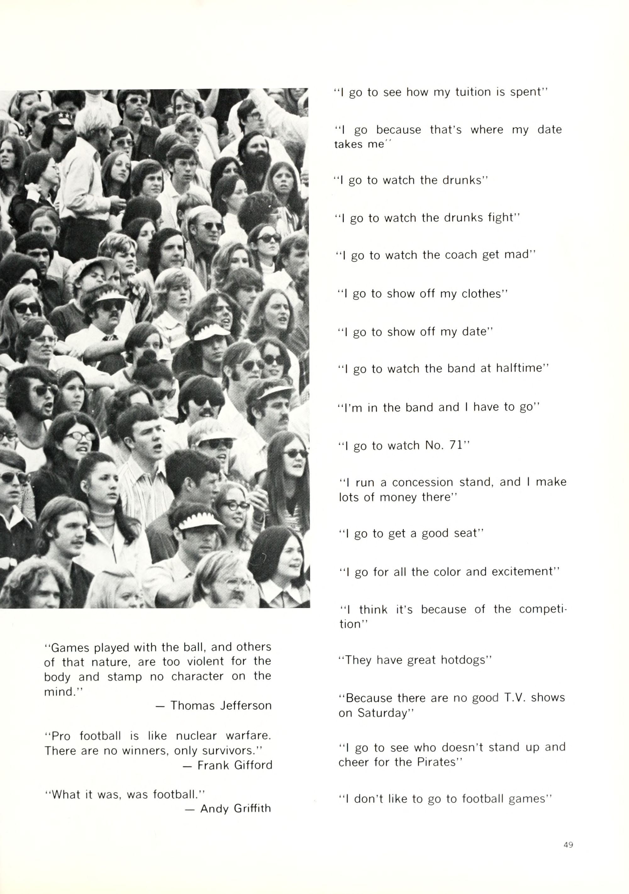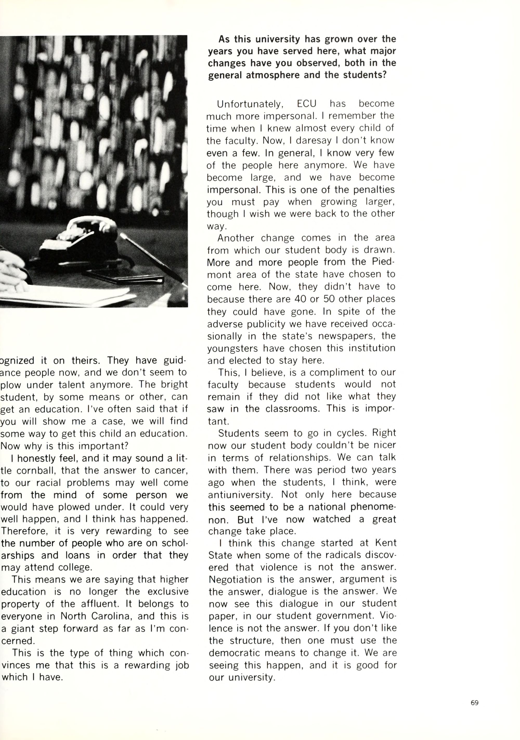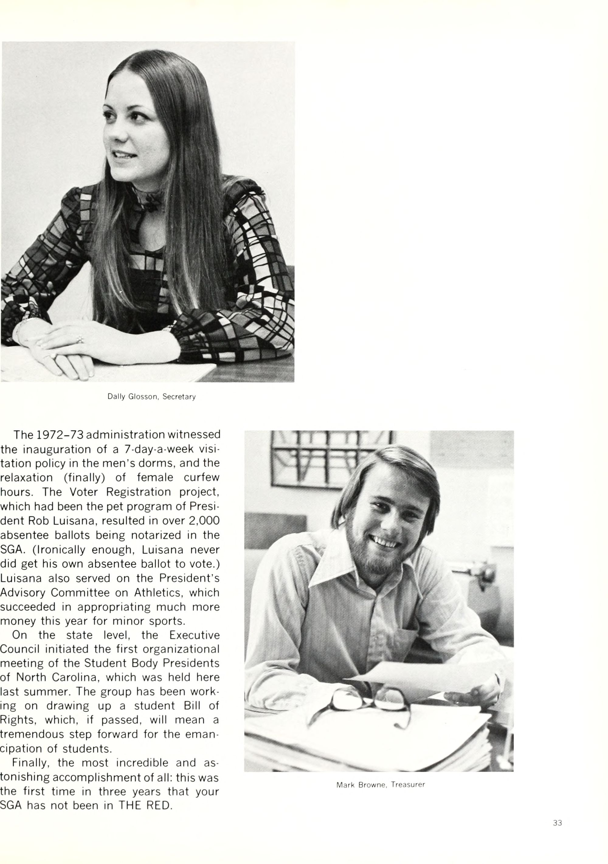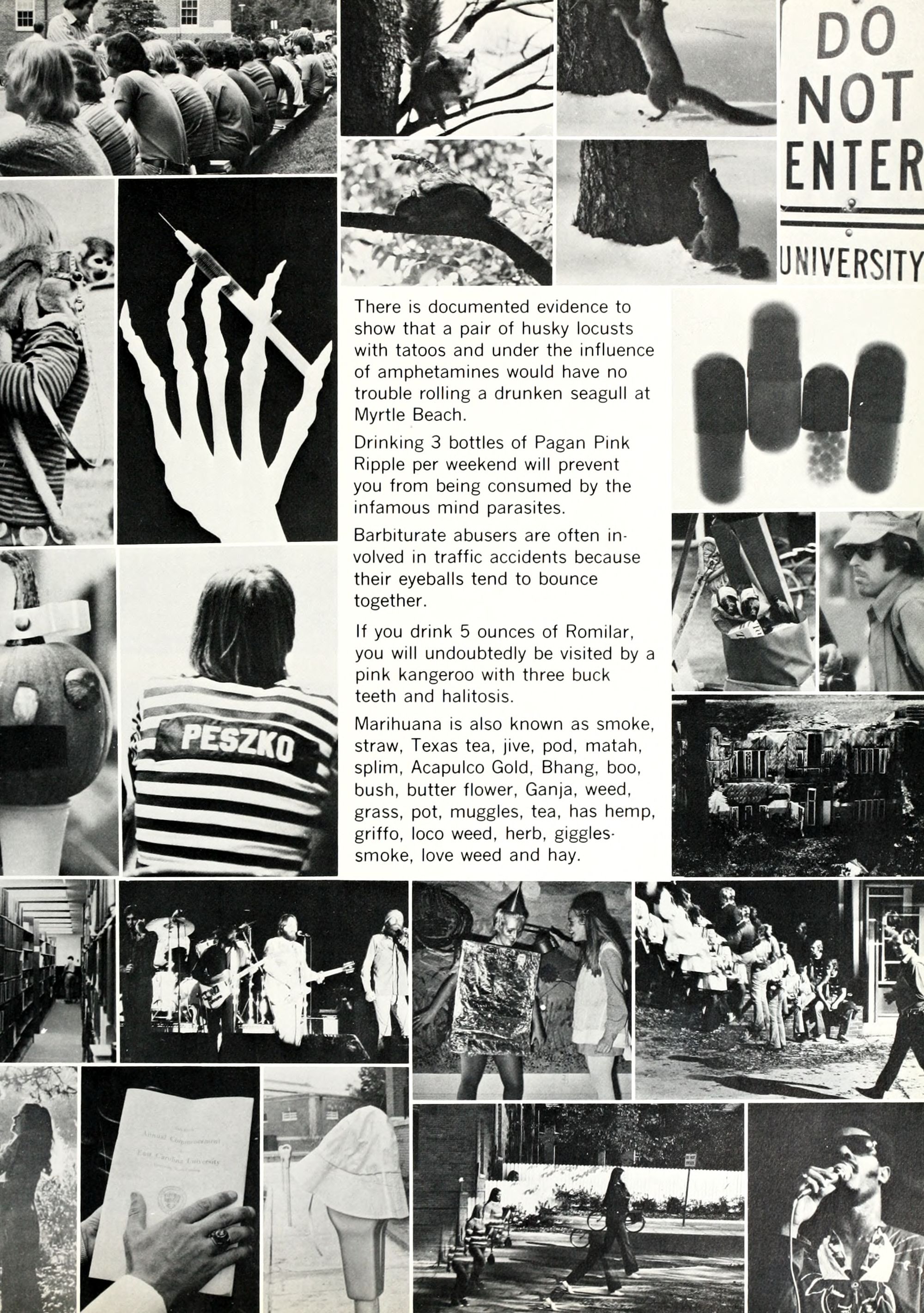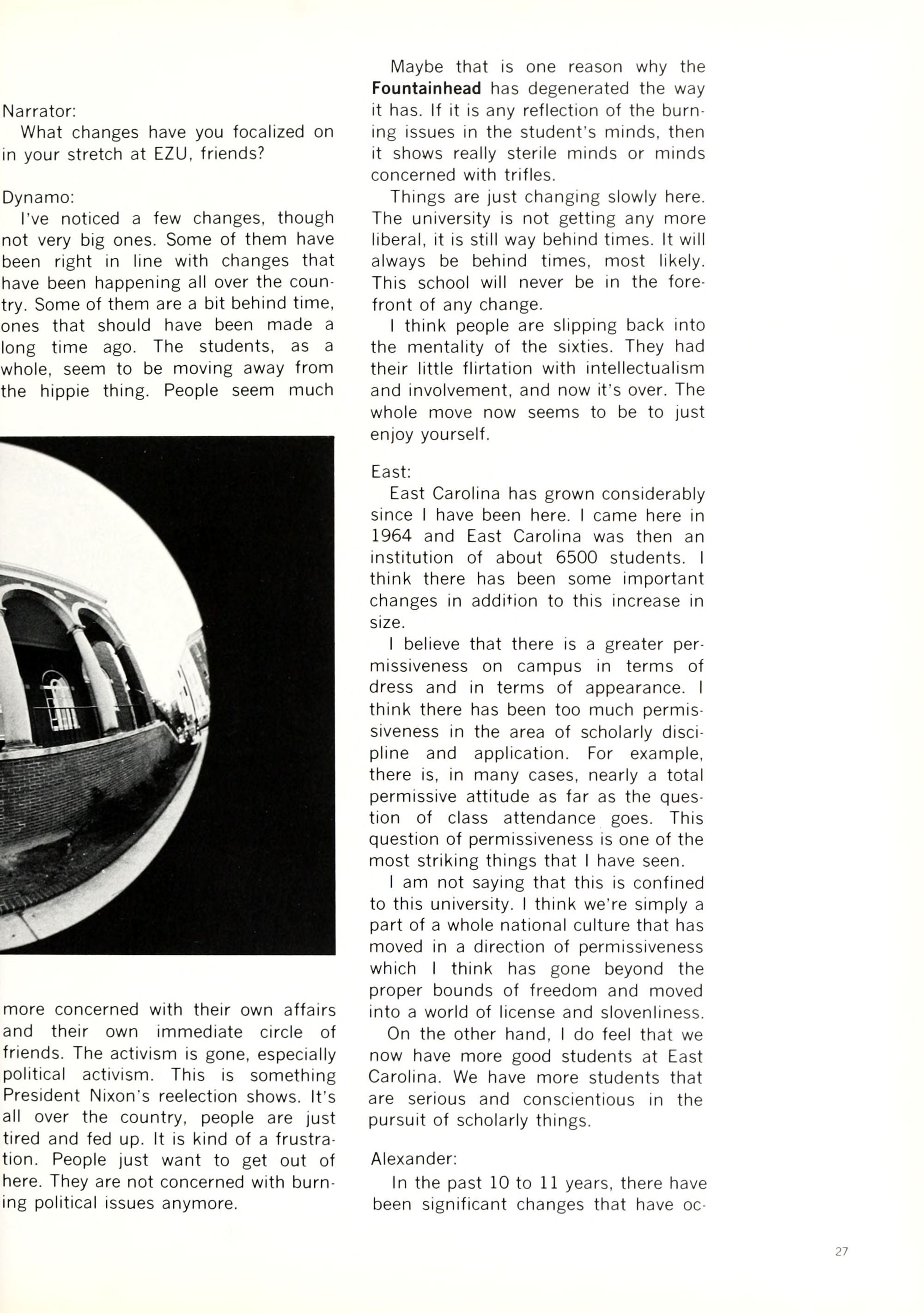 Most students are southern straight - there are a few freaks "who dress radically, i.e. no bras, see-through blouses, extremely short skirts with no panties, long, long hair for shock value" (from a southern correspondent). Chicks like to think of themselves as sexual objects and balling is starting to be commonplace. Frats are dying.