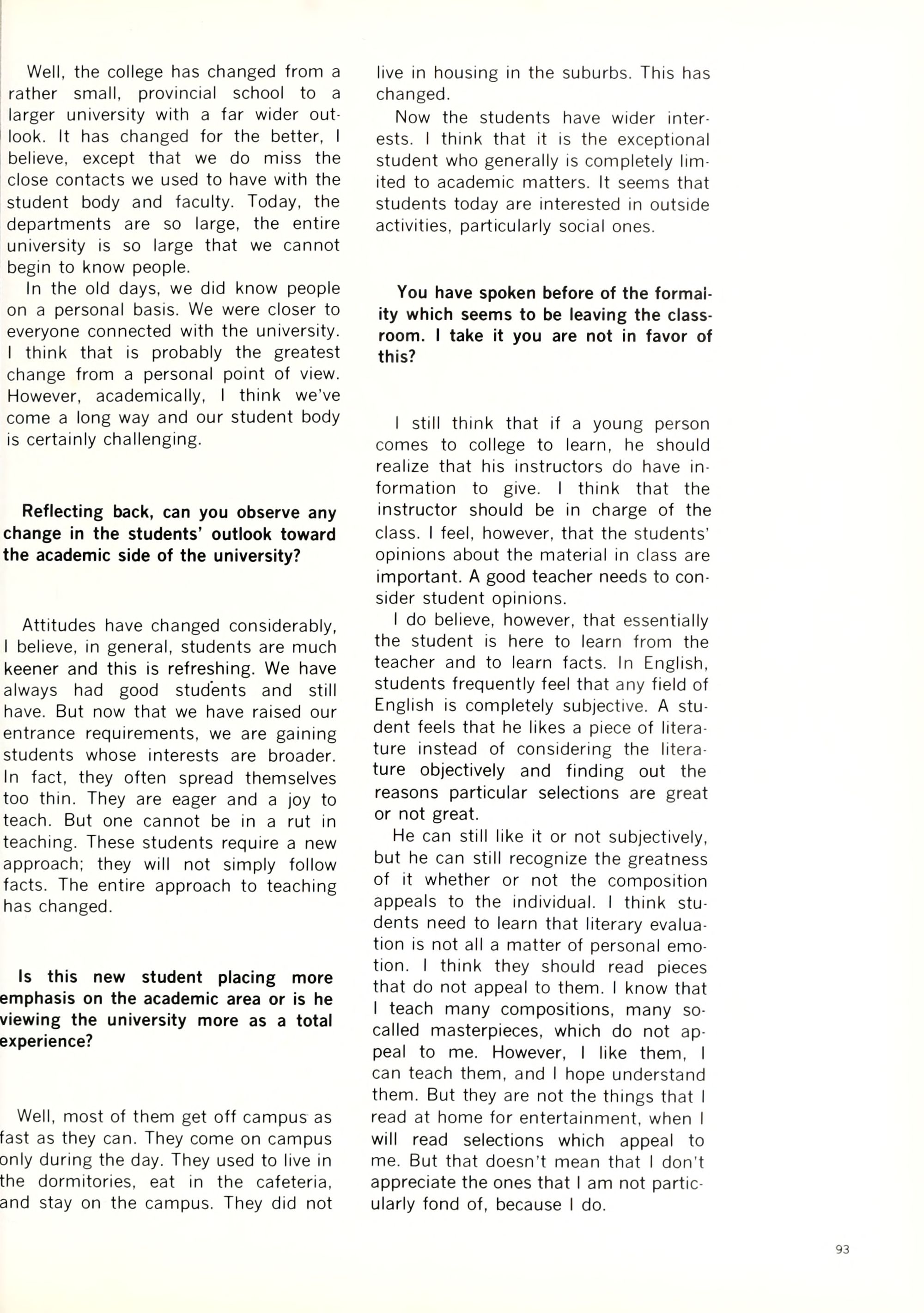 Traditional academic shit. No Pass/fail, no student-originated courses and no Free U. Little independent study. No smoking in class. Many papers and tests and one black studies course taught by a white.