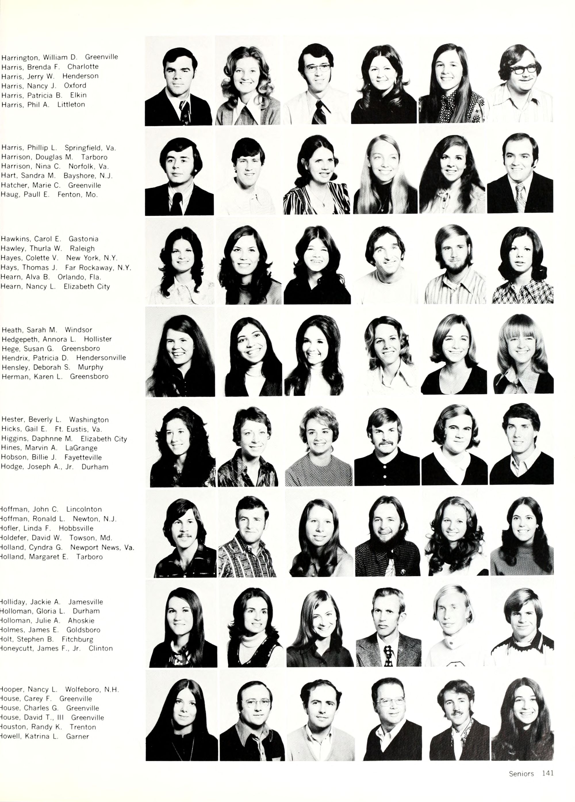 Hales, Elva J. Washington Hall, Betty G. Mt. Olive Hall, Denise M, Rulhr Glen, Va. Hall, Irene, Kenansville Hall, Laura L. Greensboro Hanner, Nancy E. Randleman Hanold, Lynn F. Annapolis, Md.