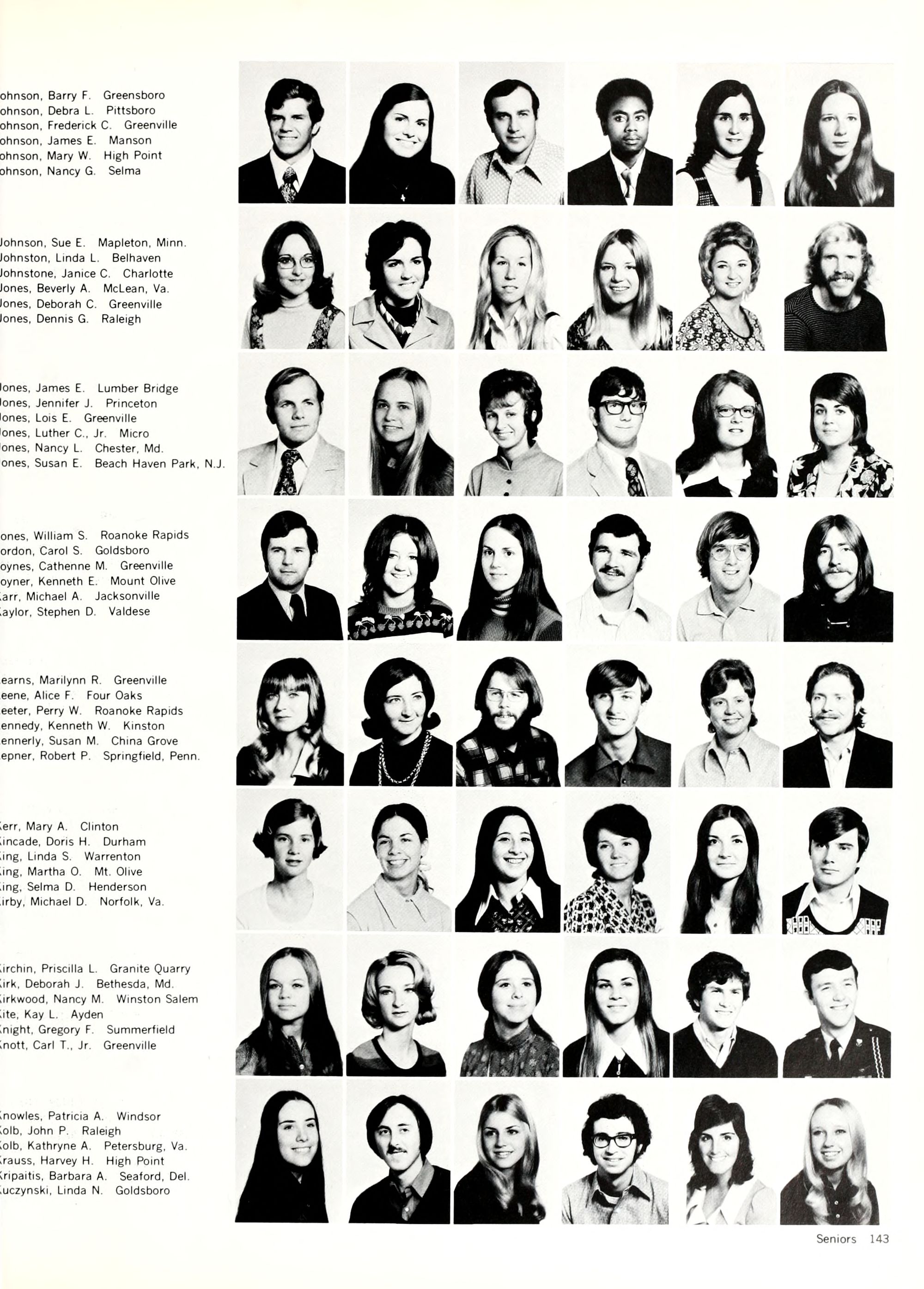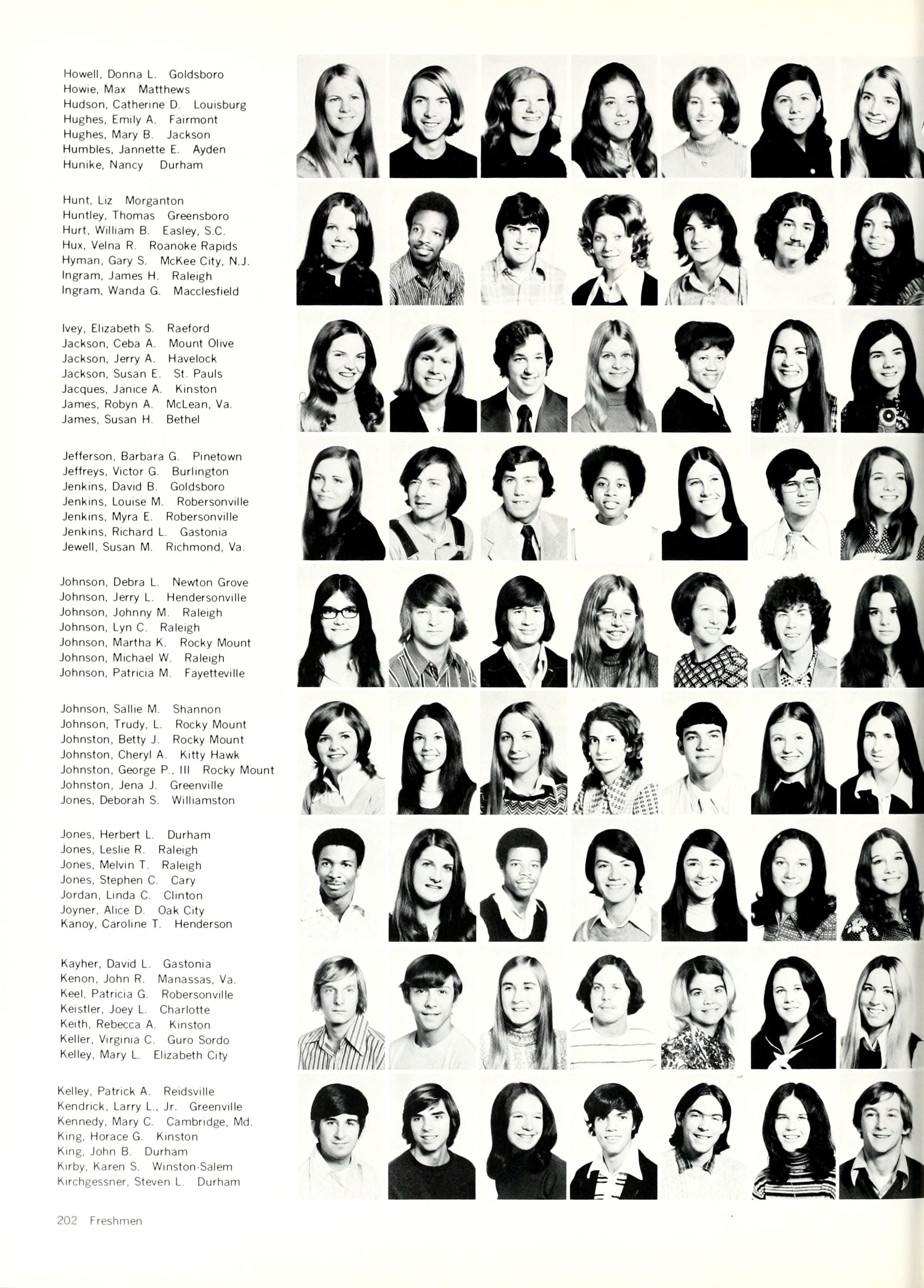 Jefferson, Barbara G. Pinetown Jeffreys, victor G. Burlington Jenkins, David B. Goldsboro Jenkins, Louise M. Robersonville Jenkins, Myra E. Robersonville Jenkins, Richard L. Gastonia Jewell, Susan M. Richmond, Va.