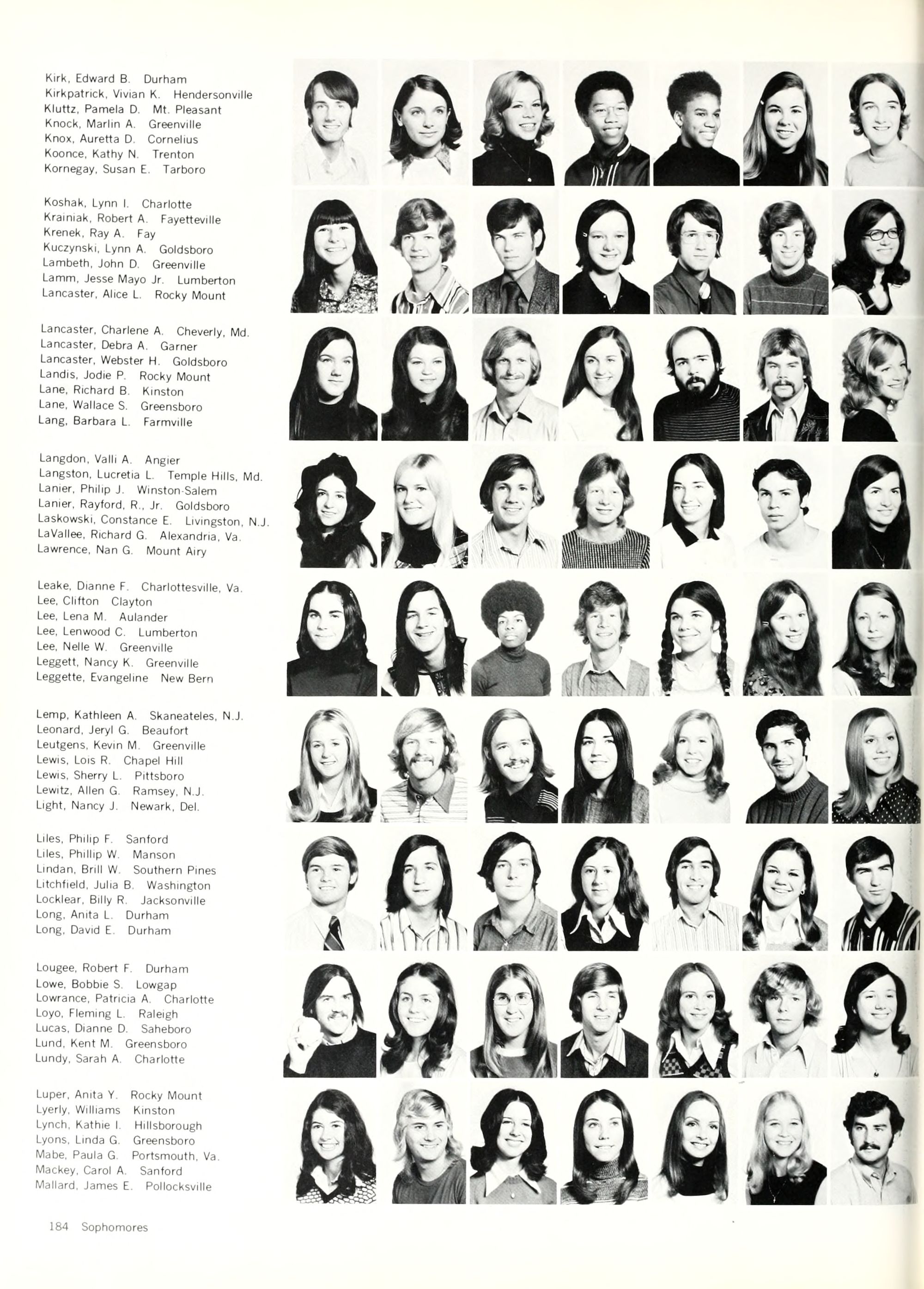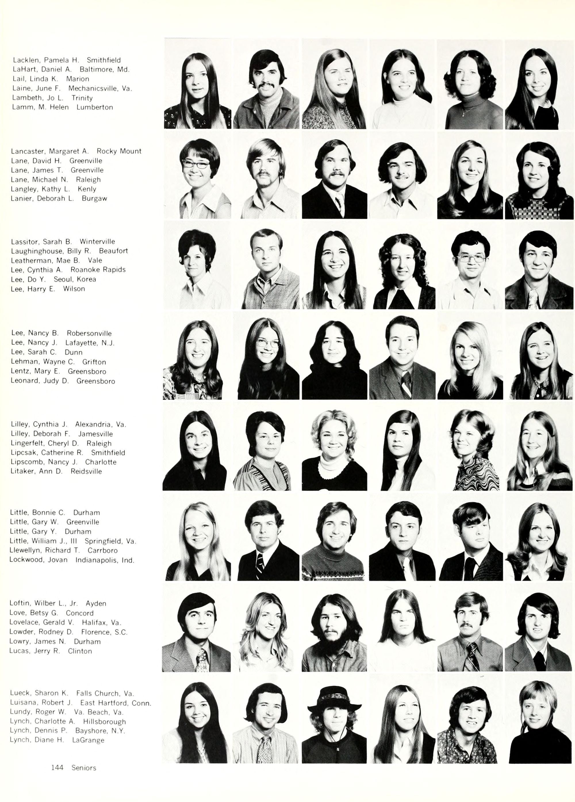 Laverty, Laurette A. Durham Lawall, Mark A. Falls Church, Va. Lawson, Donna J. Eden Lee, Linda E Mooresville Leggett, June Fairmont Lester, Joan Raleigh Letchworth, Thelma Kinston