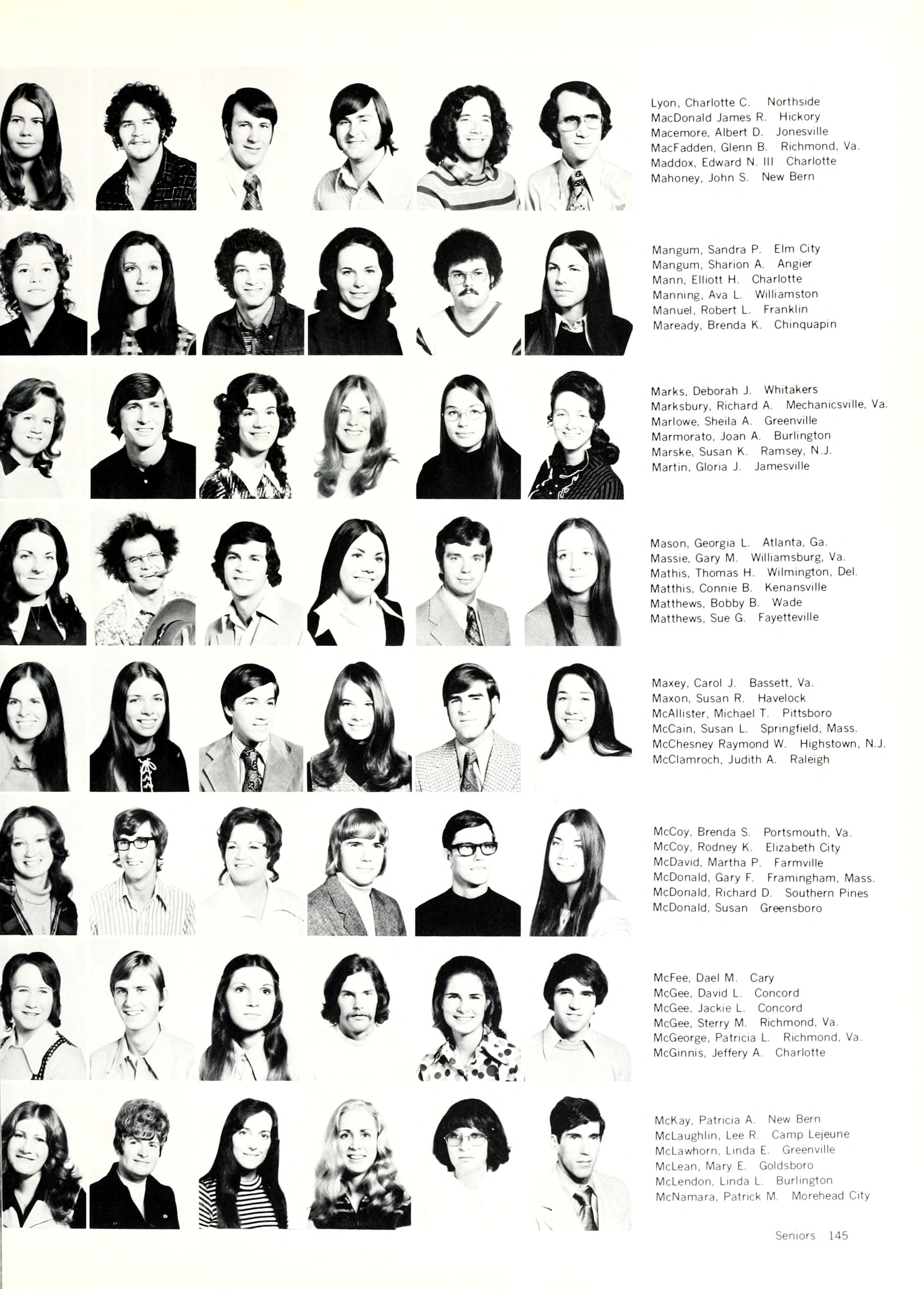 McQueen, Judy C. Ellerbe McRae, Jane M. Rowland MacPherson, Robin P. Falls Church, Va. Malloch, Beth Gastonia Mangum, Keith Southern Pines Mann, Deborah L. Durham Manning, Anne J. Norfolk, Va.