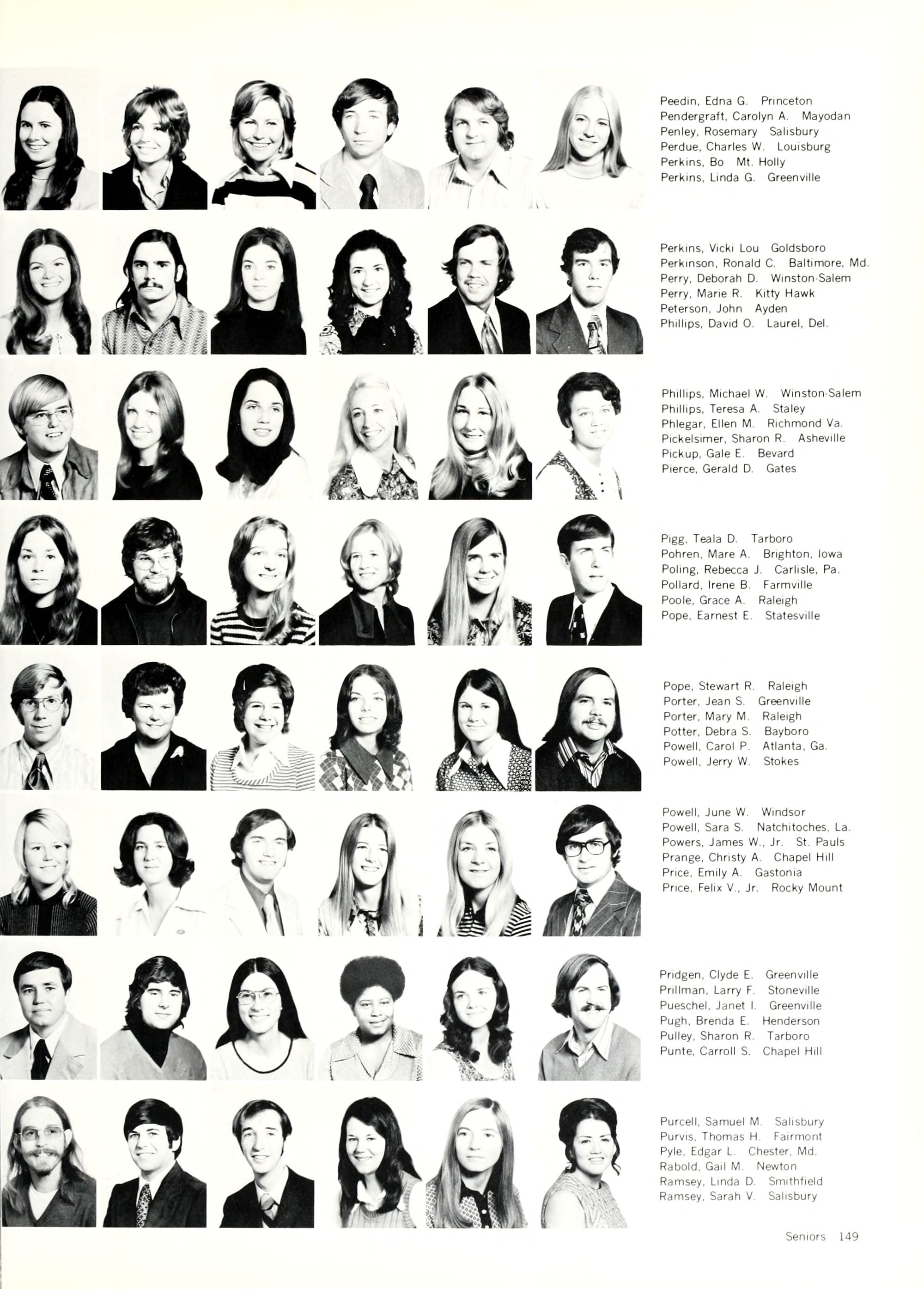 Perkins, Debbie Springfield, Va. Perkins, Kenneth F. Greenville Perry, David L. Tarboro Perry, Julia G. Merry Hill Perry, Patricia D. Tyner Petterson, Lynne Greenville Pfeil, Nola C. Washington