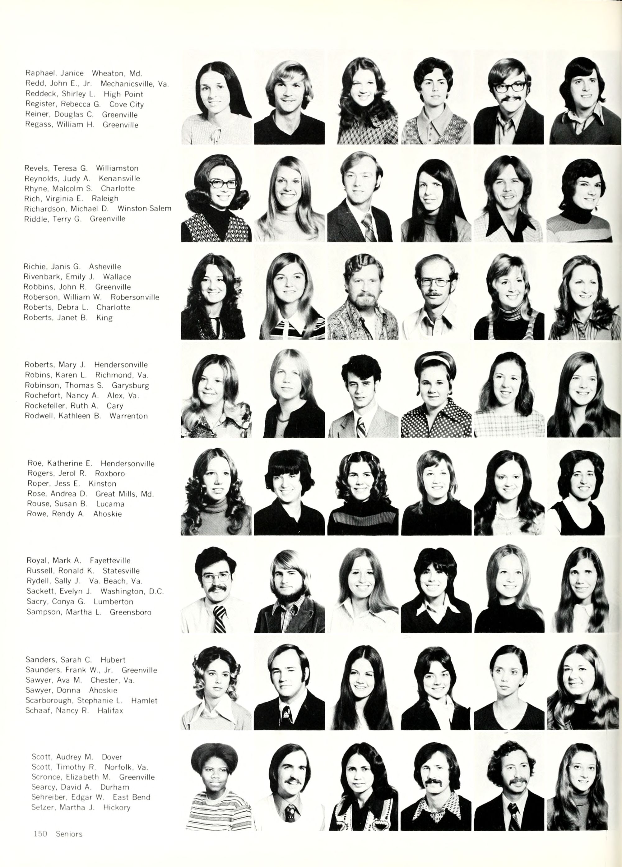 Rodd, Lynn M. Havelock Rogers, Donna L Candler Rogers. Sally L. Charlottesville, Va. Rogerson, Joan C. Williamston Rollins, Julia A, Smithfield Romer, Karen L. Silver Spring. Md. Roper, Michael S. Henderson
