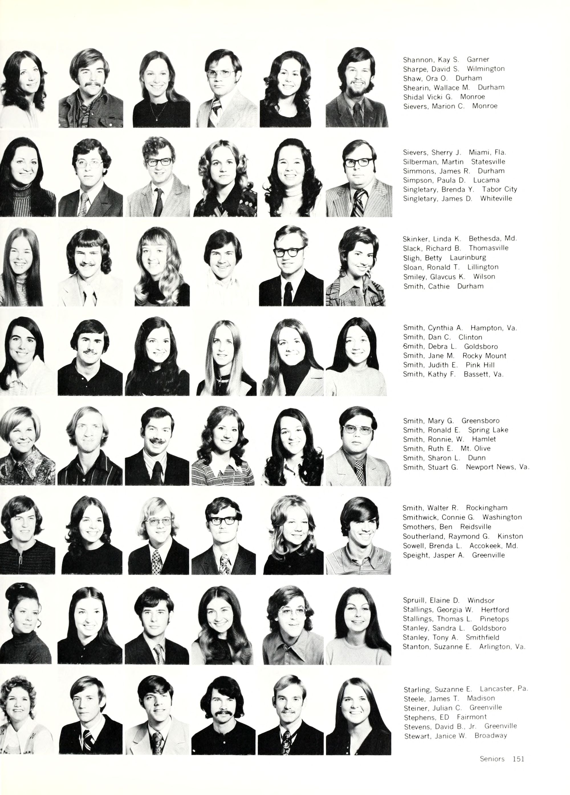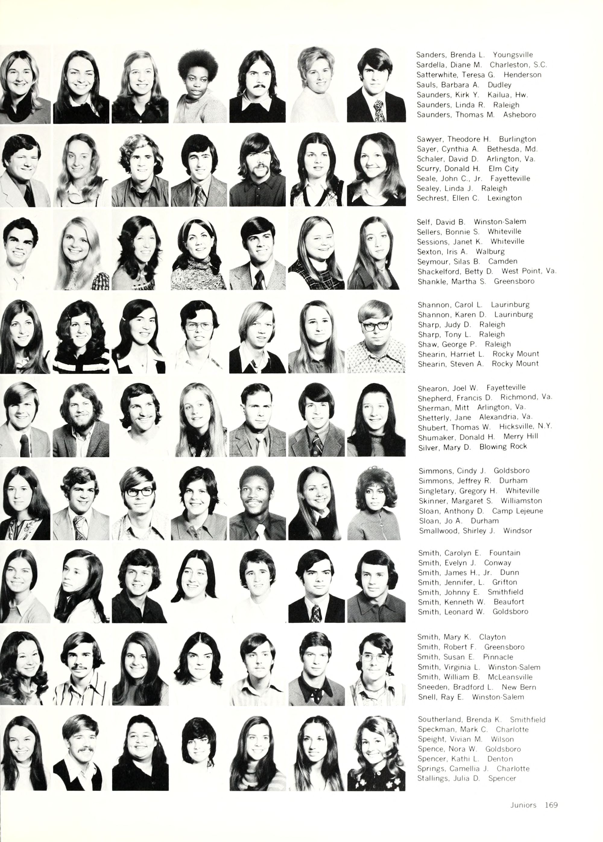 Shivers, Karen E. Raleigh Shuping, Cynthia D. Rockwell Sibley, Bryan New Bern Simmons, Barry K. Benson Singleton, Joan E Springfield, Va. Skelly, Miranda Washington, D.C. Slaughter, Jackie Launnburg