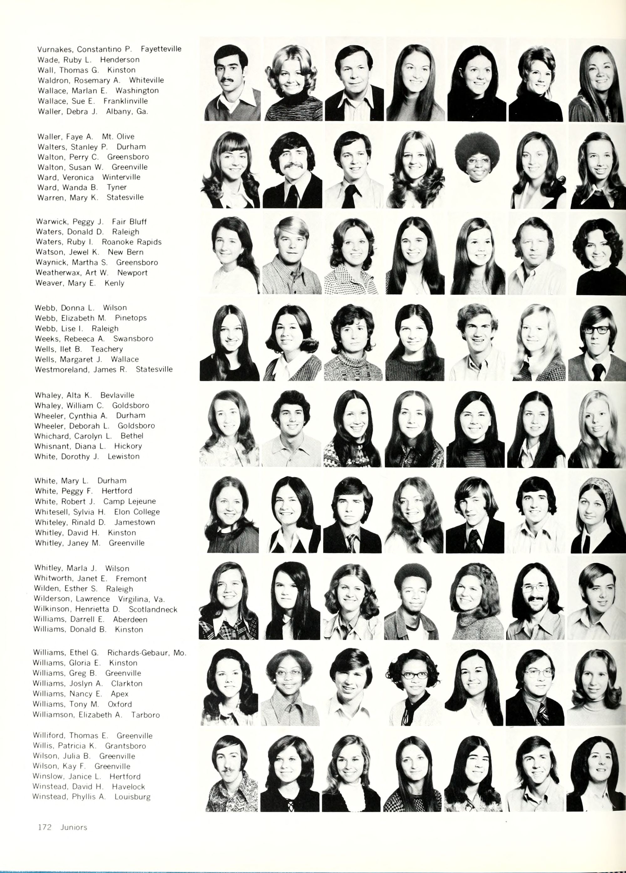 Waters, Deborah L. Silver Spring, Md. Watkins, William J. Clemmons Weathers, Sherre E. Garner Weaver, Debra A. Wilson Webb, Billie D. Pinetops Webb, Kathryn D. Macelesfield Webb, Margie J. Garner