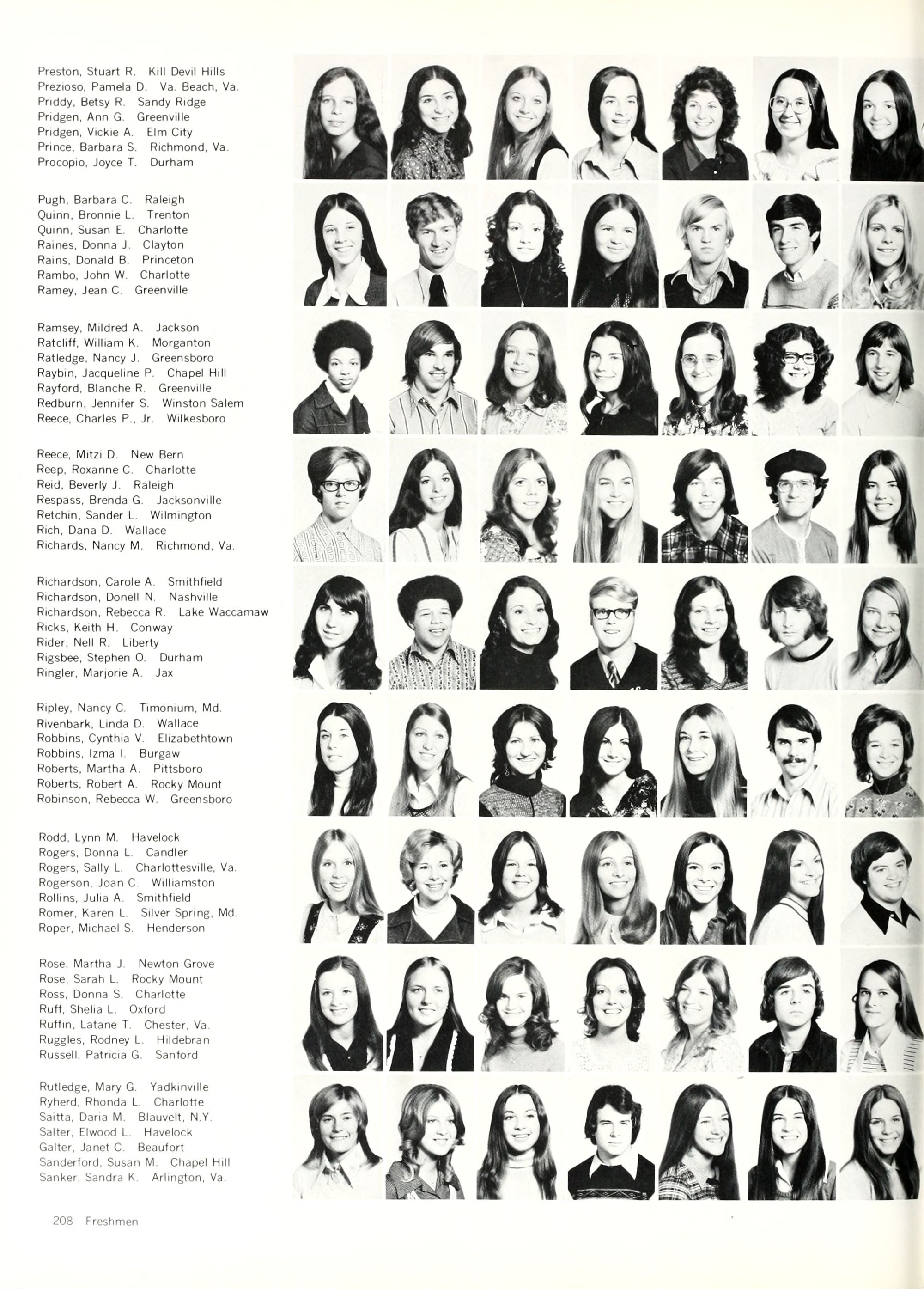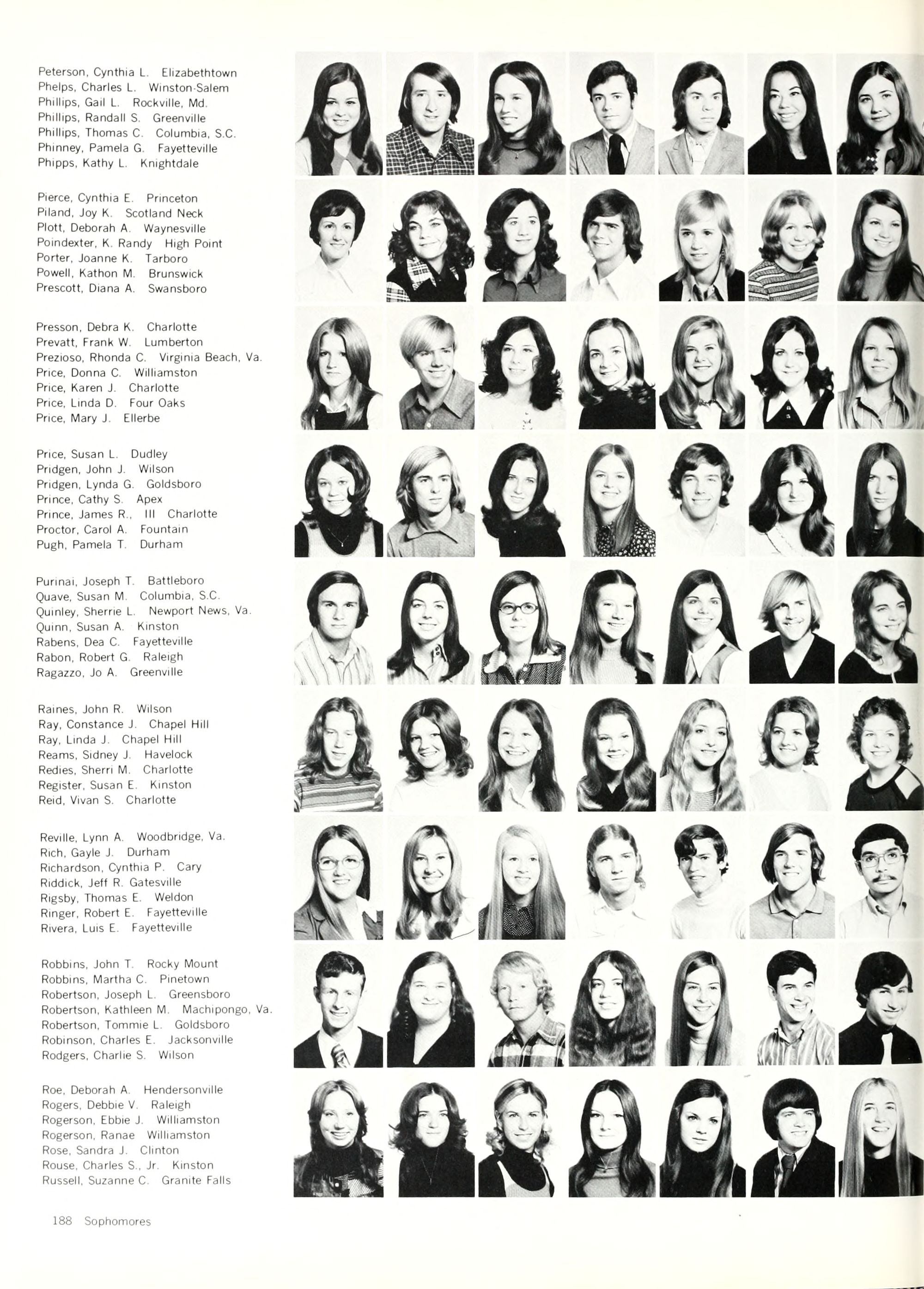 Ripley, Nancy C, Timonium, Md. Rivenbark, Linda D. Wallace Robbins, Cynthia V. Elizabethtown Robbins, Izma I. Burgaw Roberts, Martha A. Pittsboro Roberts, Robert A. Rocky Mount Robinson. Rebecca W. Greensboro