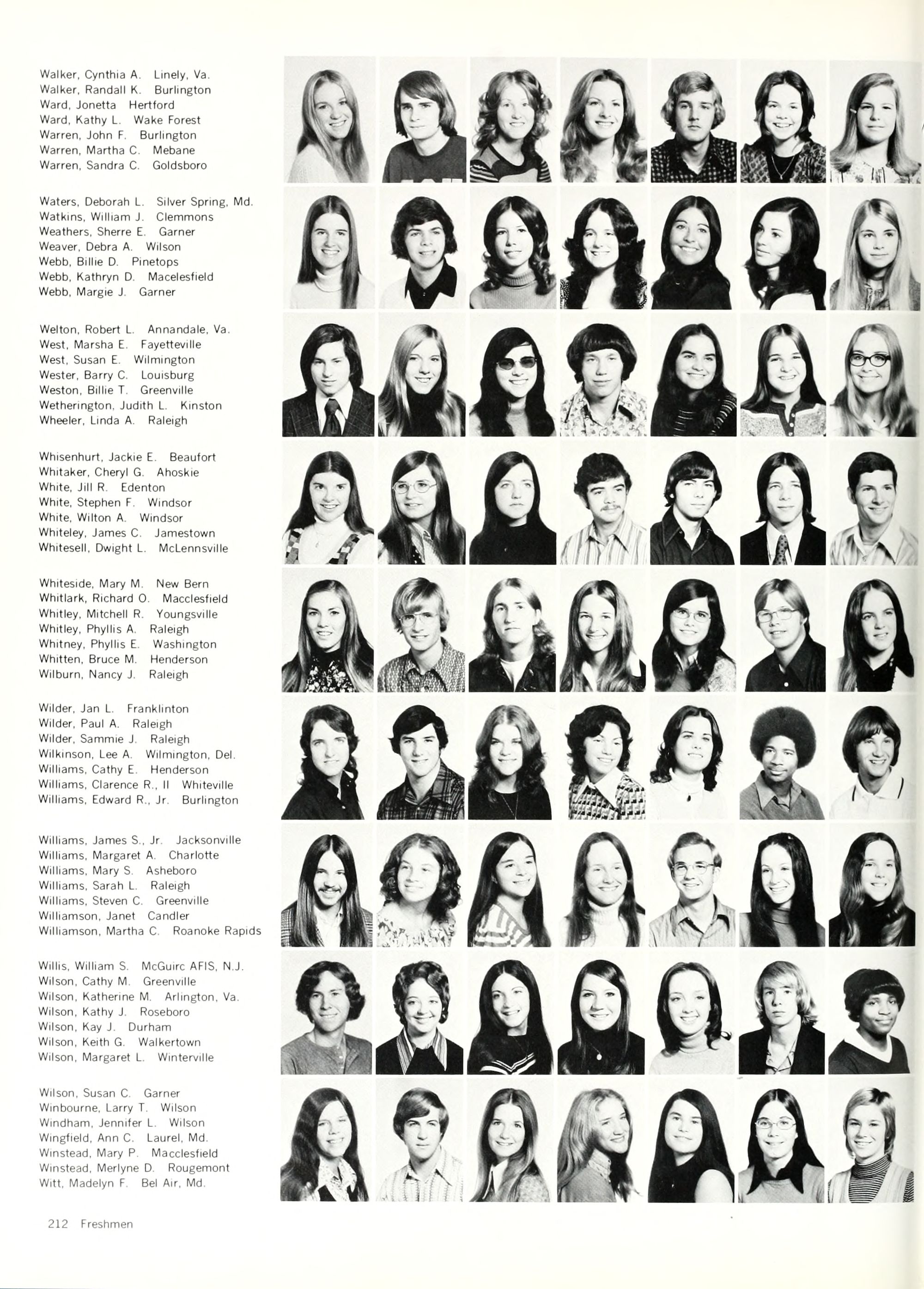 Wilson, Susan C Garner Winbourne, Larry T. Wilson Windham, Jennifer L. Wilson Wingfield, Ann C. Laurel, Md. Winstead, Mary P. Macclesfield Winstead, Merlyne D. Rougemont Witt, Madelyn F. Bel Air, Md.