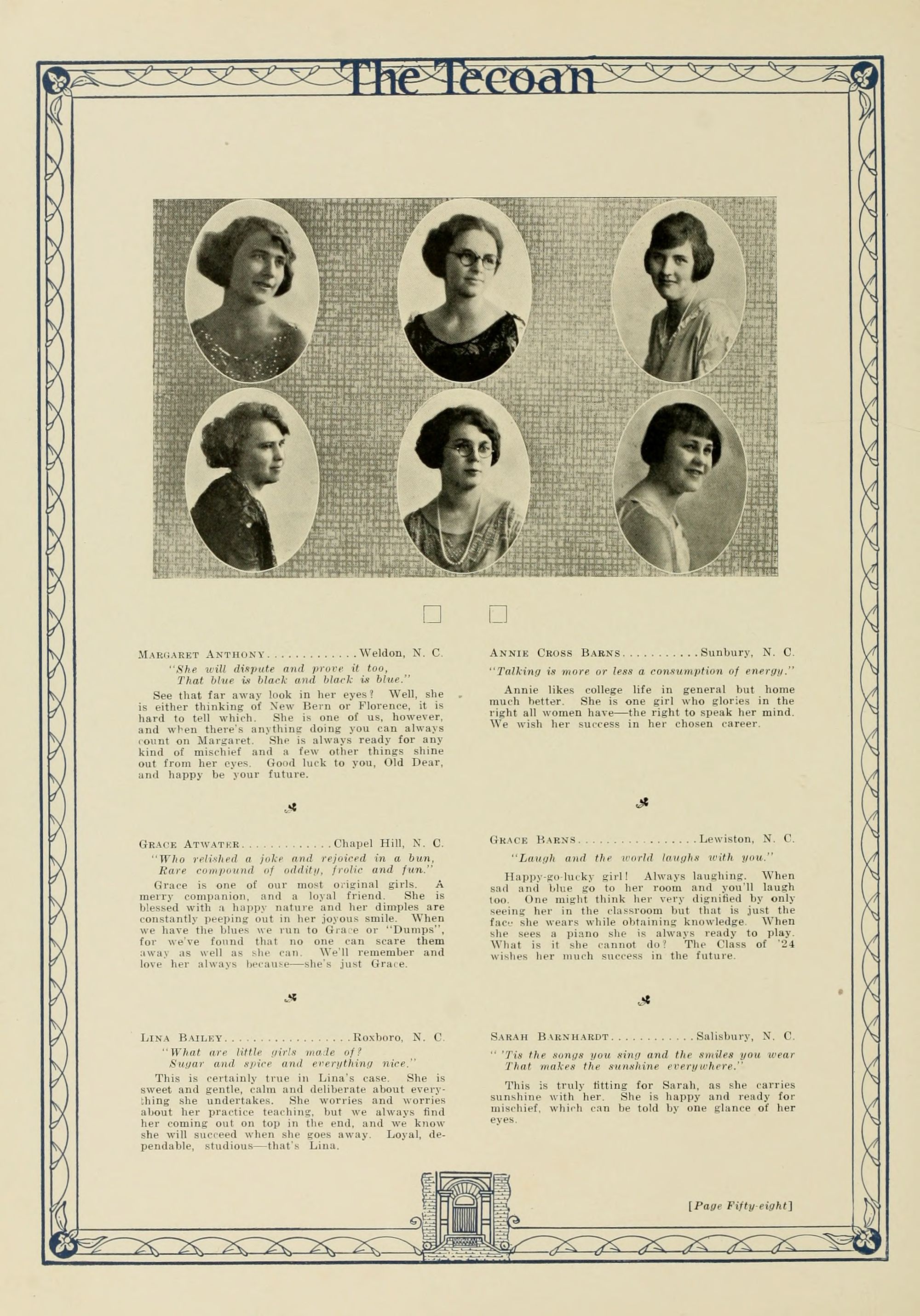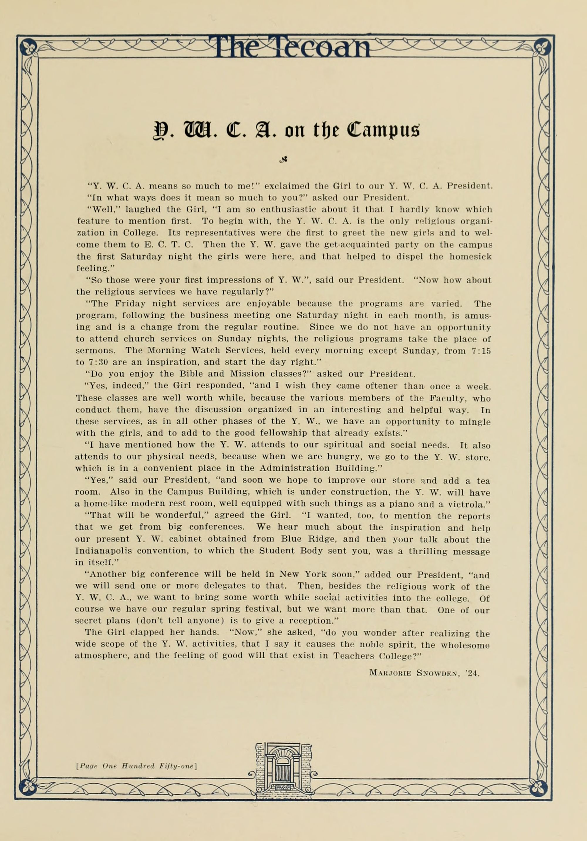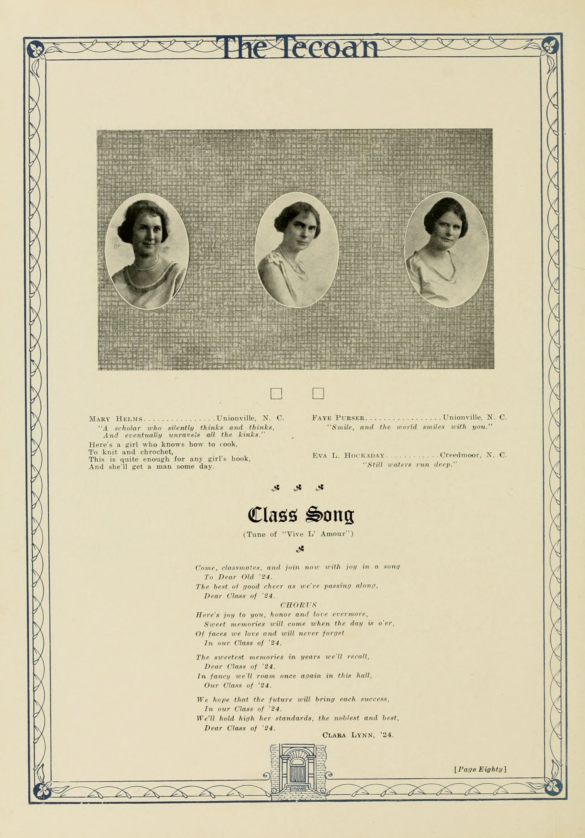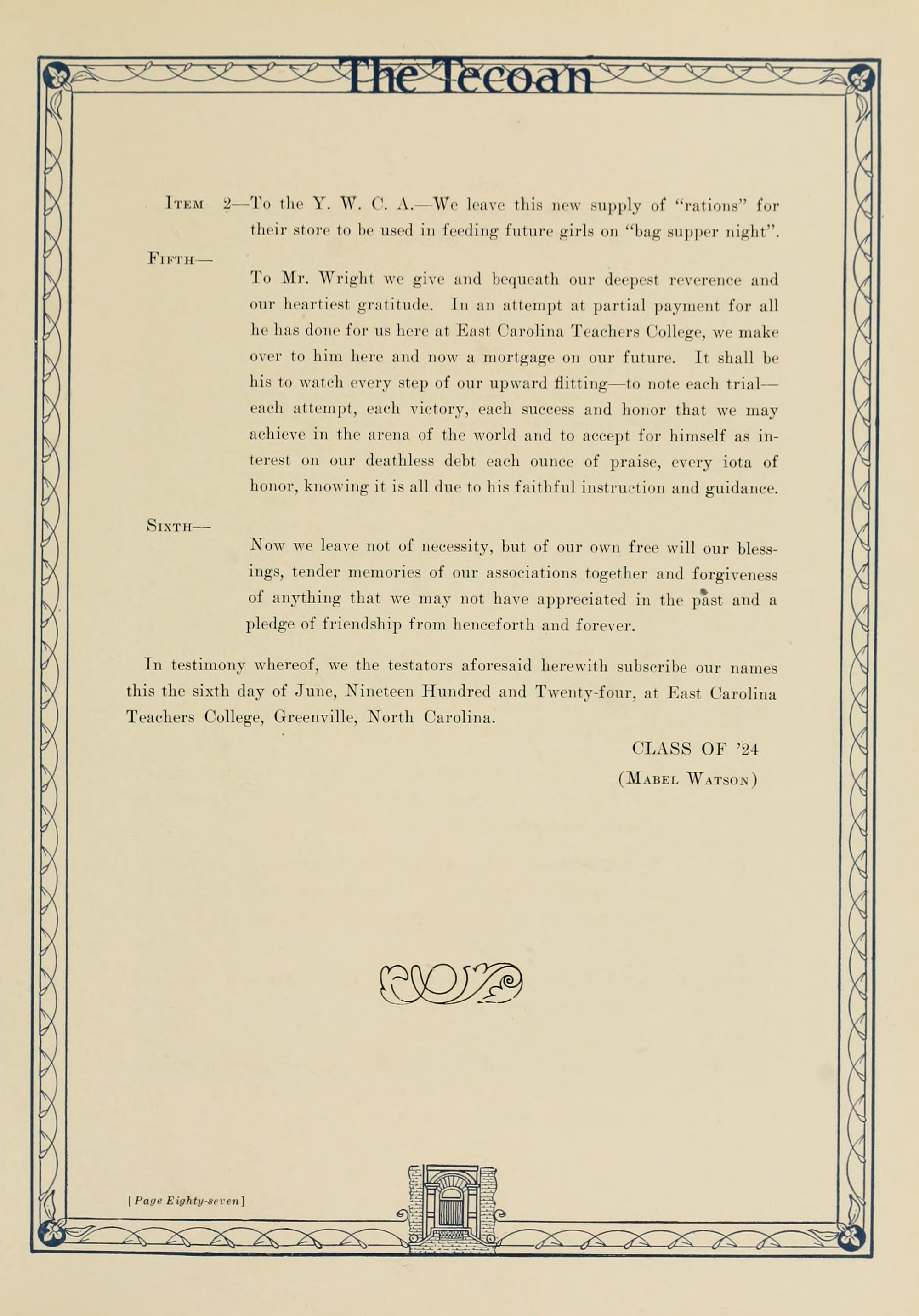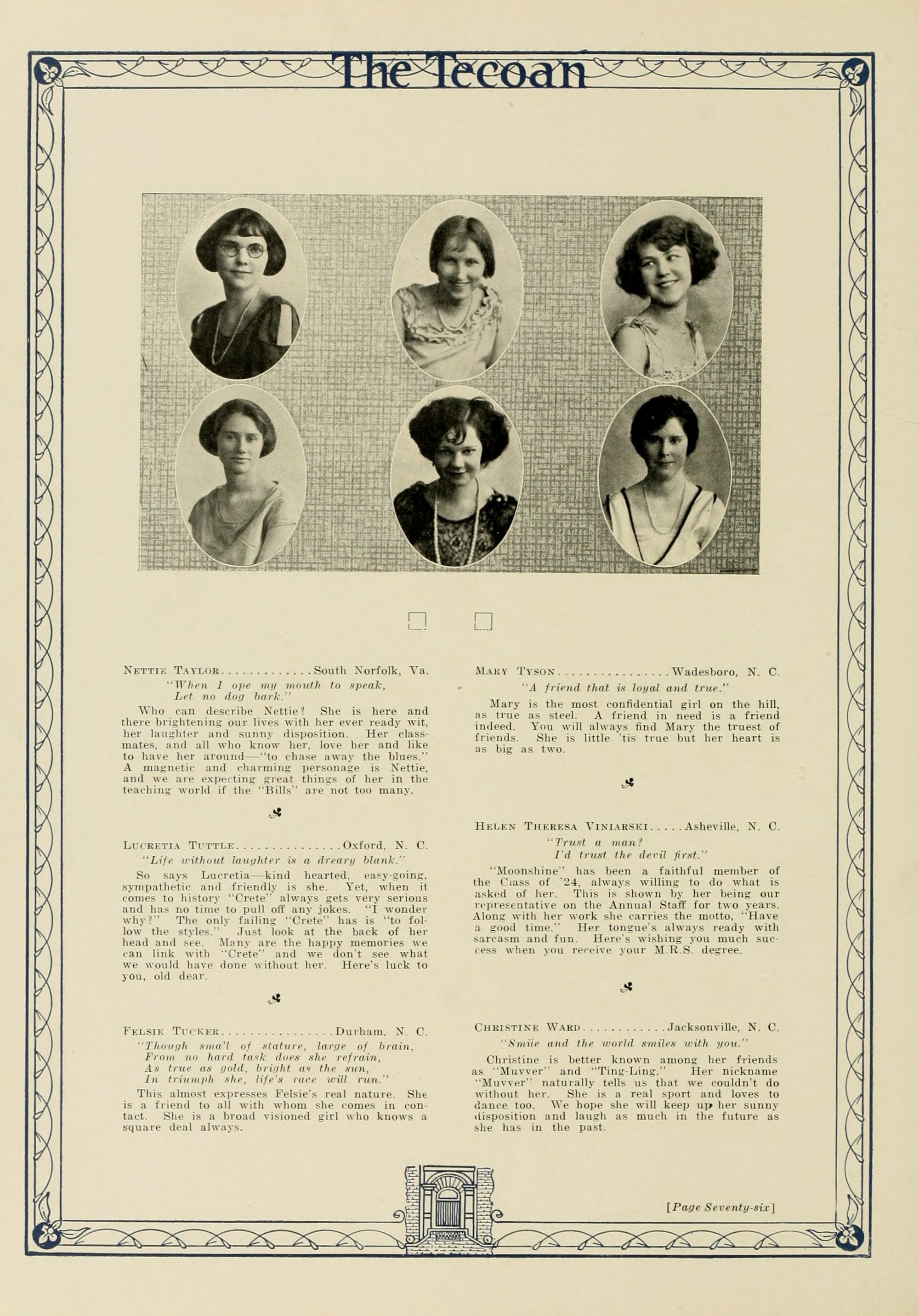 In presenting the second volume of The Tecoan, the students of East Carolina Teachers College offer no apologies for the contents of the book; it is but a brief chronicle of the everyday events and scenes of our college life. Had life at Teachers College been different, the book would have been different. Every effort has been put forth to give a picture of conditions as they actually existed during the school year 1923-'24; it is the only pictorial record of the year's events, therefore, we believe it will be valuable for future reference.